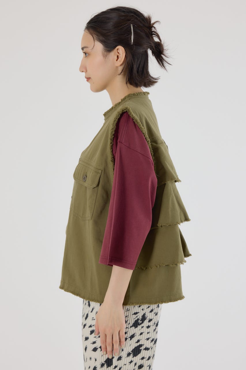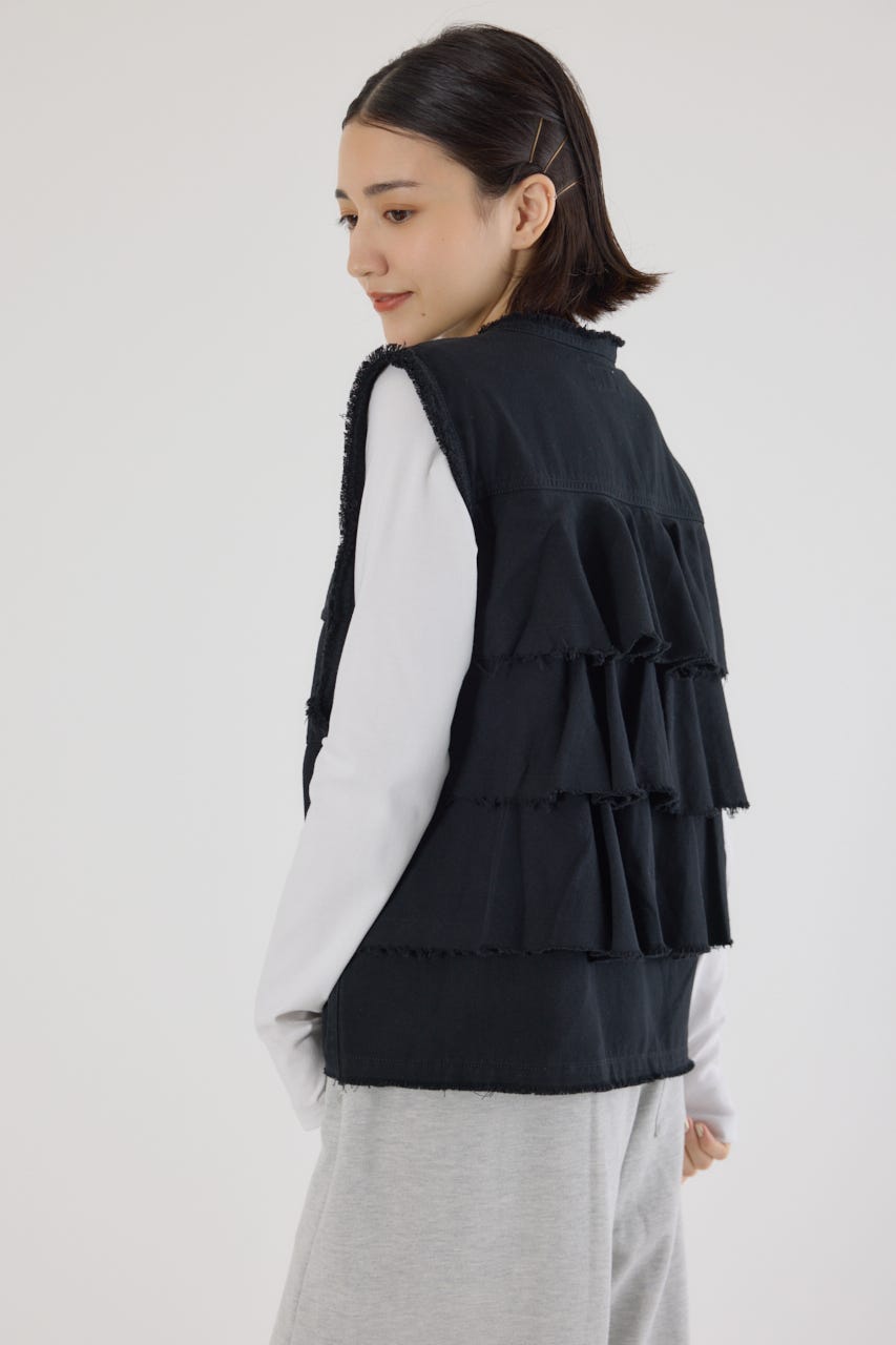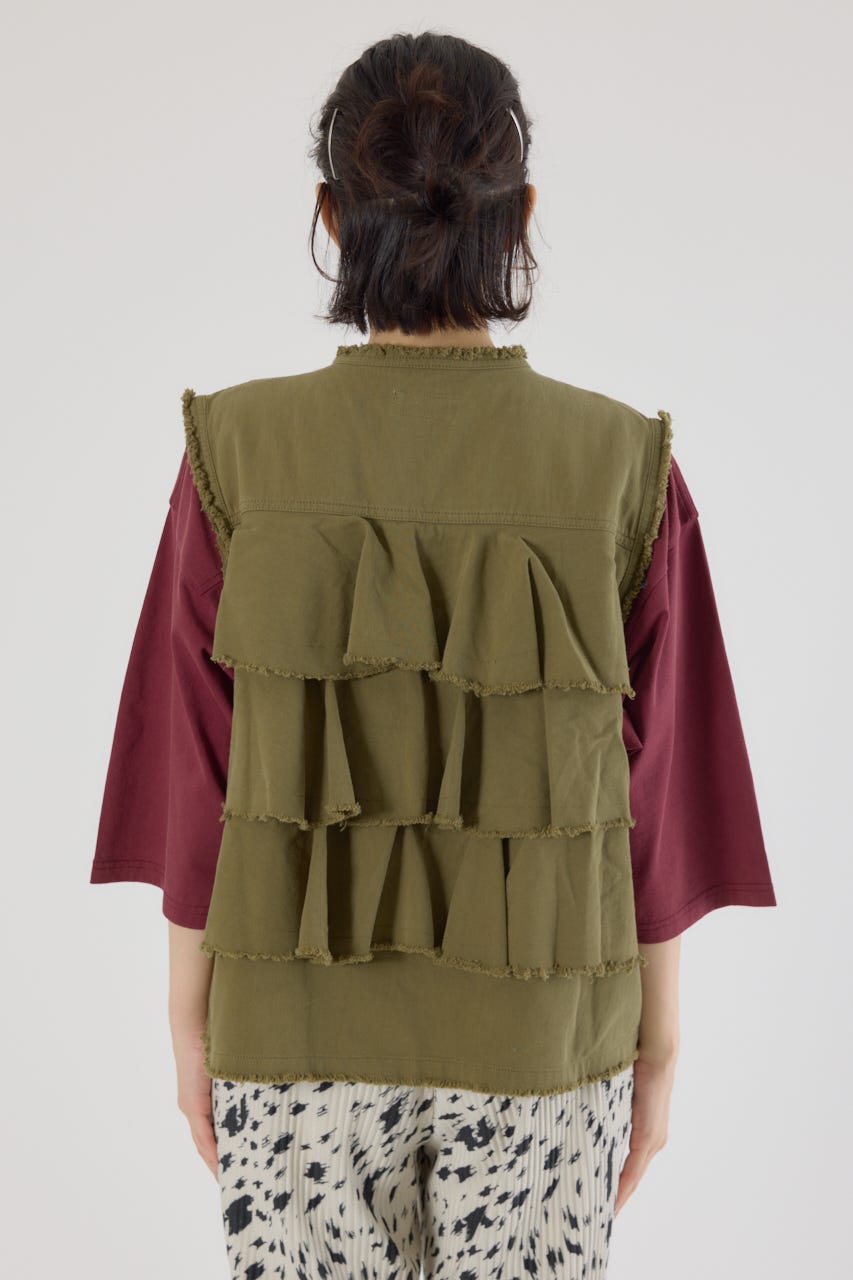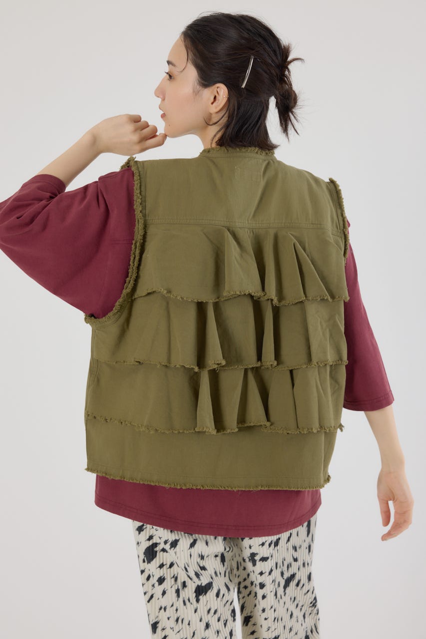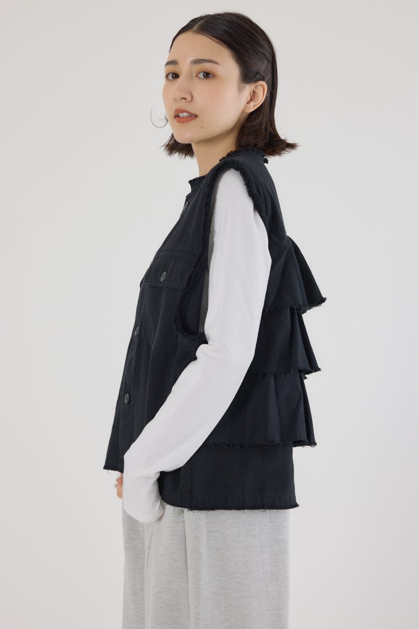 いつものTシャツに重ねるだけでこなれ感抜群のバックフリルベスト。