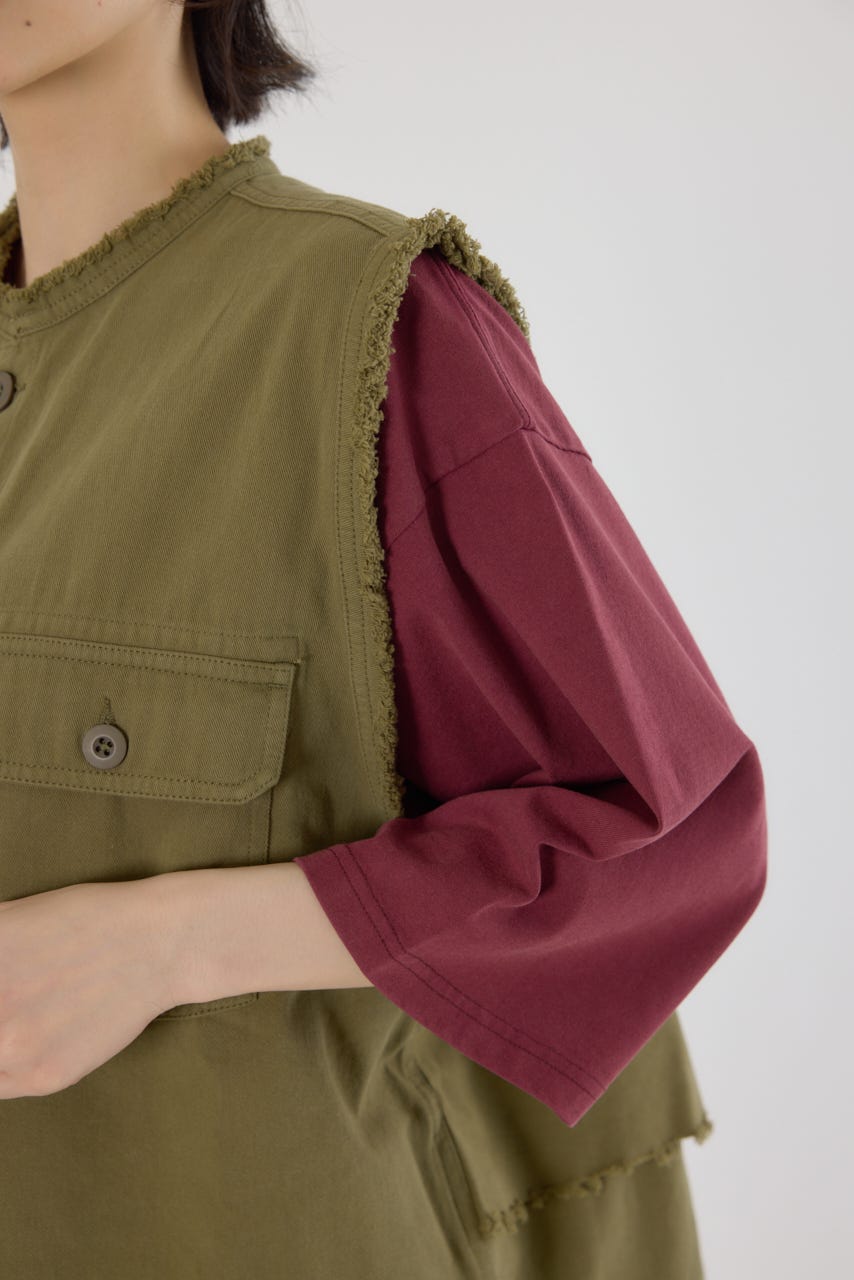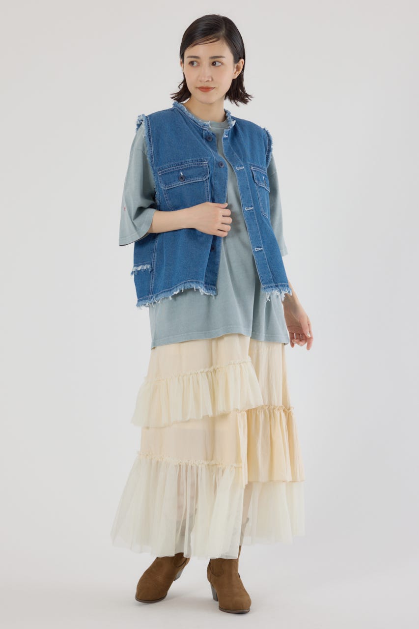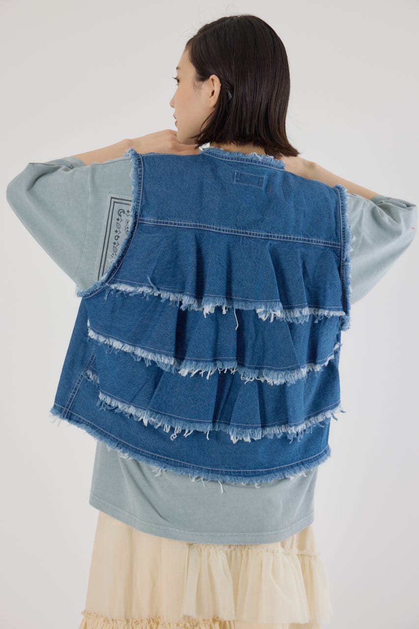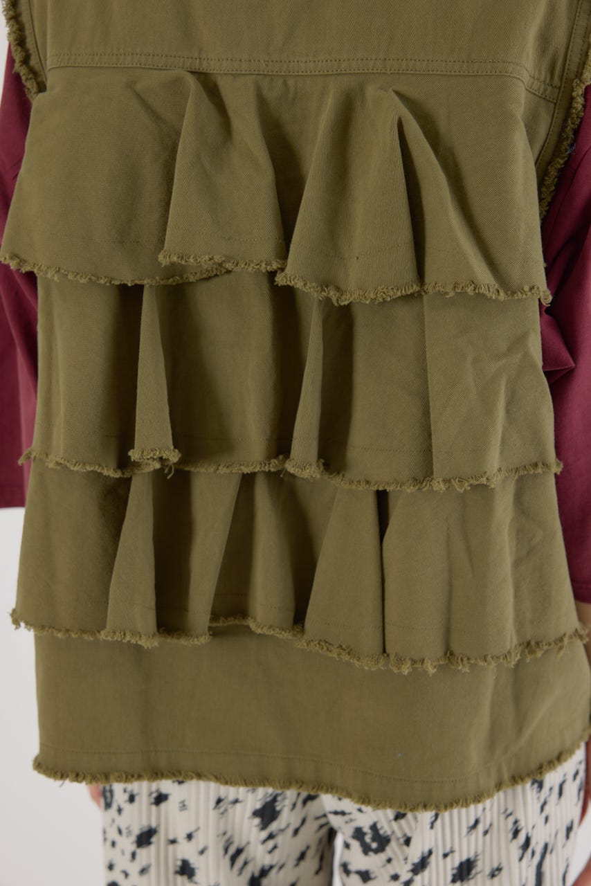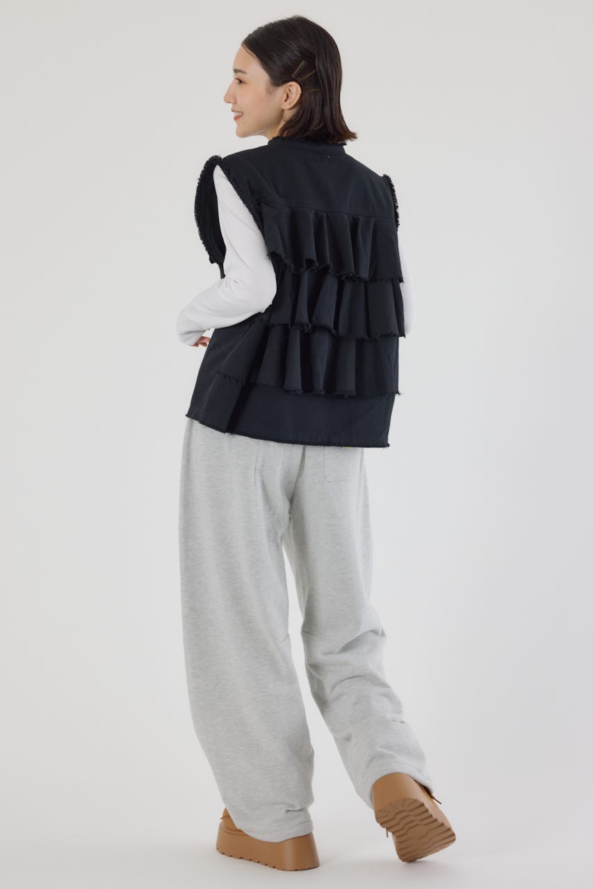 いつものTシャツに重ねるだけでこなれ感抜群のバックフリルベスト。