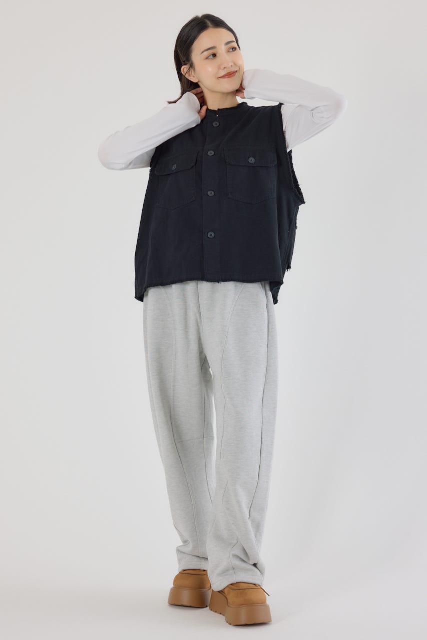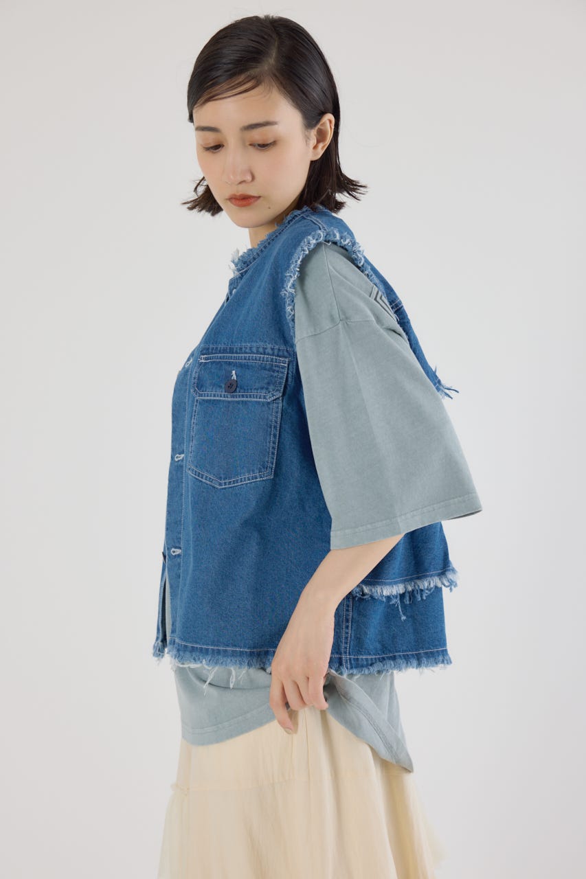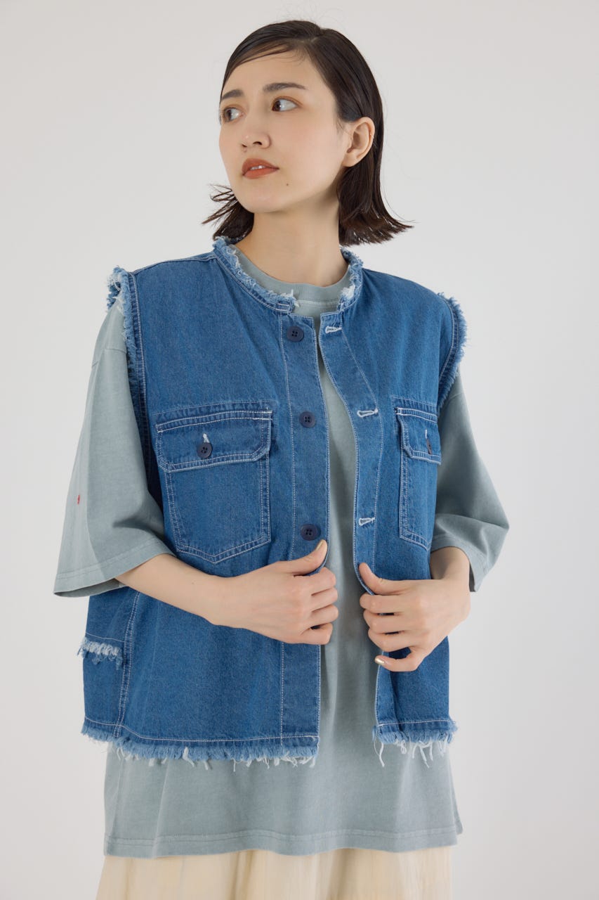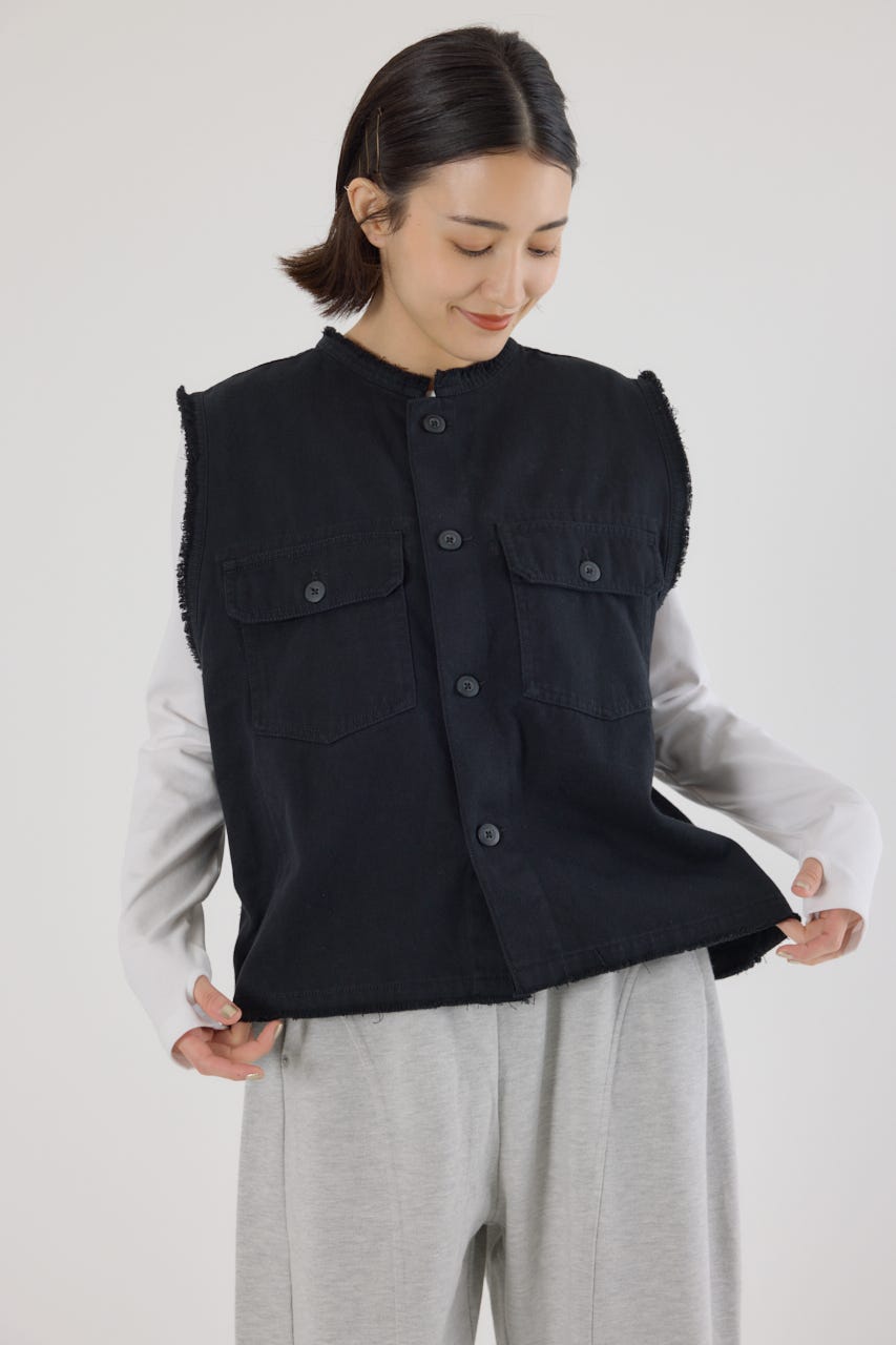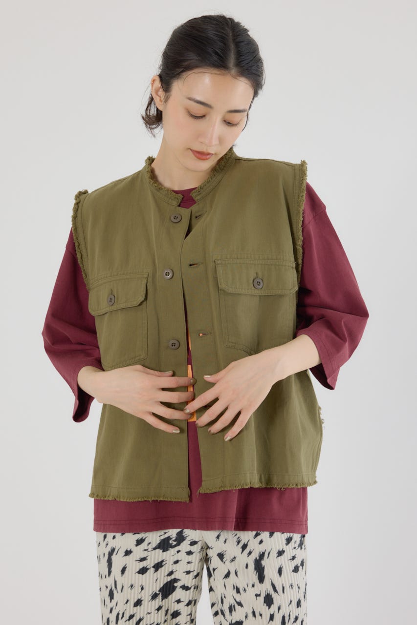 いつものTシャツに重ねるだけでこなれ感抜群のバックフリルベスト。