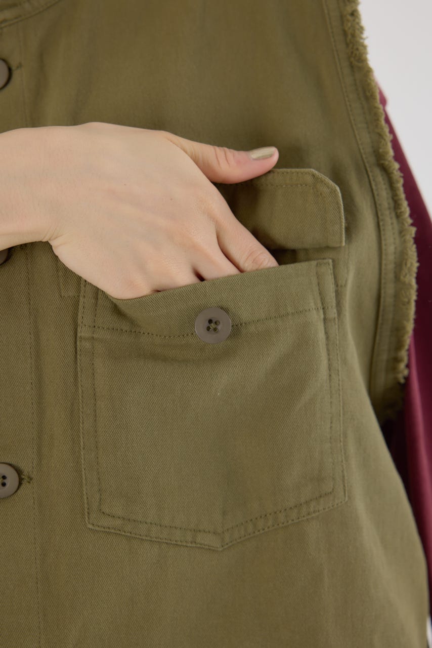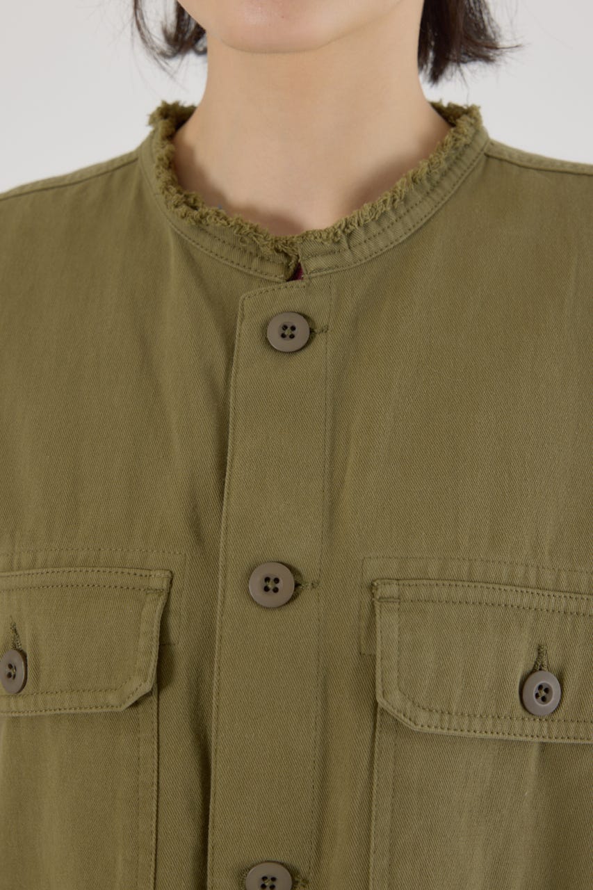 裾・アーム・襟は裁ち切り仕様でフリンジ仕上げです。