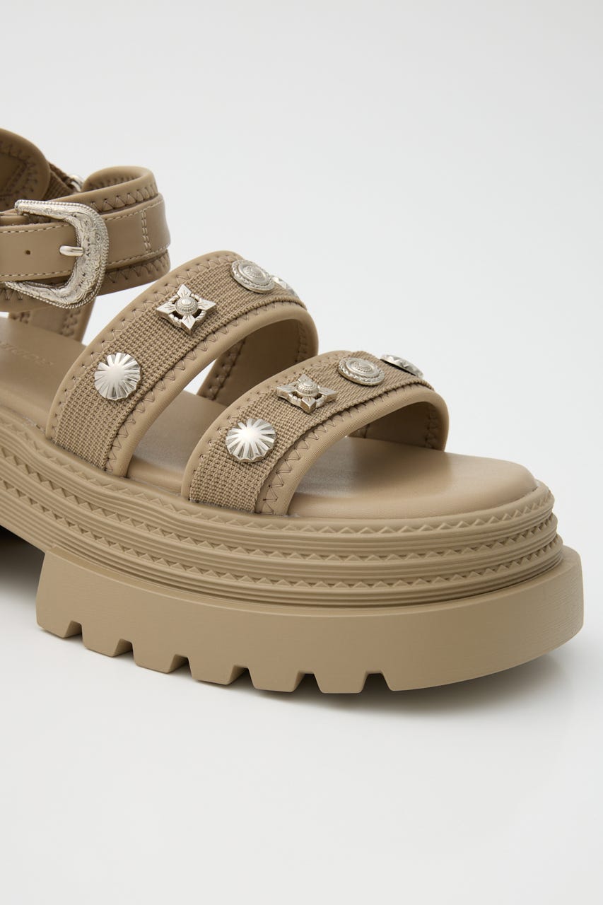 アンティーク調なスタッズデザインのベルト付きサンダル。