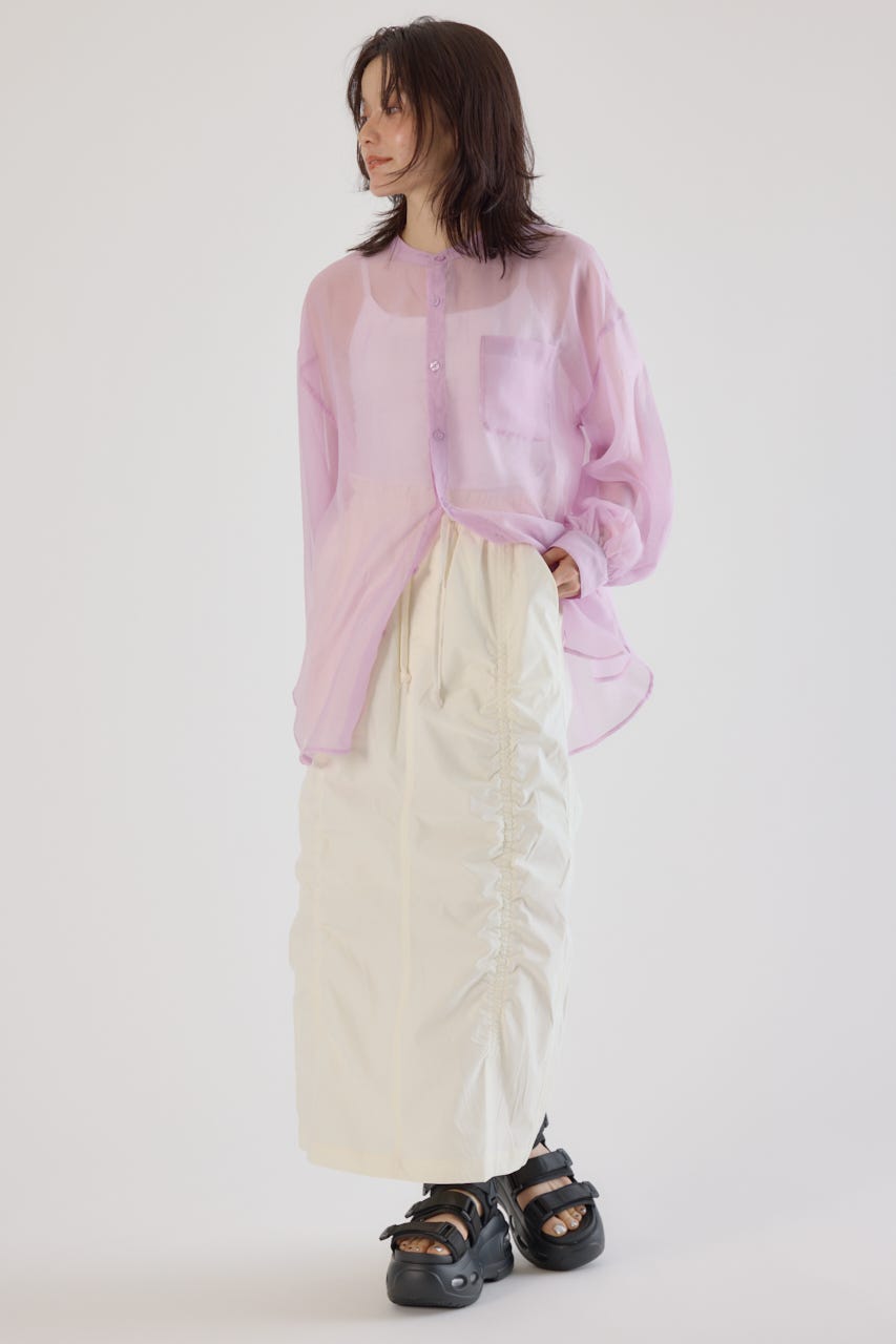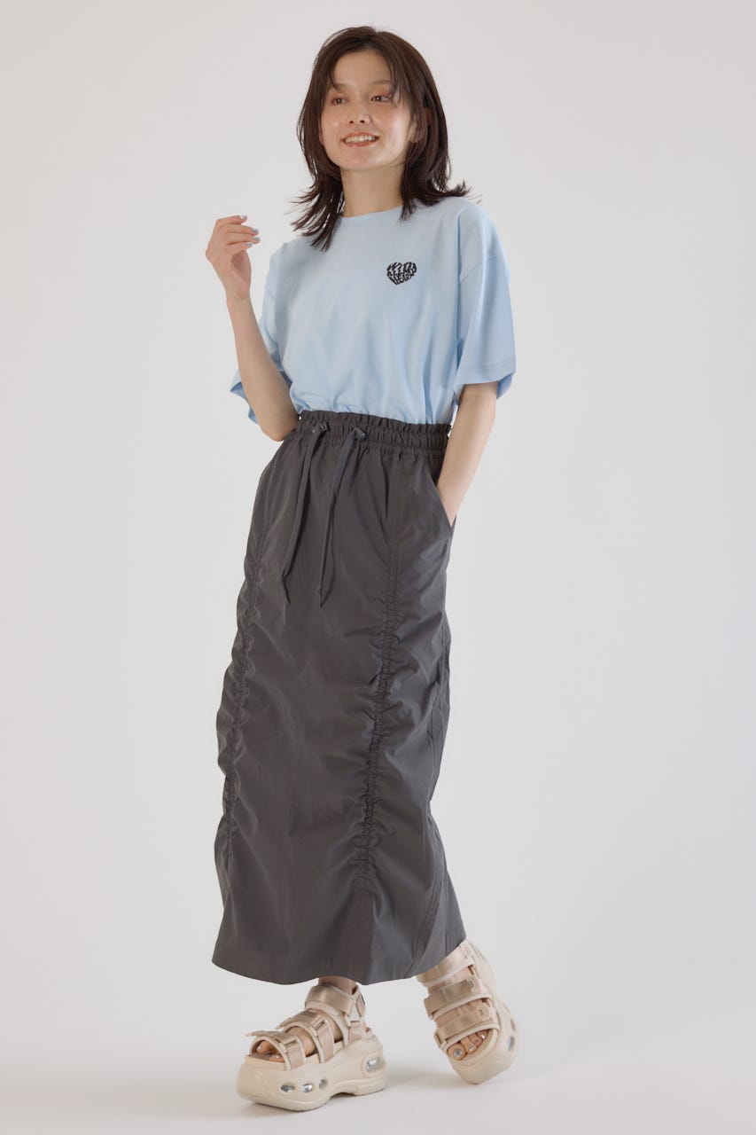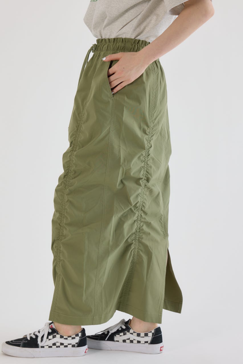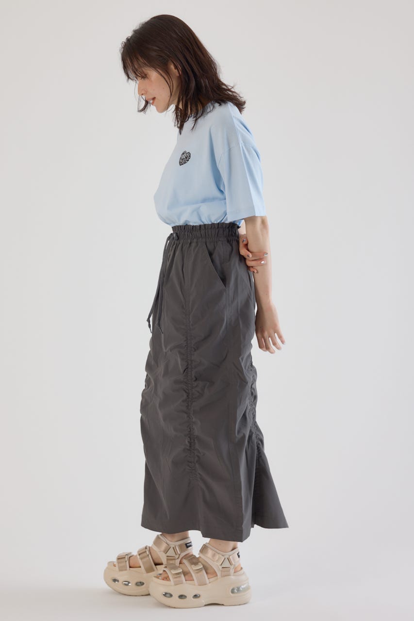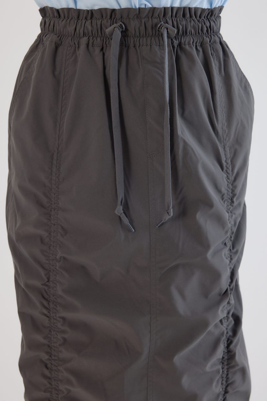 フロントとバックにシャーリングを効かせたデザインが目を惹くスカート。