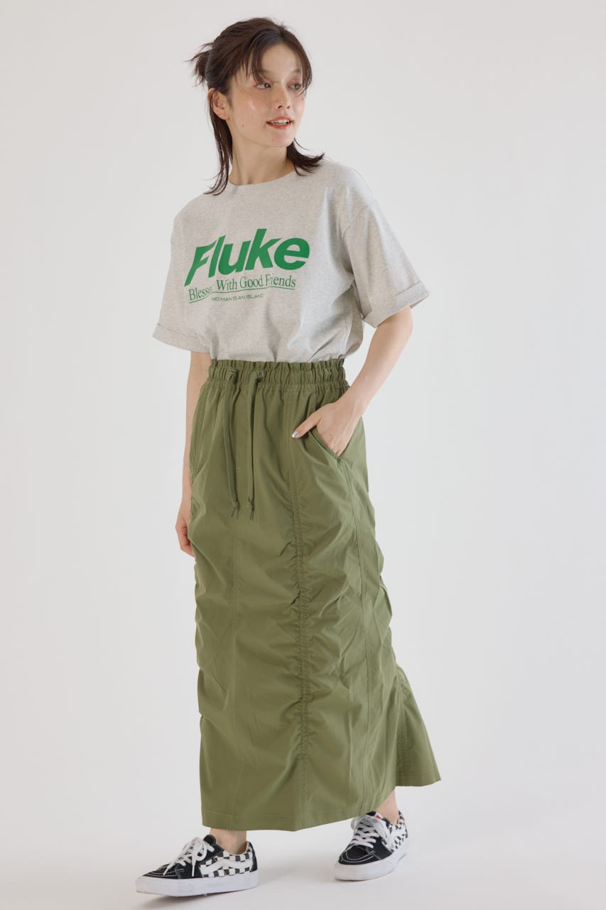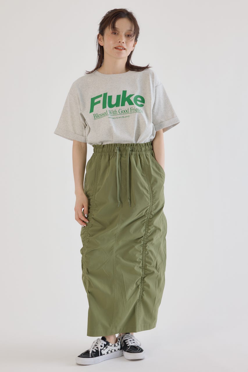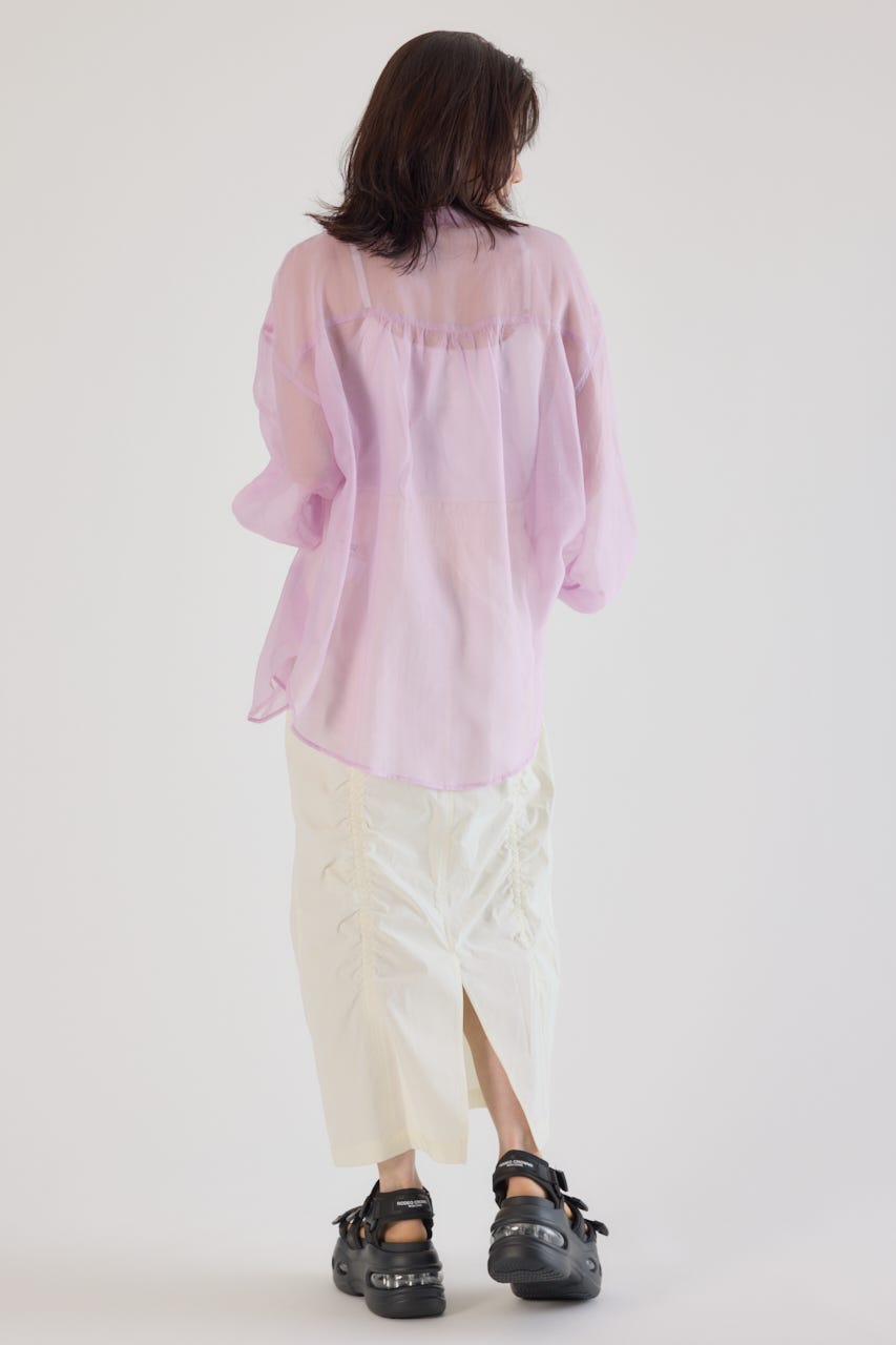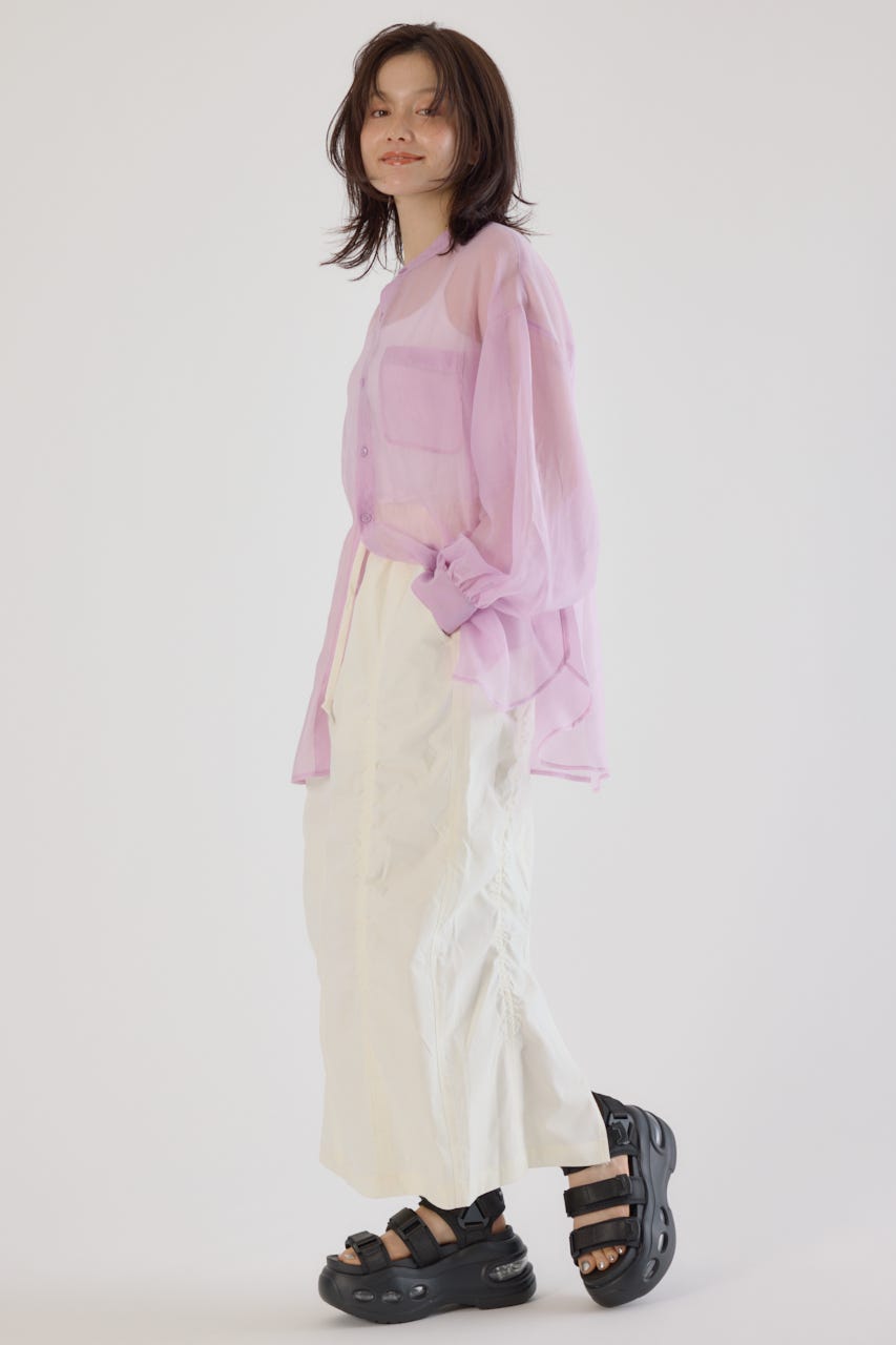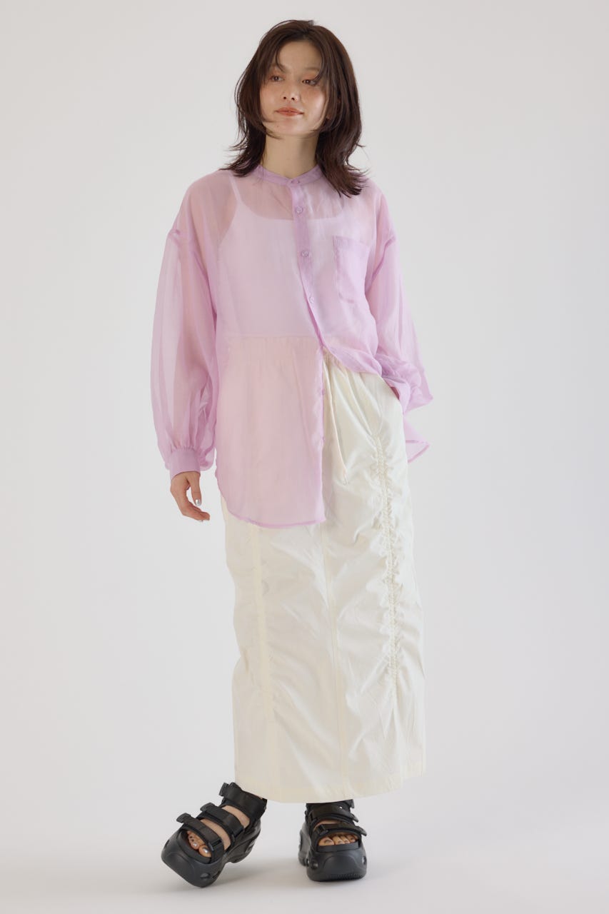フロントとバックにシャーリングを効かせたデザインが目を惹くスカート。