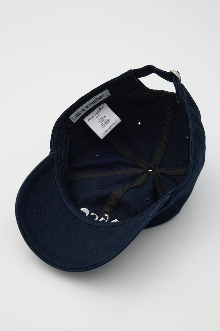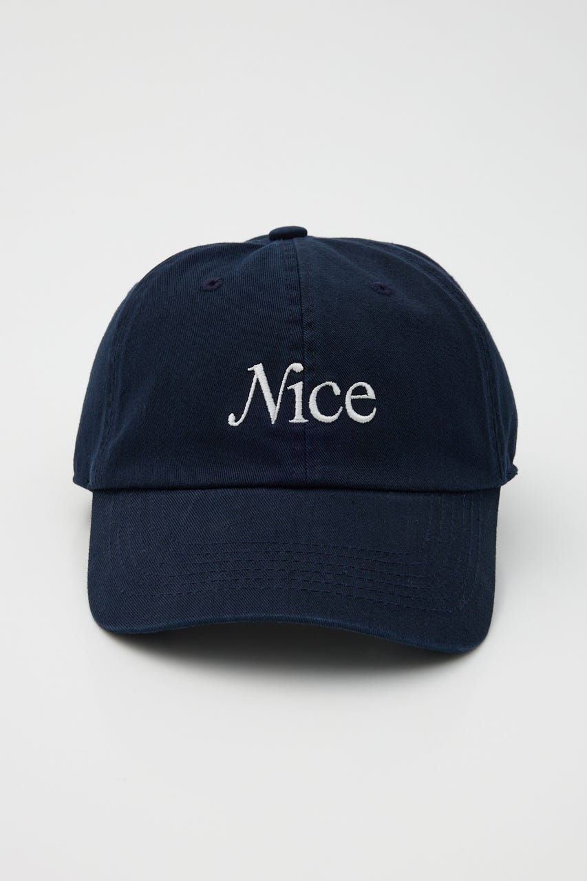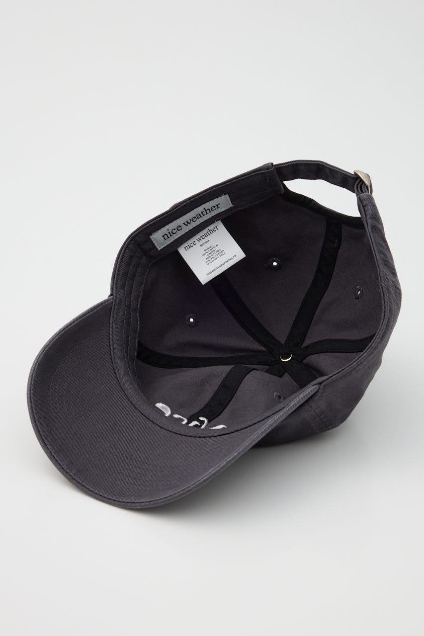 デザインシグネチャーグラフィックの刺繍が目を引くコットンキャップ。
