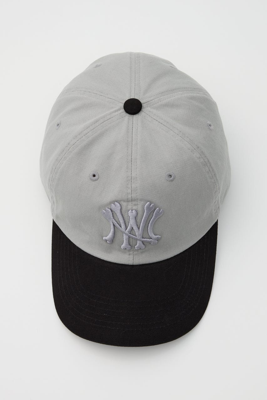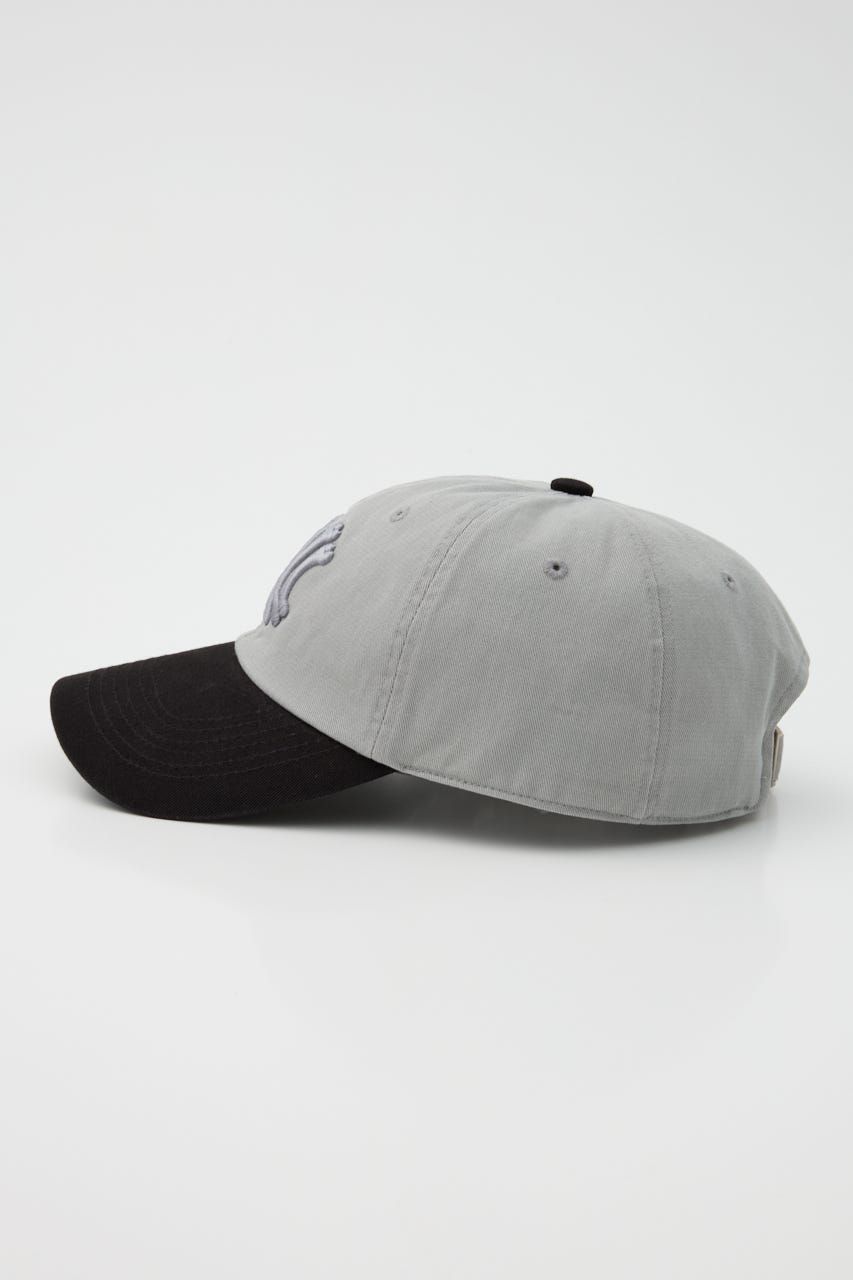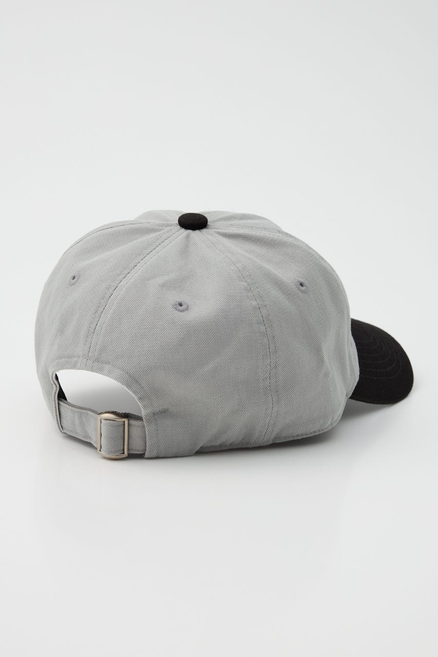 パロディ風のフロントロゴグラフィック刺繍が目を引くコットンキャップ。
