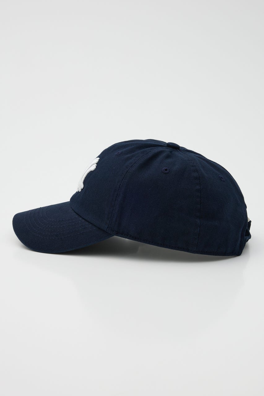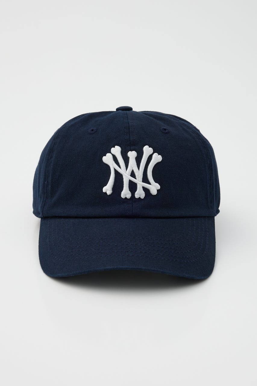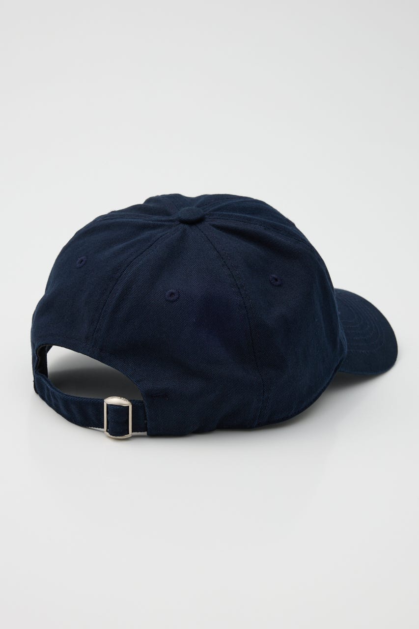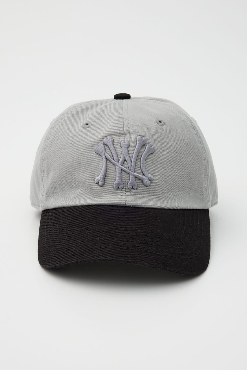 パロディ風のフロントロゴグラフィック刺繍が目を引くコットンキャップ。