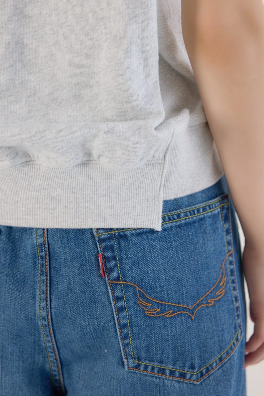 リメイクされたようなデザインと抜け感のあるシルエットがかわいいスウェットトップスです。