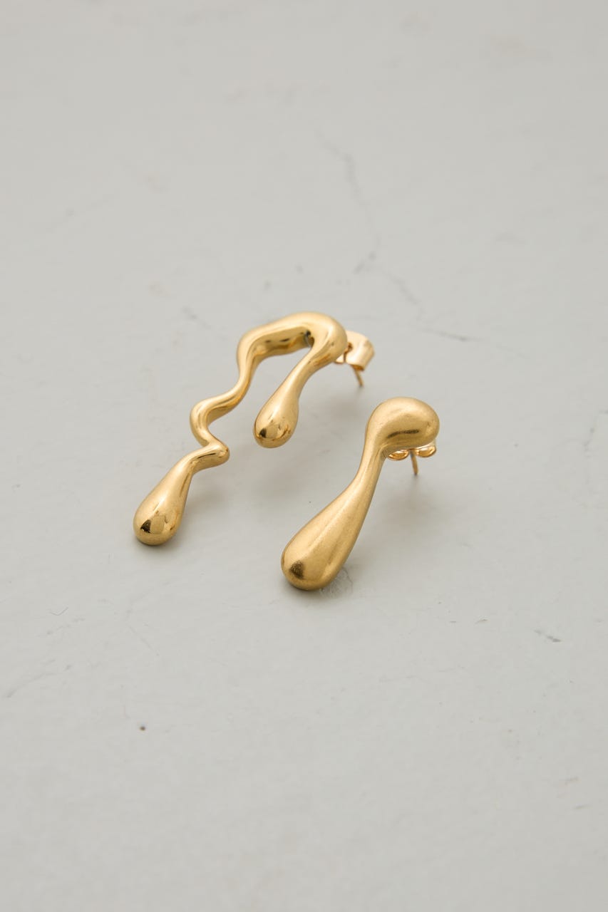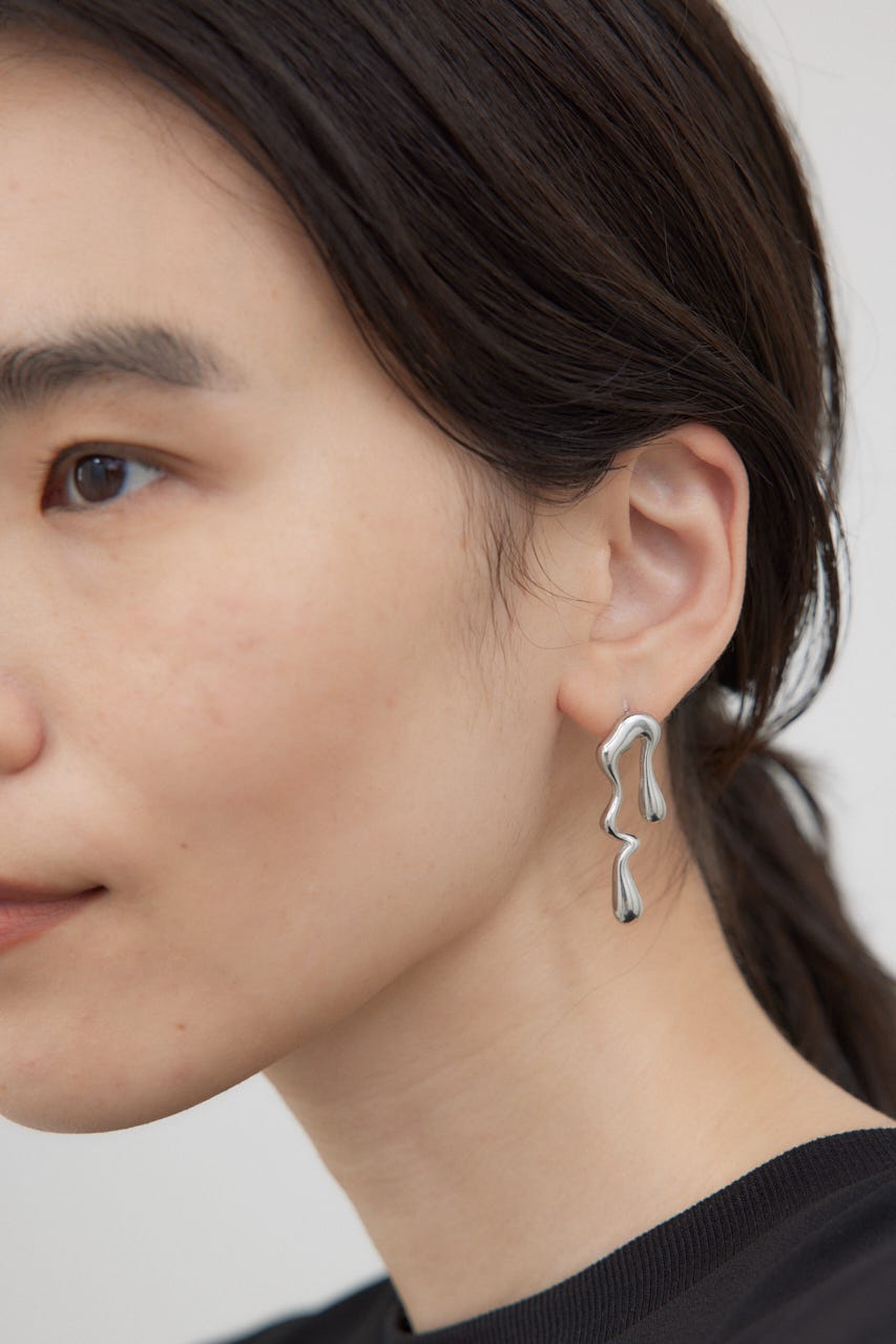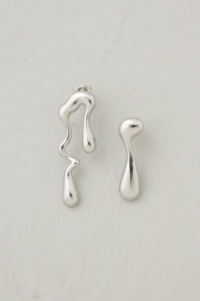 インクを垂らしたような、左右アシンメトリーデザインのピアスです。