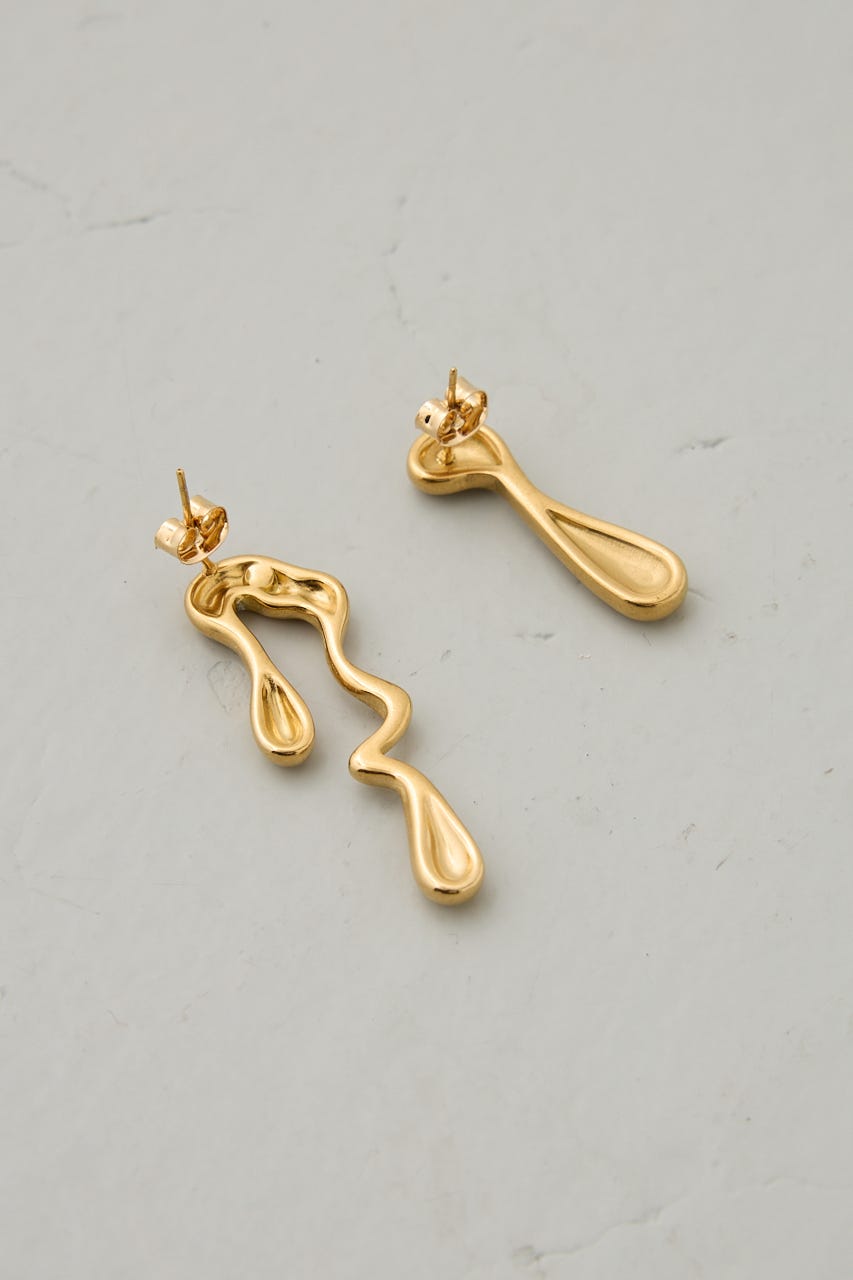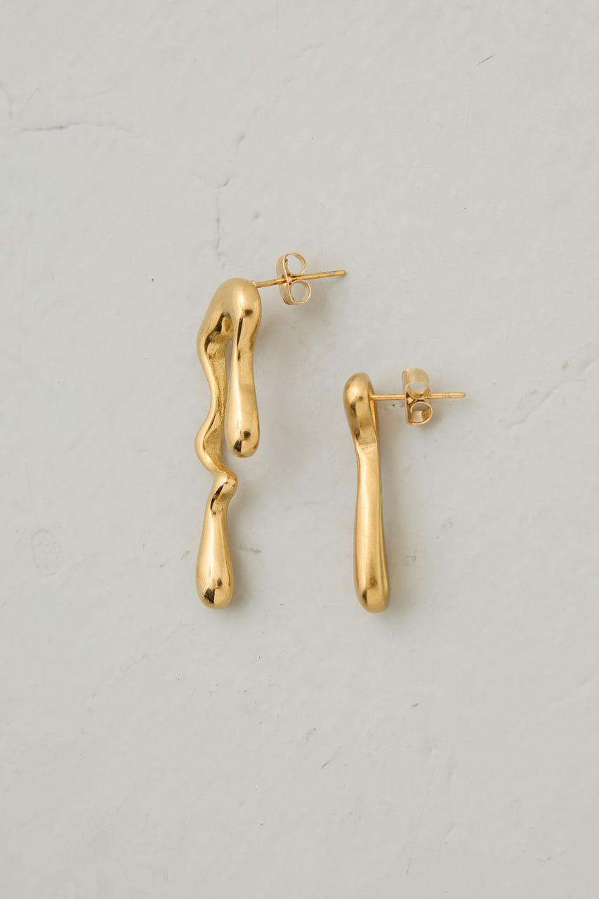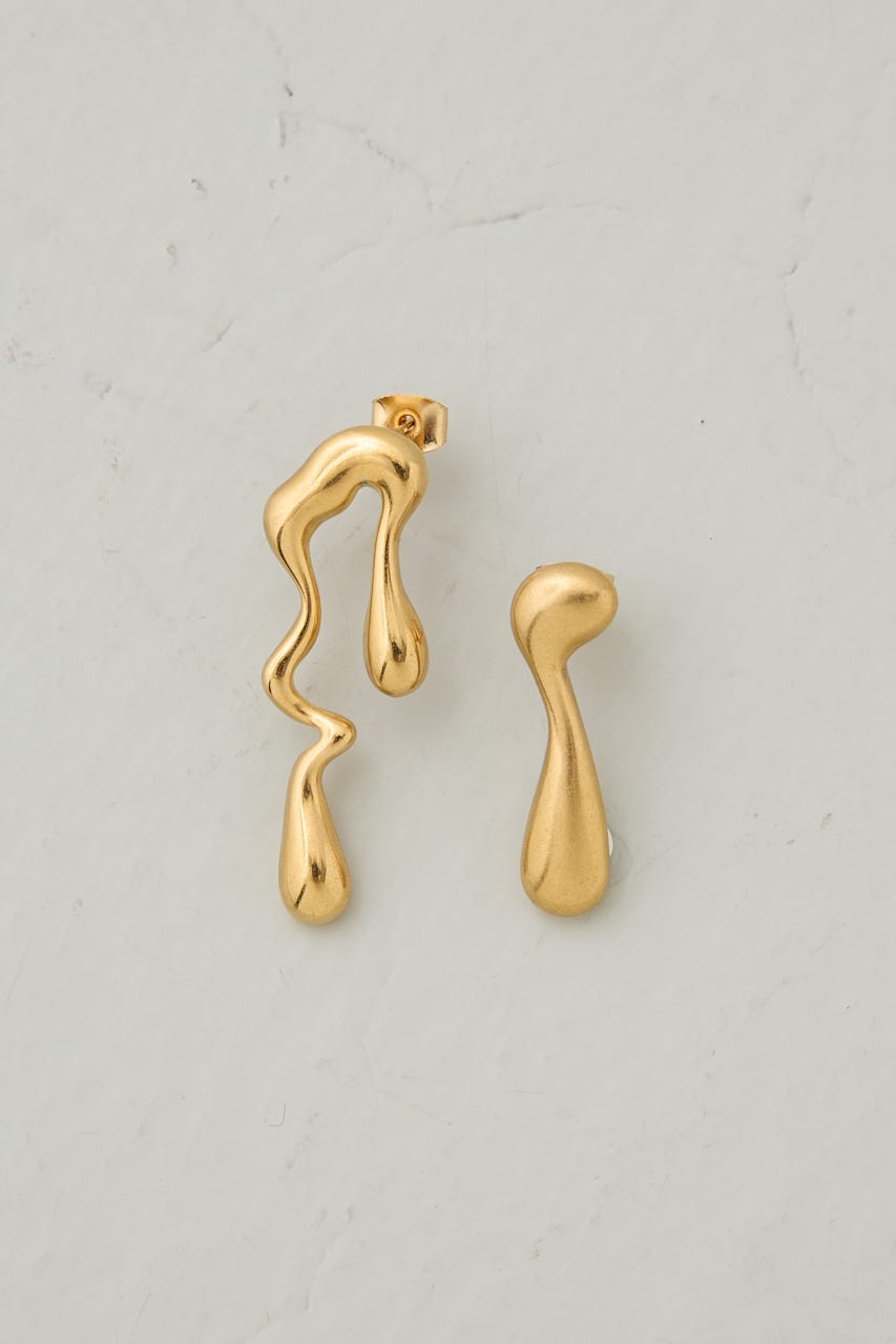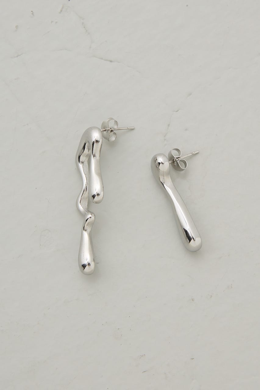 インクを垂らしたような、左右アシンメトリーデザインのピアスです。