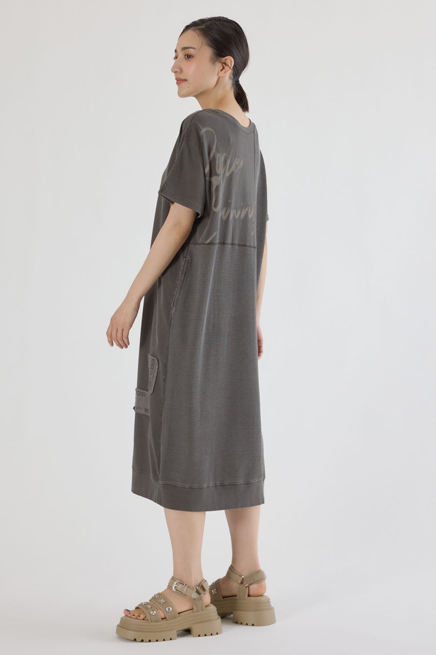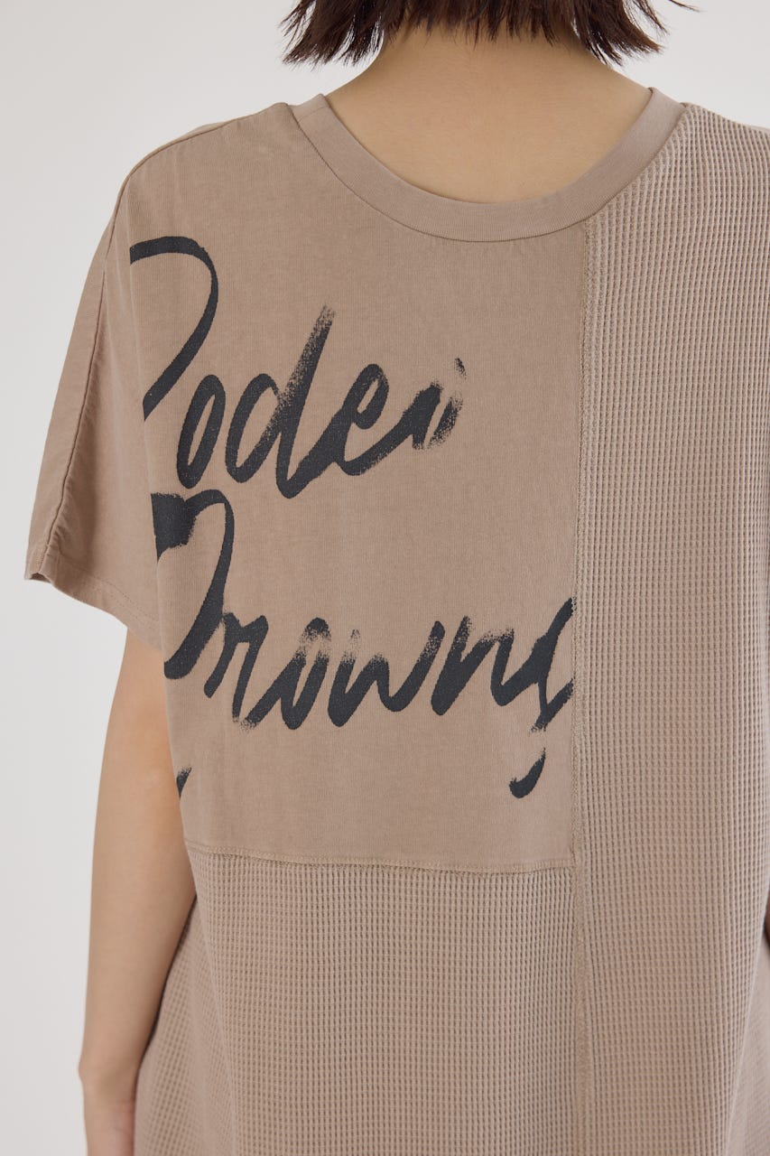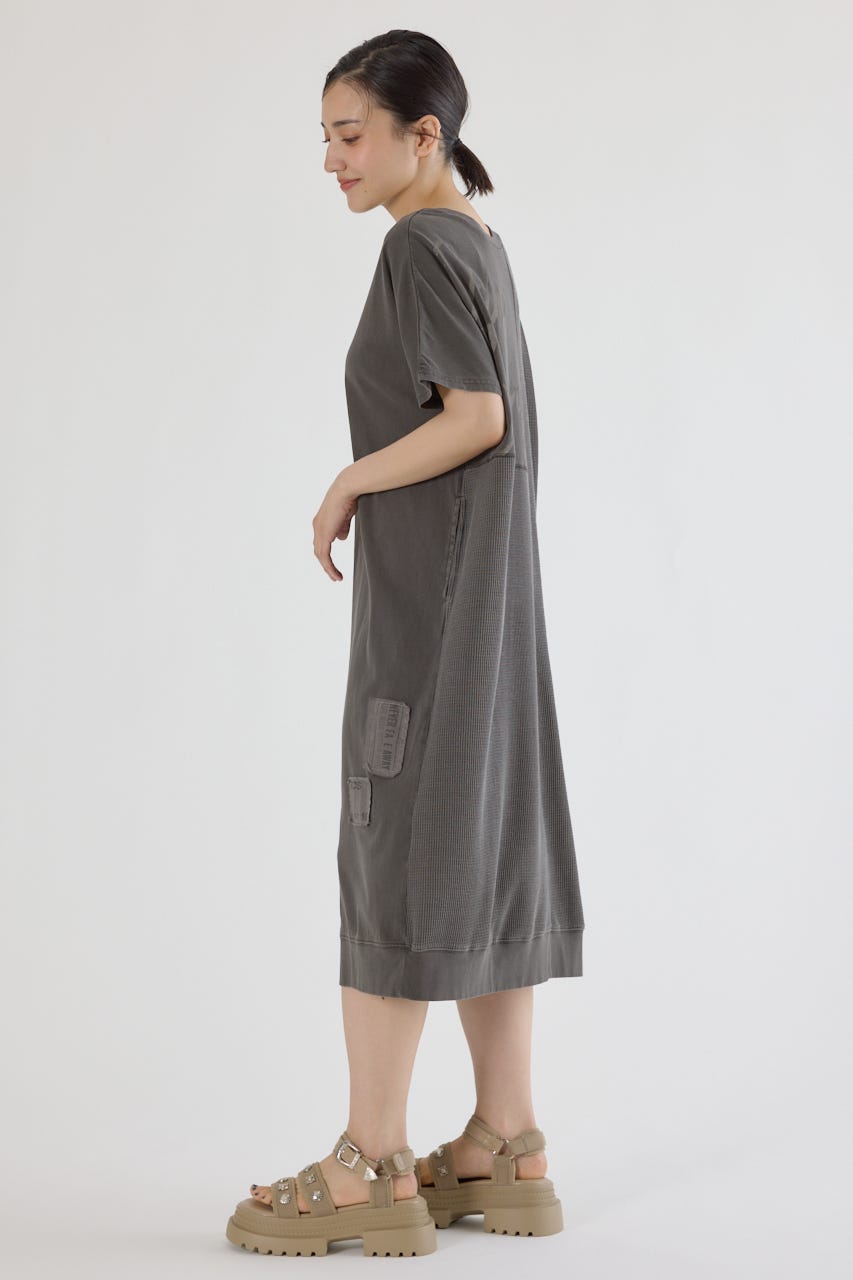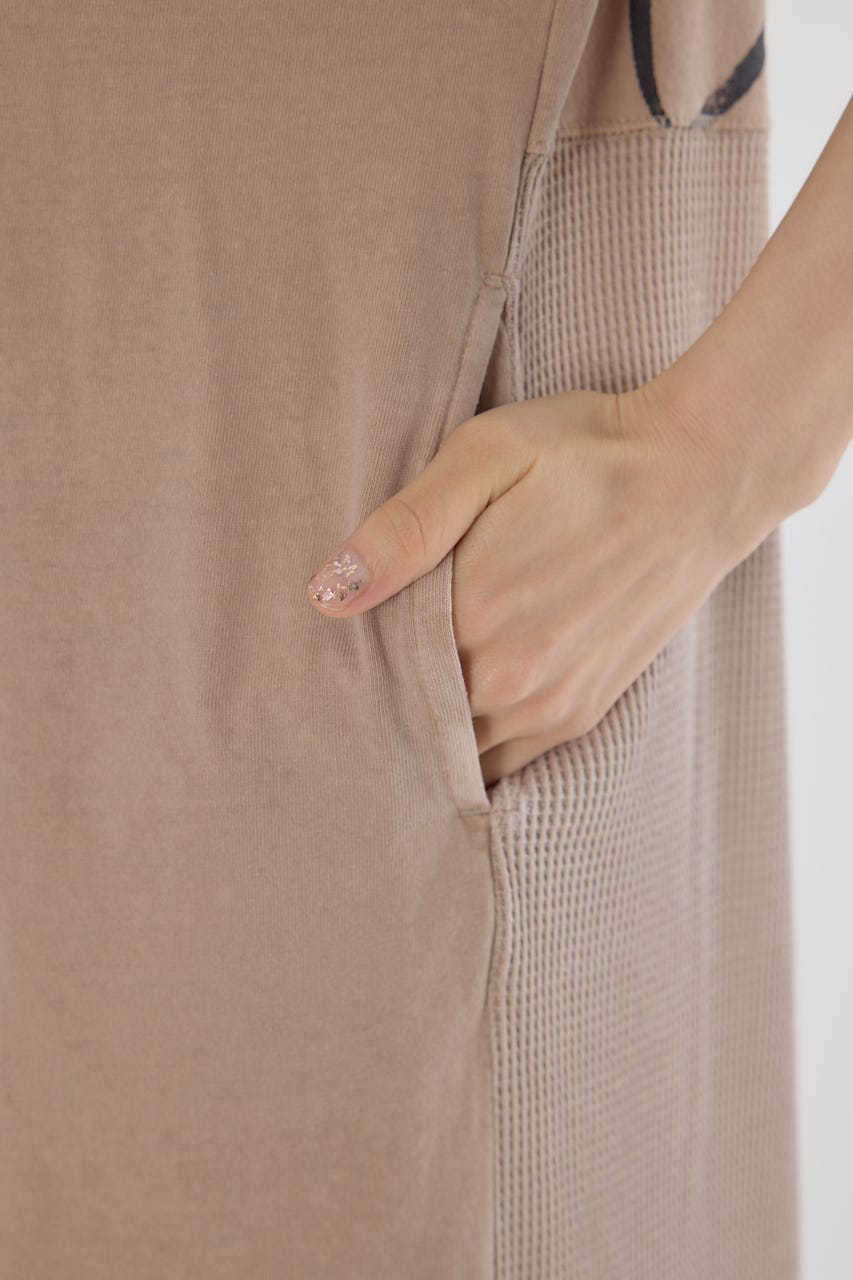 ワッフル生地と天竺生地をドッキングしてリメイクされたようなデザイン。