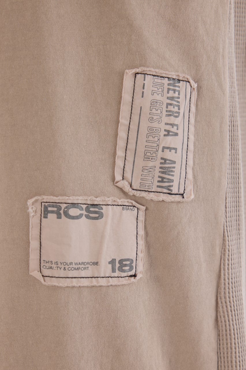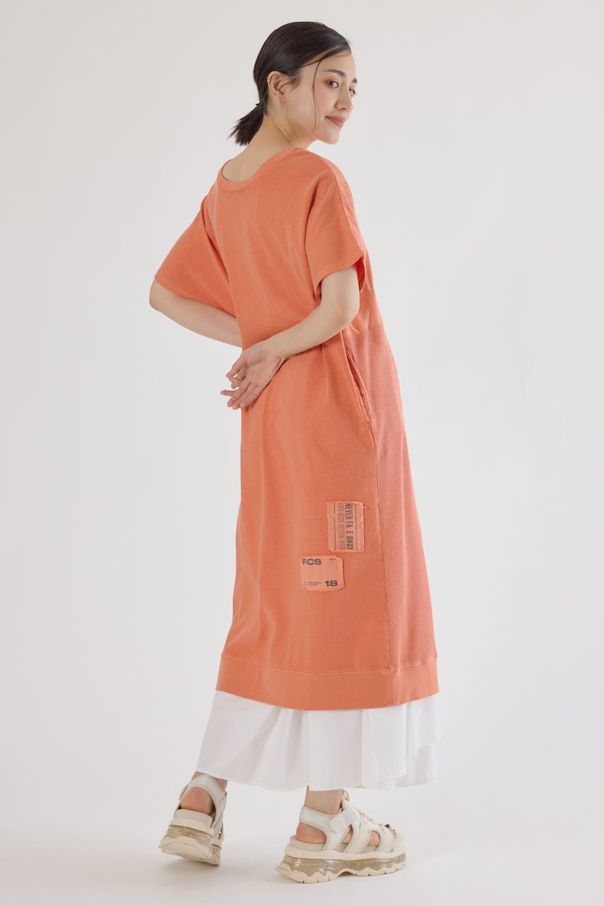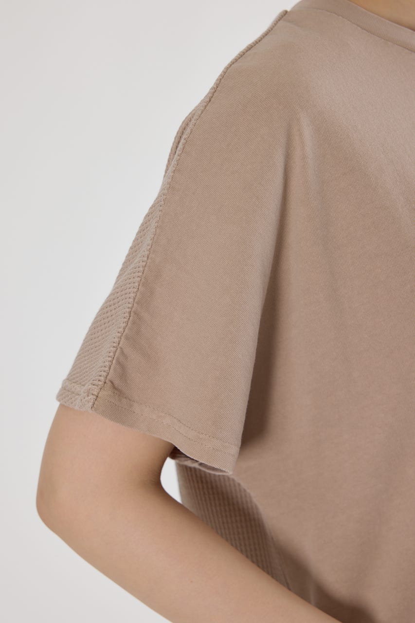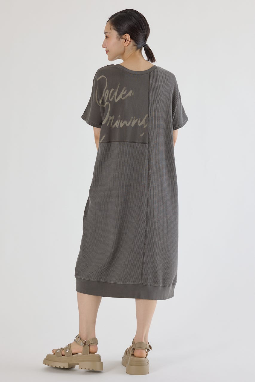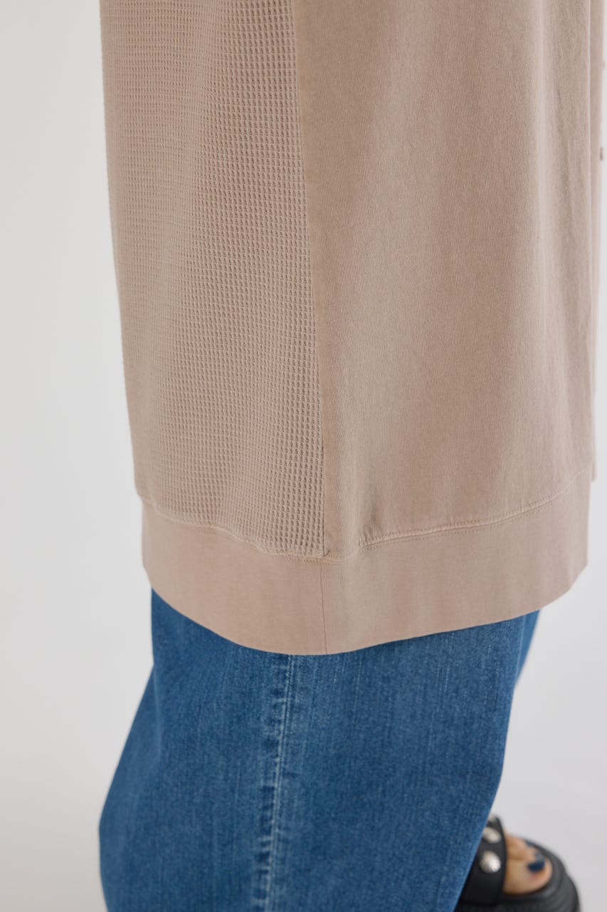 ワッフル生地と天竺生地をドッキングしてリメイクされたようなデザイン。