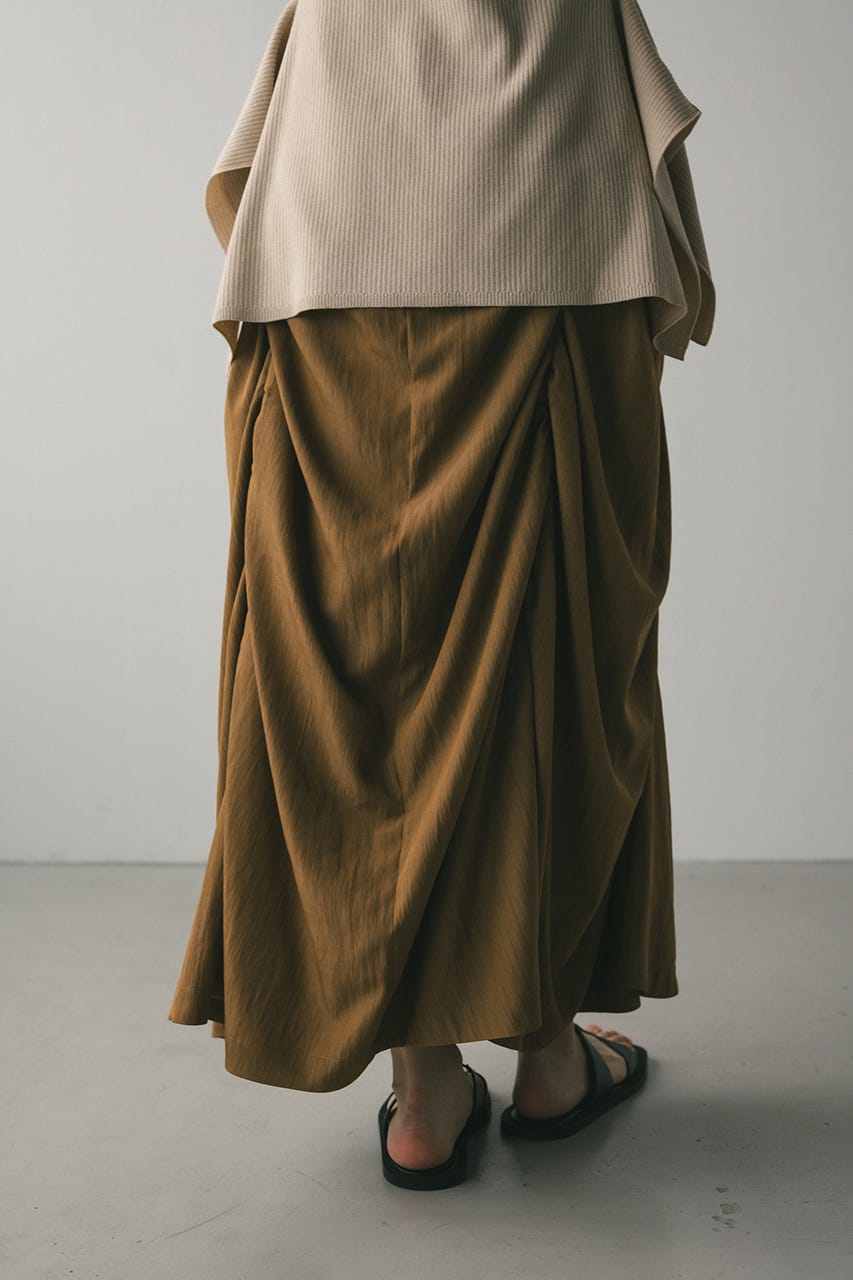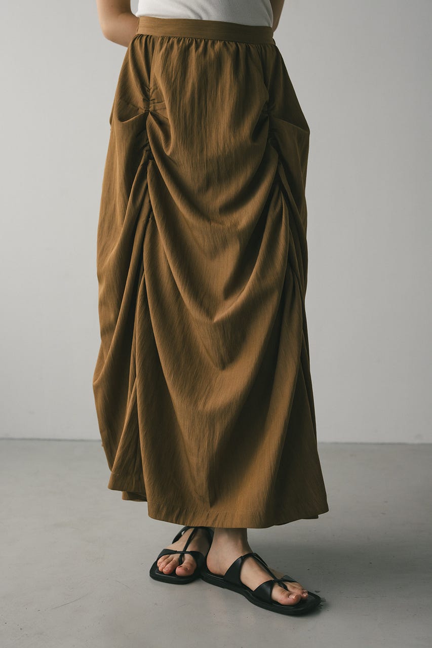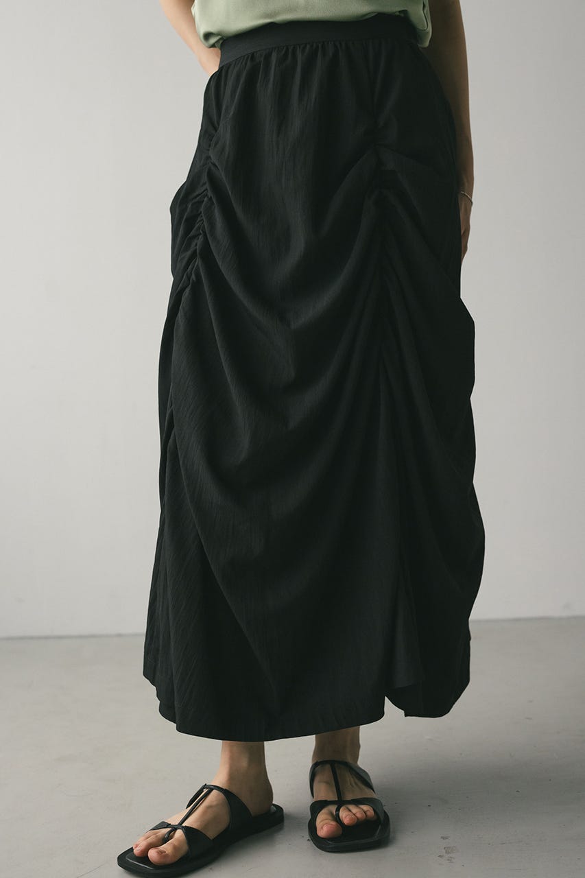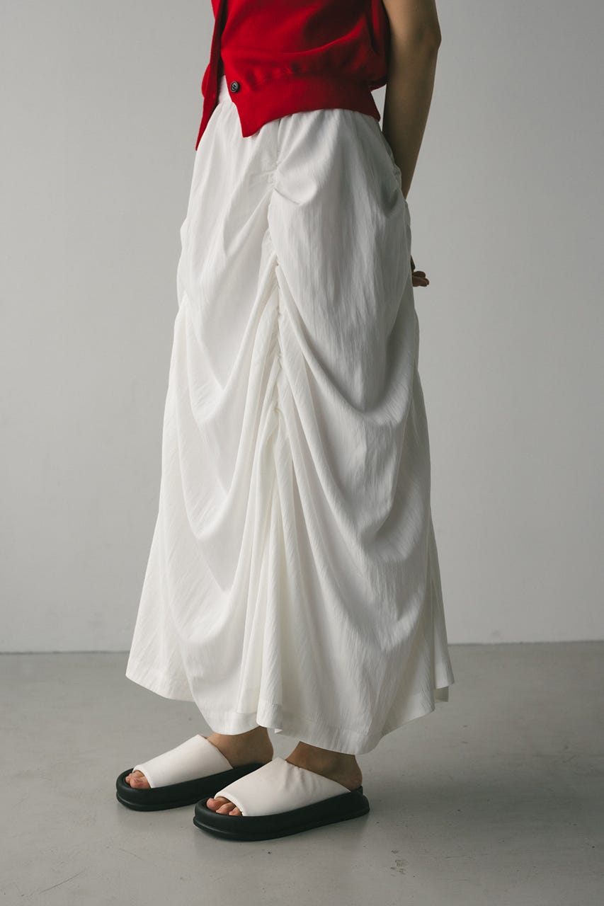 ボリューム感があるのでトップスはシンプルなものでもコーディネートが決まります。