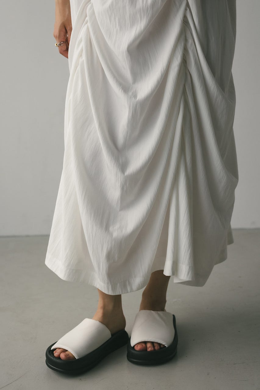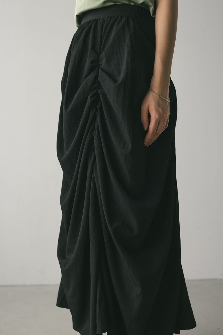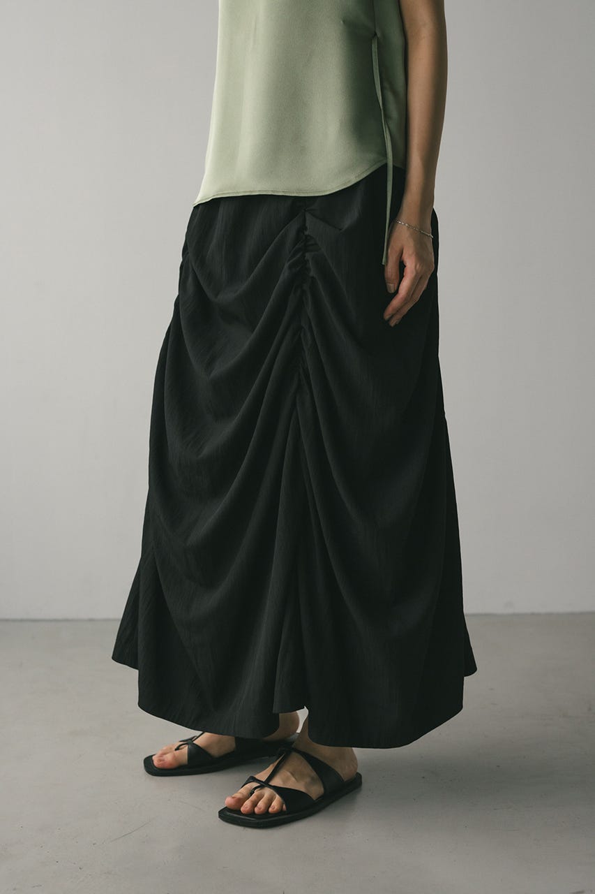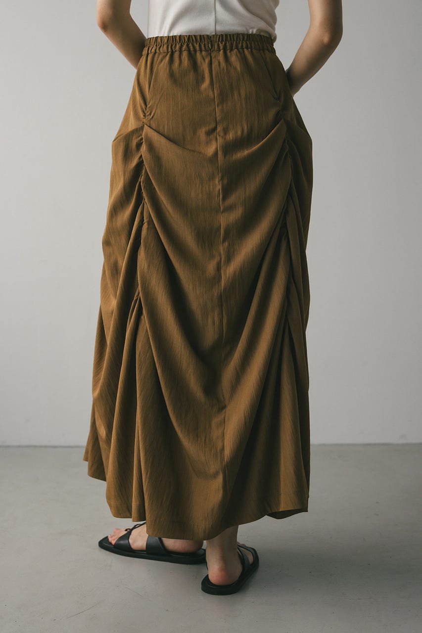 ボリューム感があるのでトップスはシンプルなものでもコーディネートが決まります。