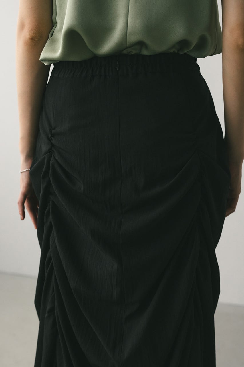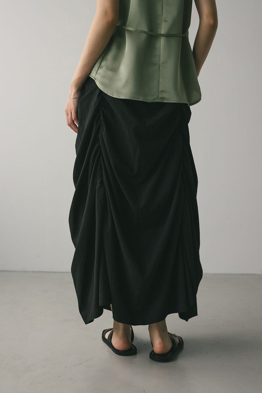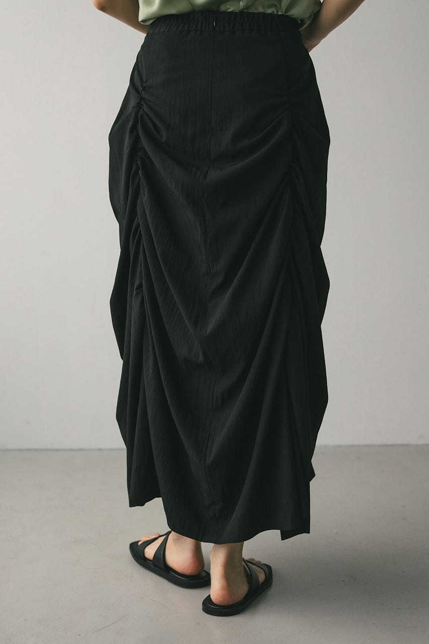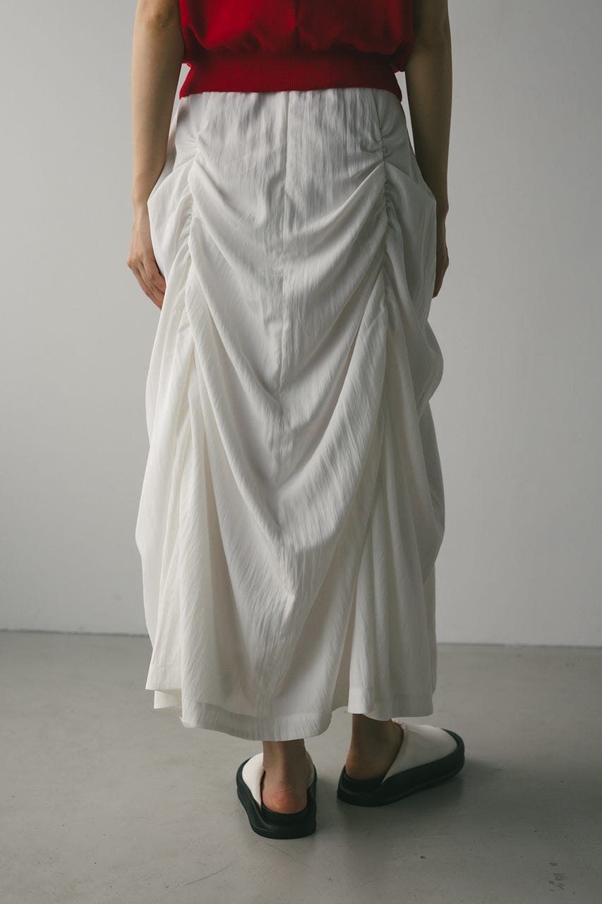 ボリューム感があるのでトップスはシンプルなものでもコーディネートが決まります。