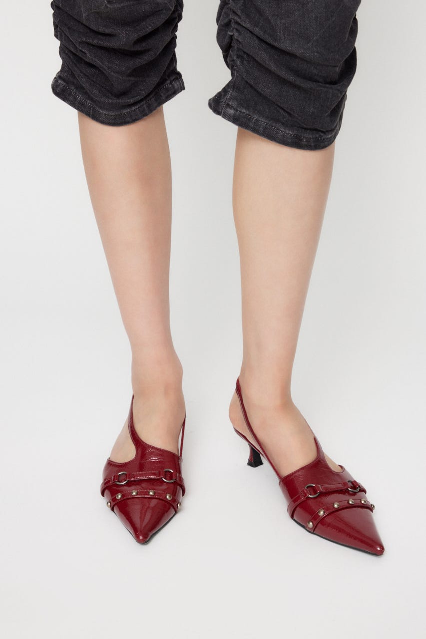 ■DETAIL:シャープなポインテッドのディティールで、ヒールも低く歩きやすくなっています。