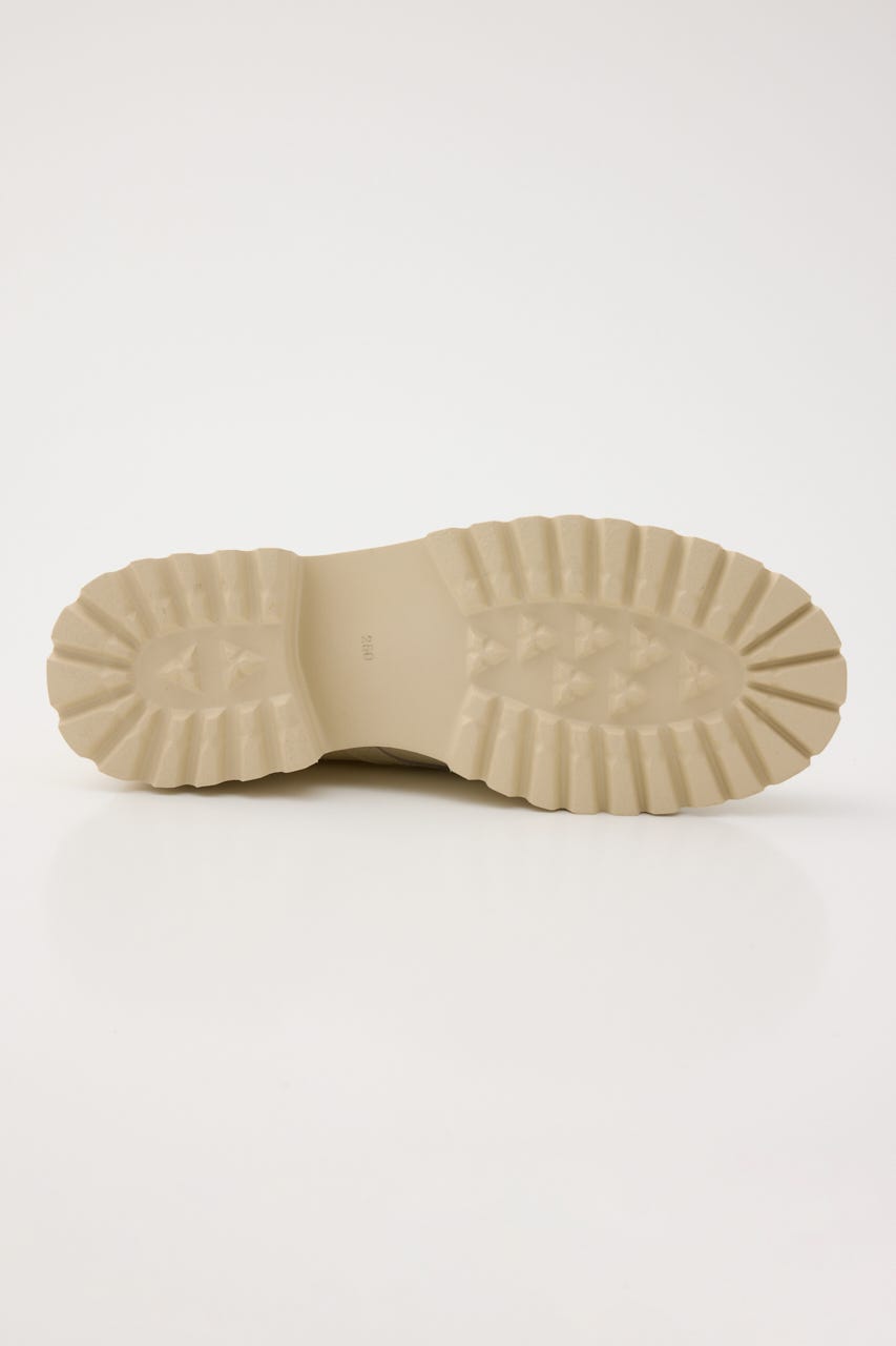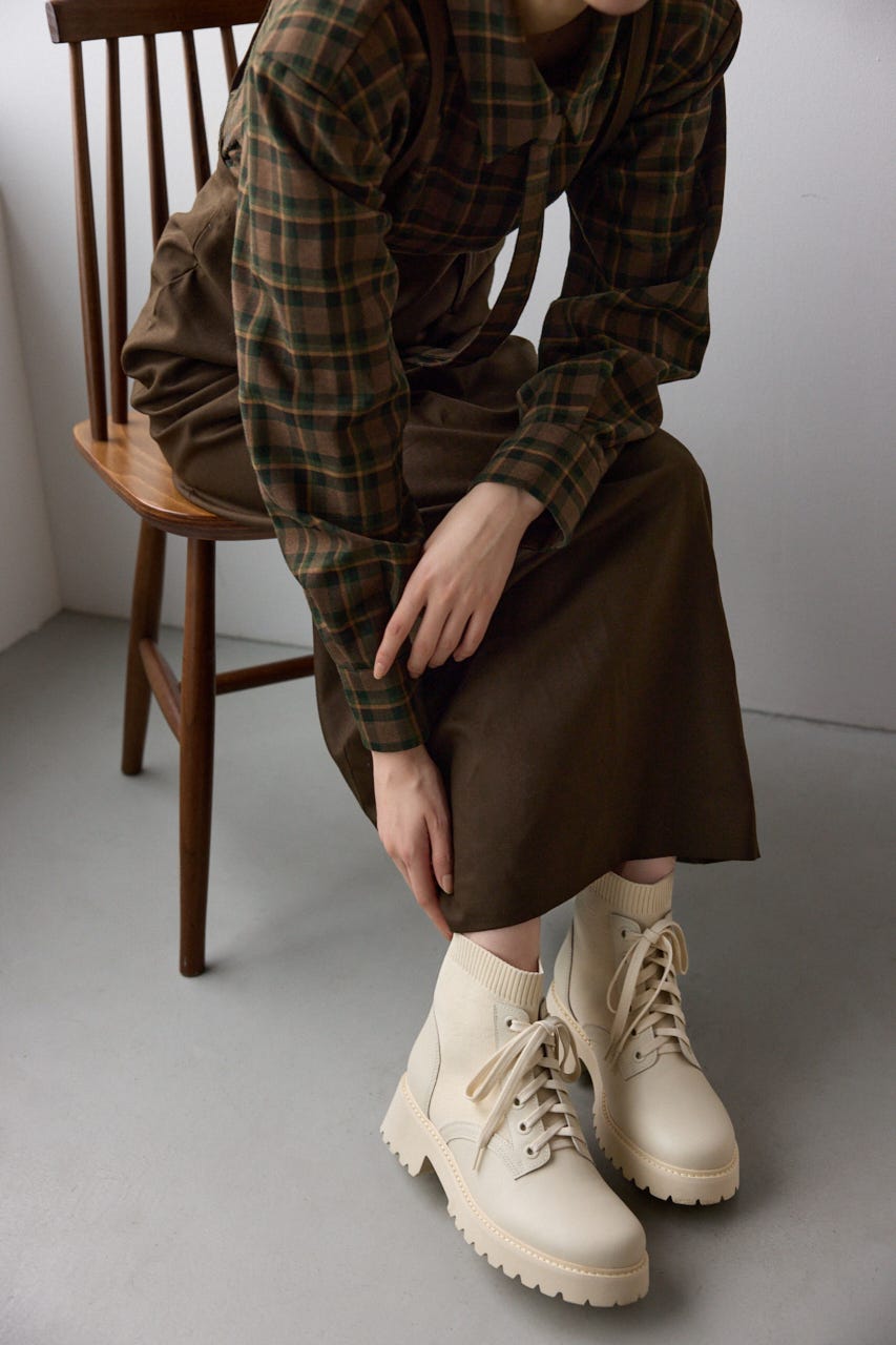 人気のシーンを選ばすラフに履ける、レースアップ風ニットコンビブーツが待望の再販売。着脱も簡単で、スタイリングに合わせやすい絶妙な丈間とモードなフォルムに、さり気なくトレンドを取り入れたタンクソールが程よくボリューム感もありアクセントに〇
