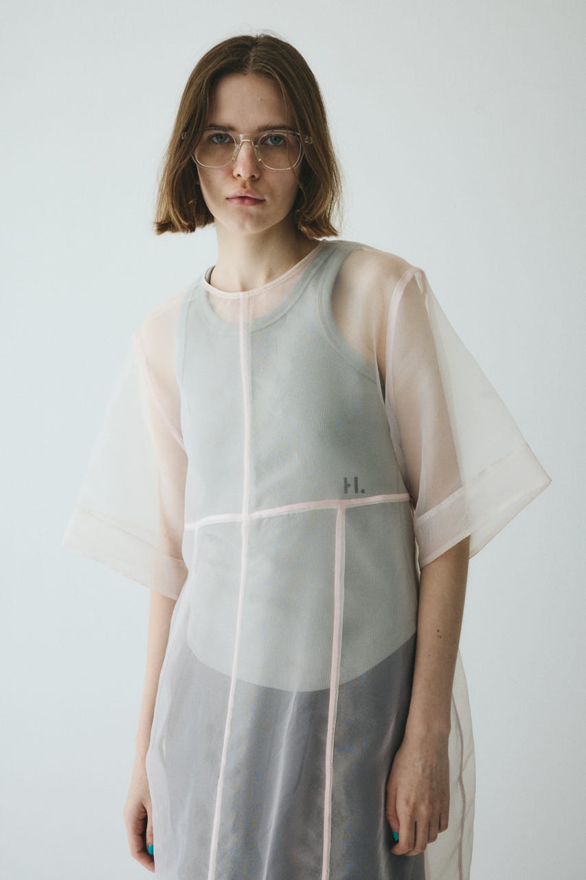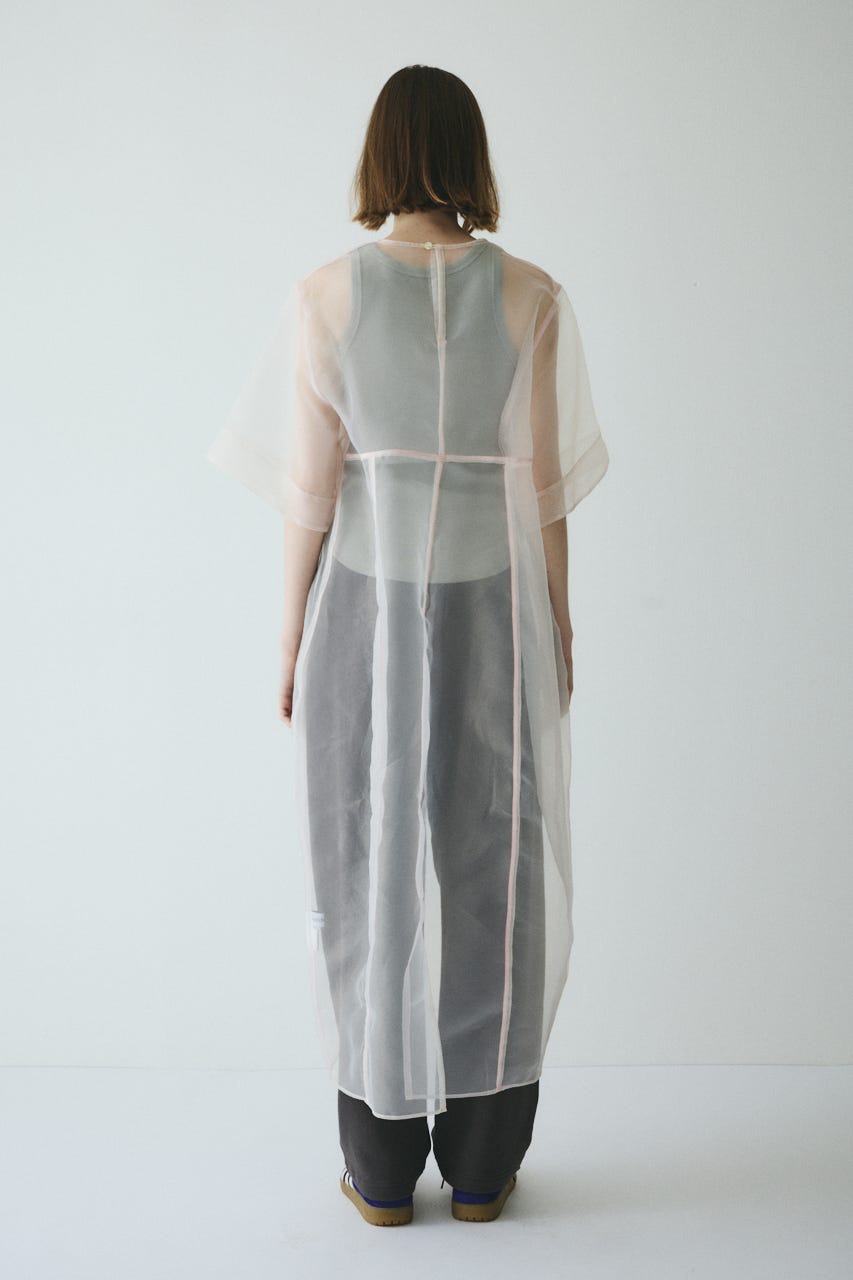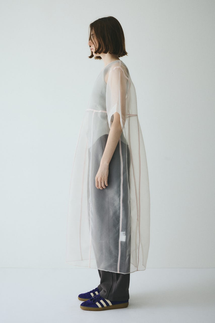 光沢感のあるオーガンジー素材が上品さを演出してくれるボリュームワンピース