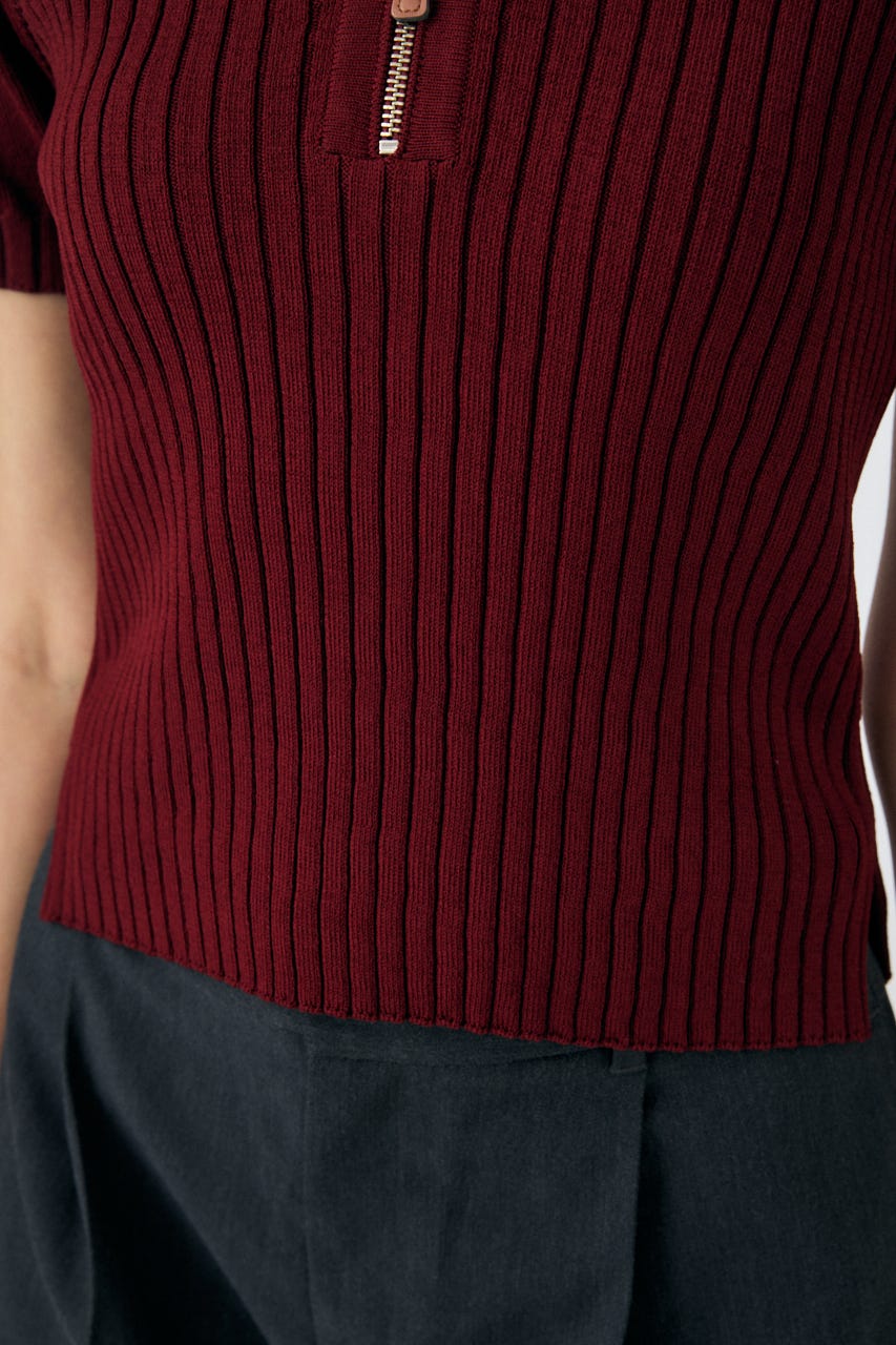 杢調の編み地を使用した、奥行きのある表情が魅力のポロトップス。