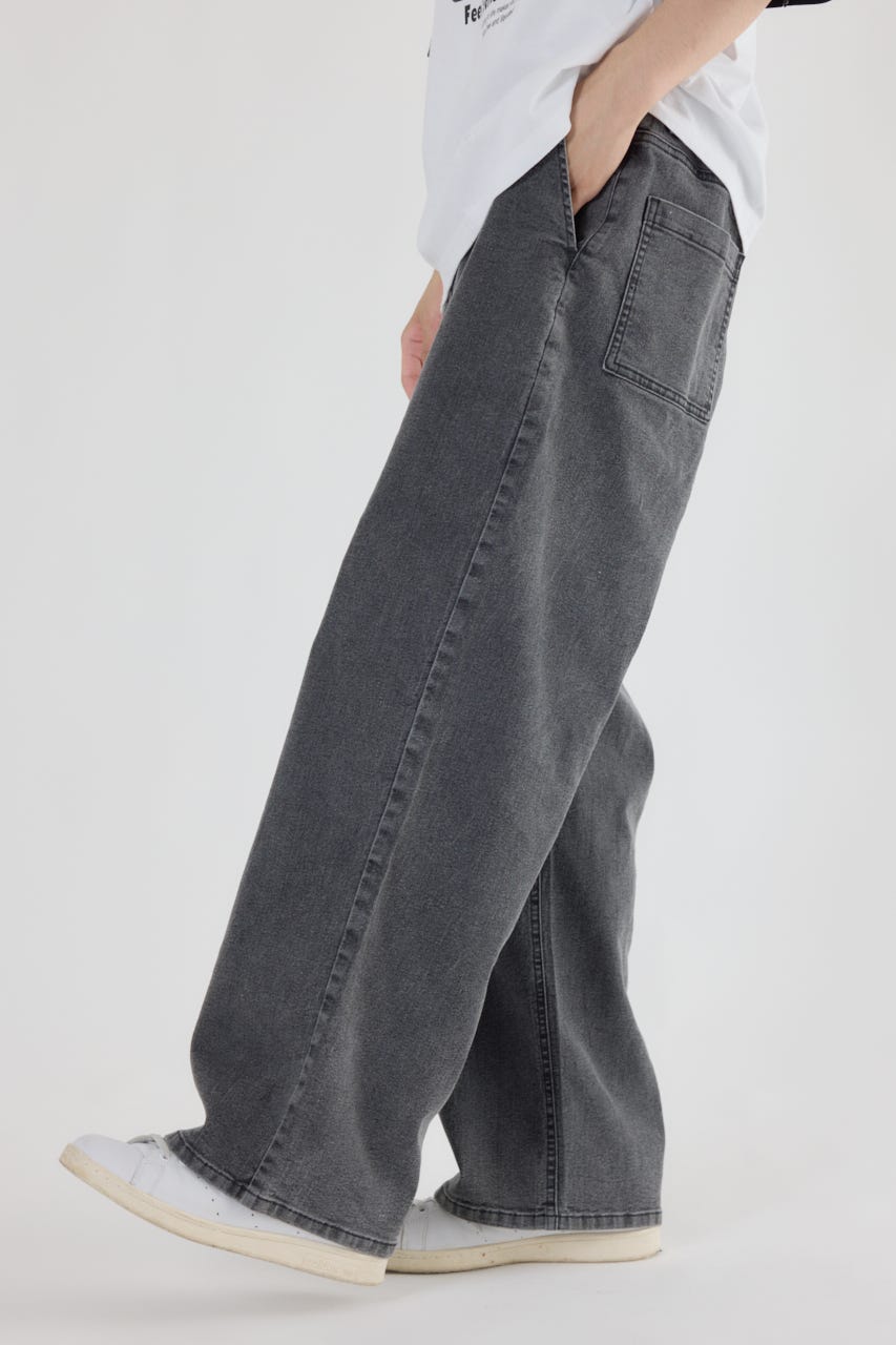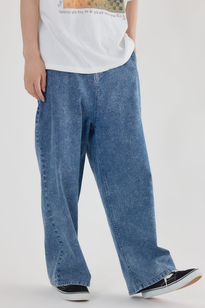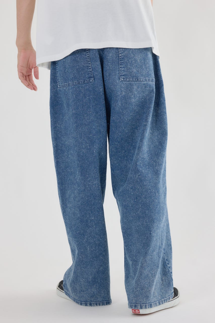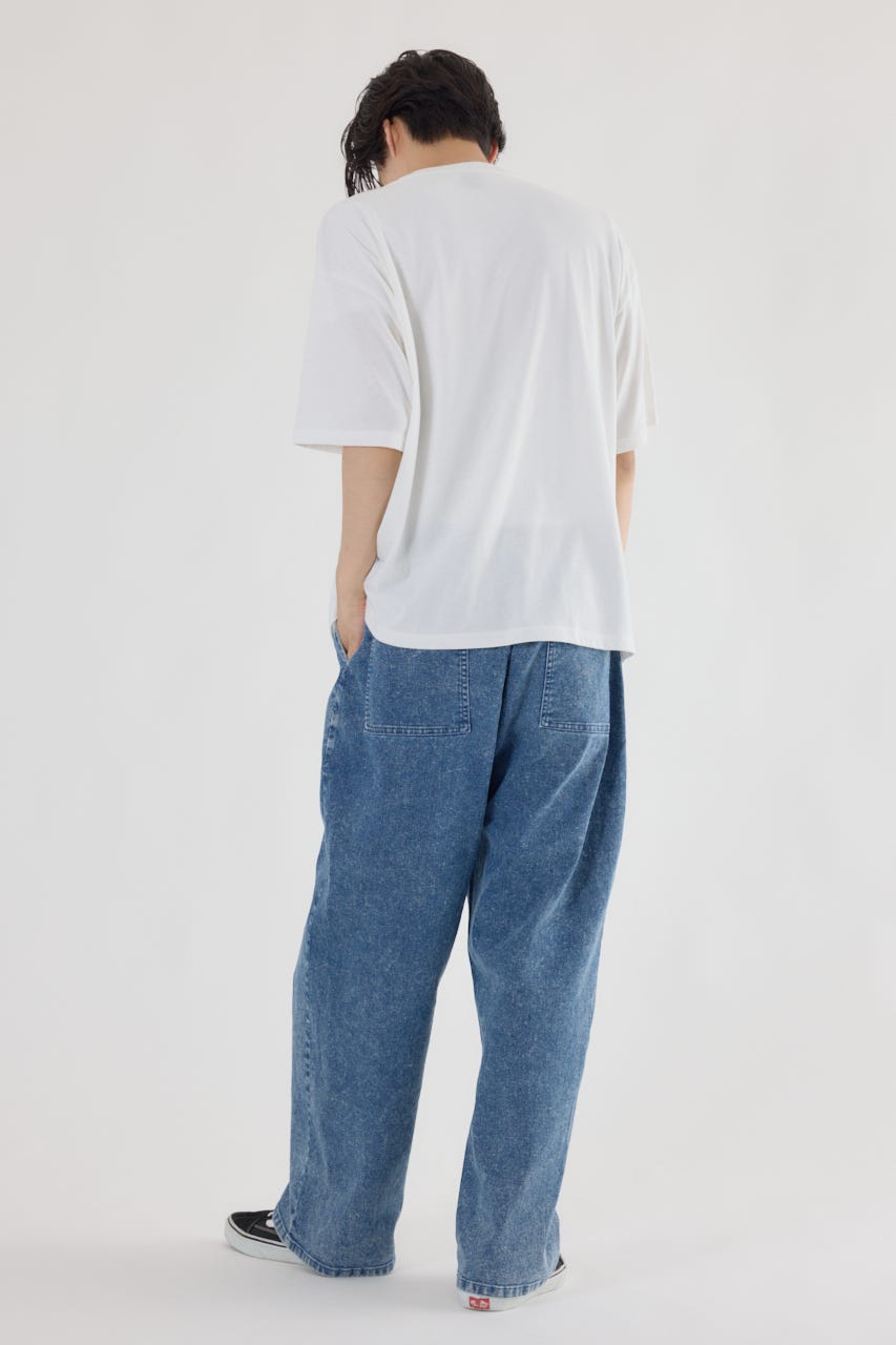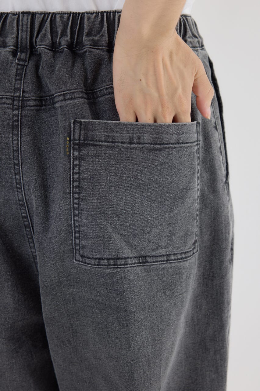 ゆったりとしたワイドシルエットに加え、後ろウエストがゴム仕様なので、ストレスフリーな穿き心地がポイントです。