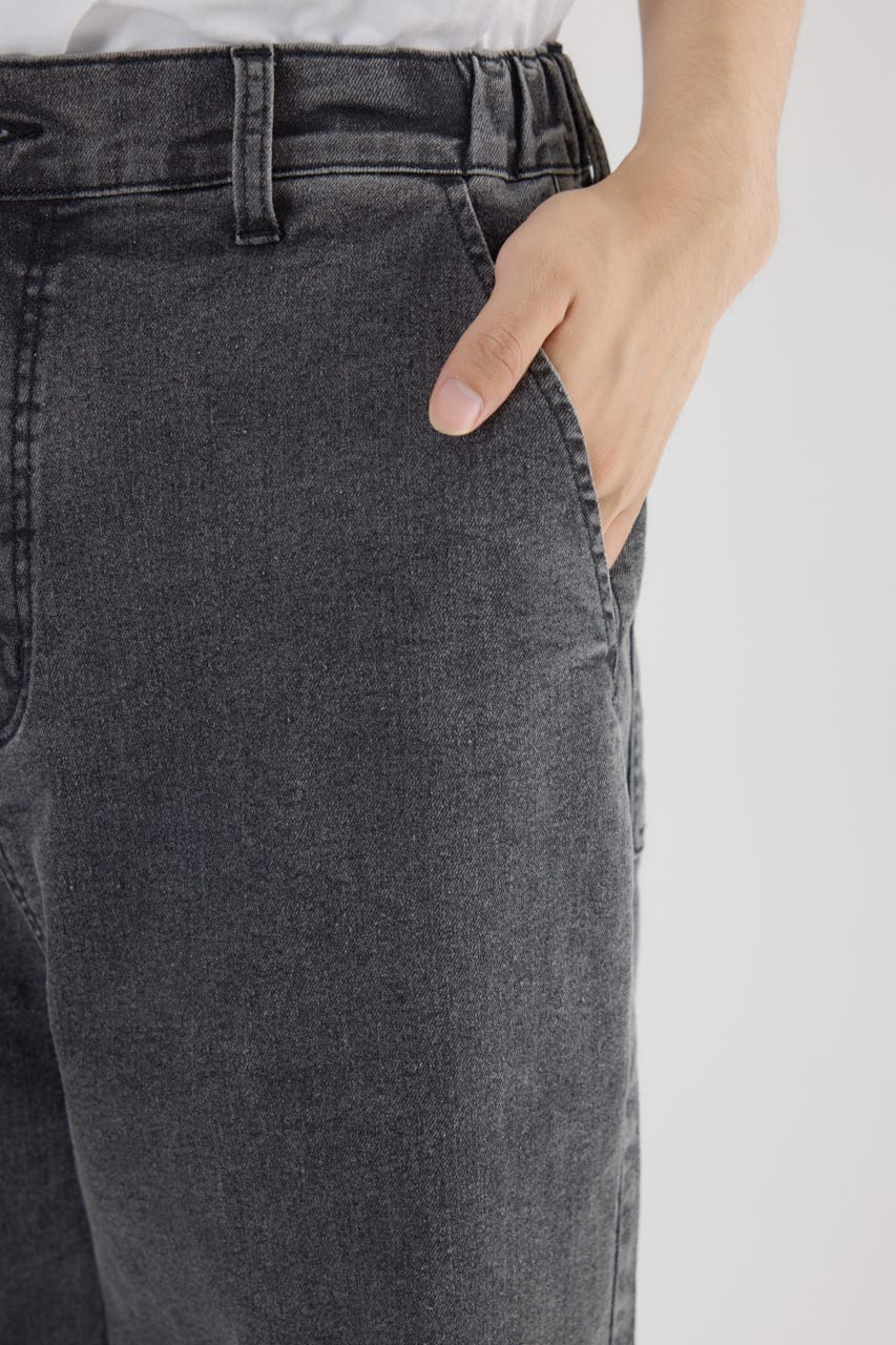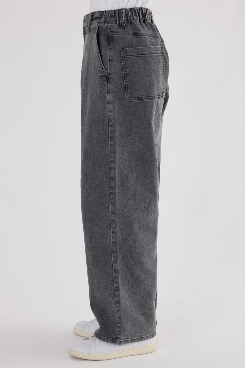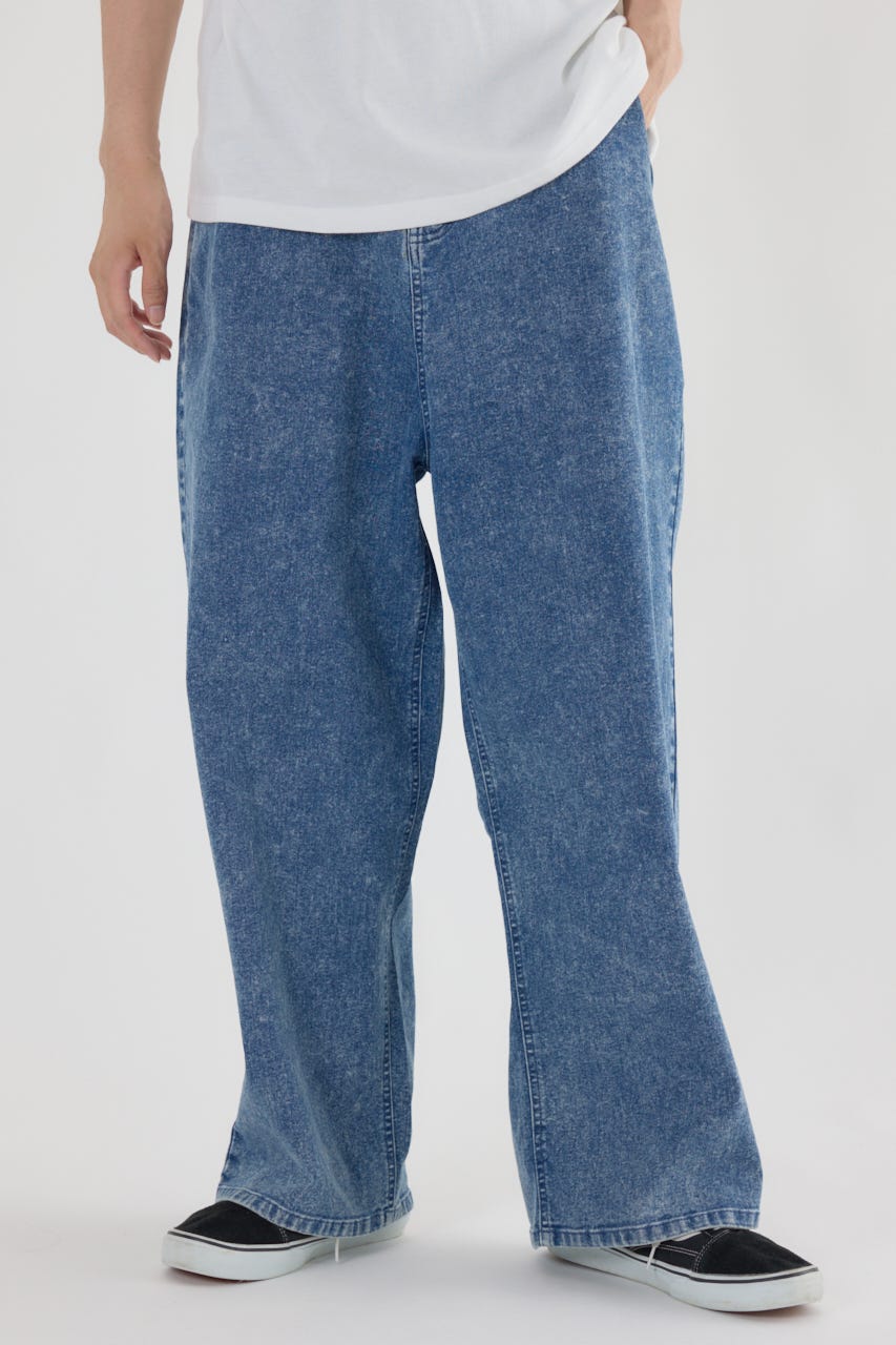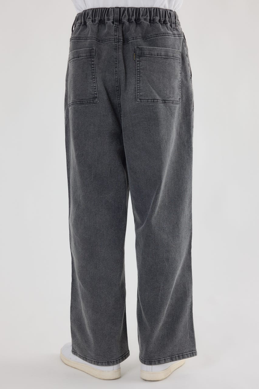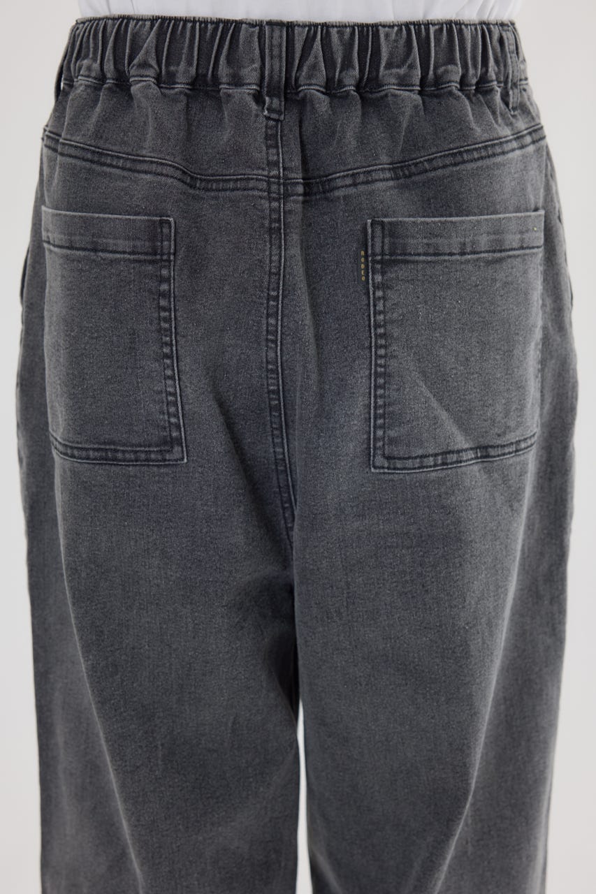 ゆったりとしたワイドシルエットに加え、後ろウエストがゴム仕様なので、ストレスフリーな穿き心地がポイントです。