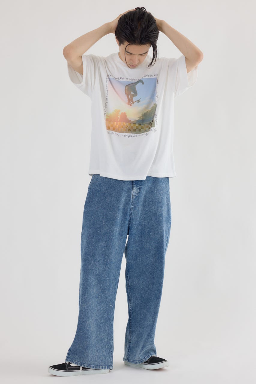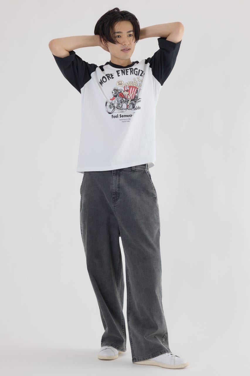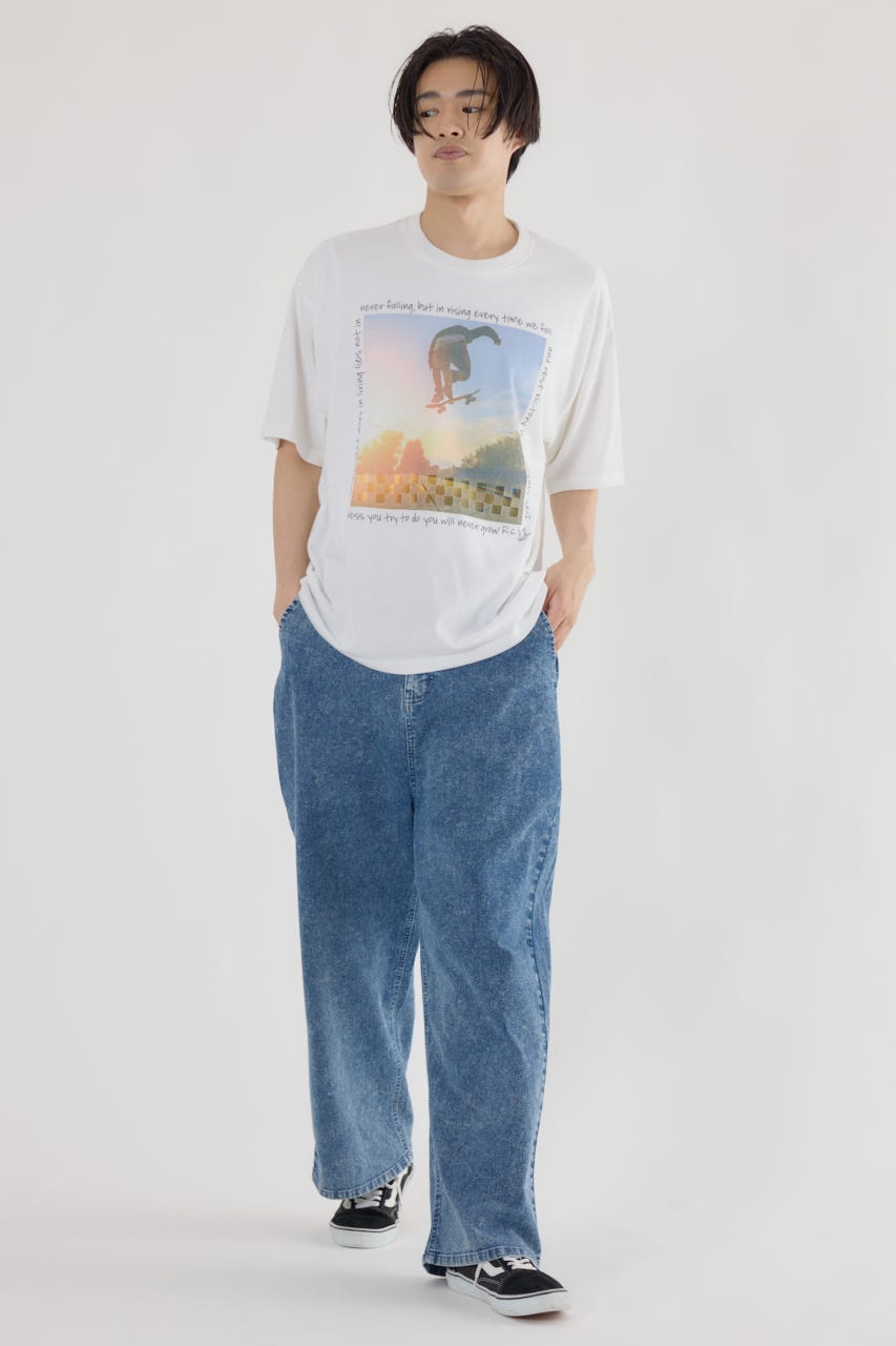 シンプルにTシャツやロングスリーブシャツなどカジュアルなスタイリングがおすすめ。