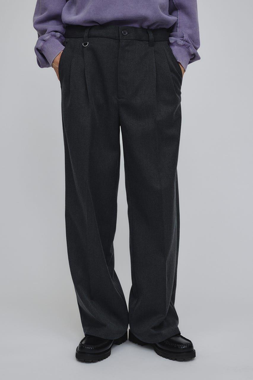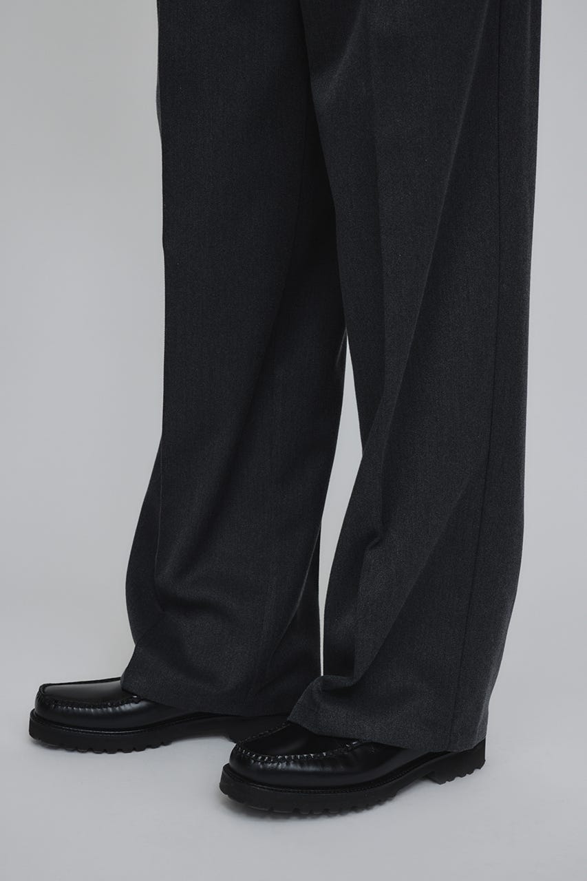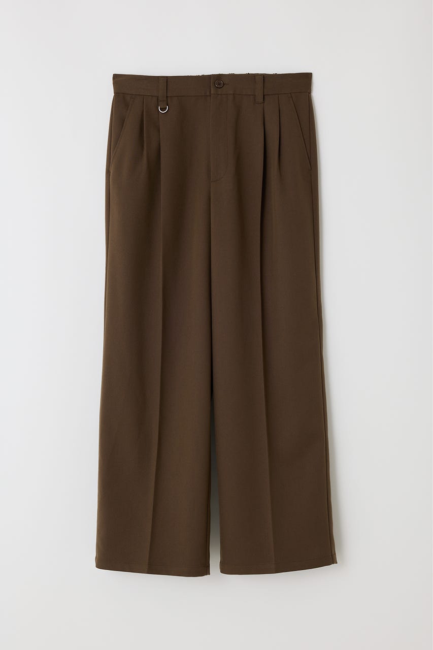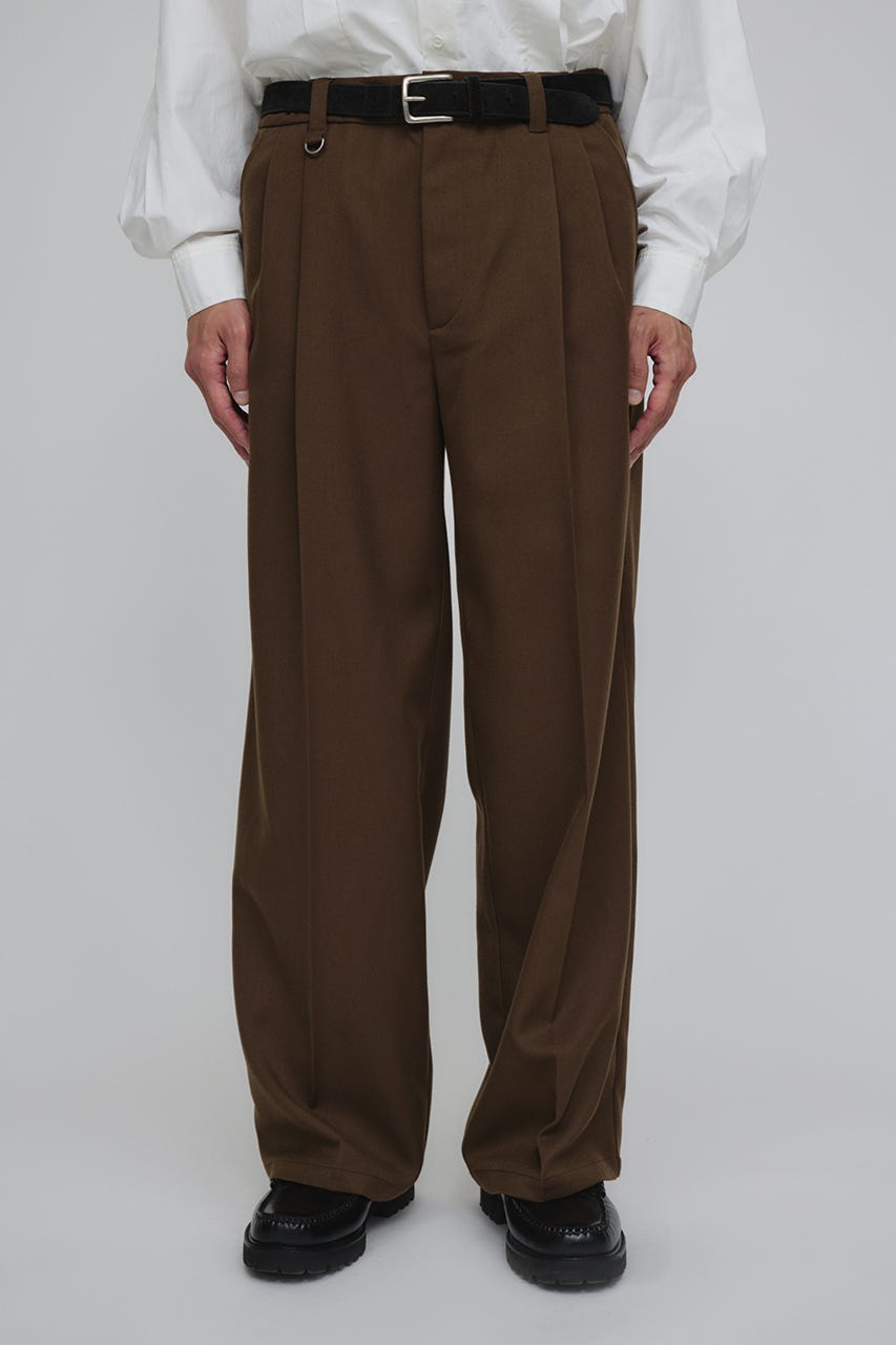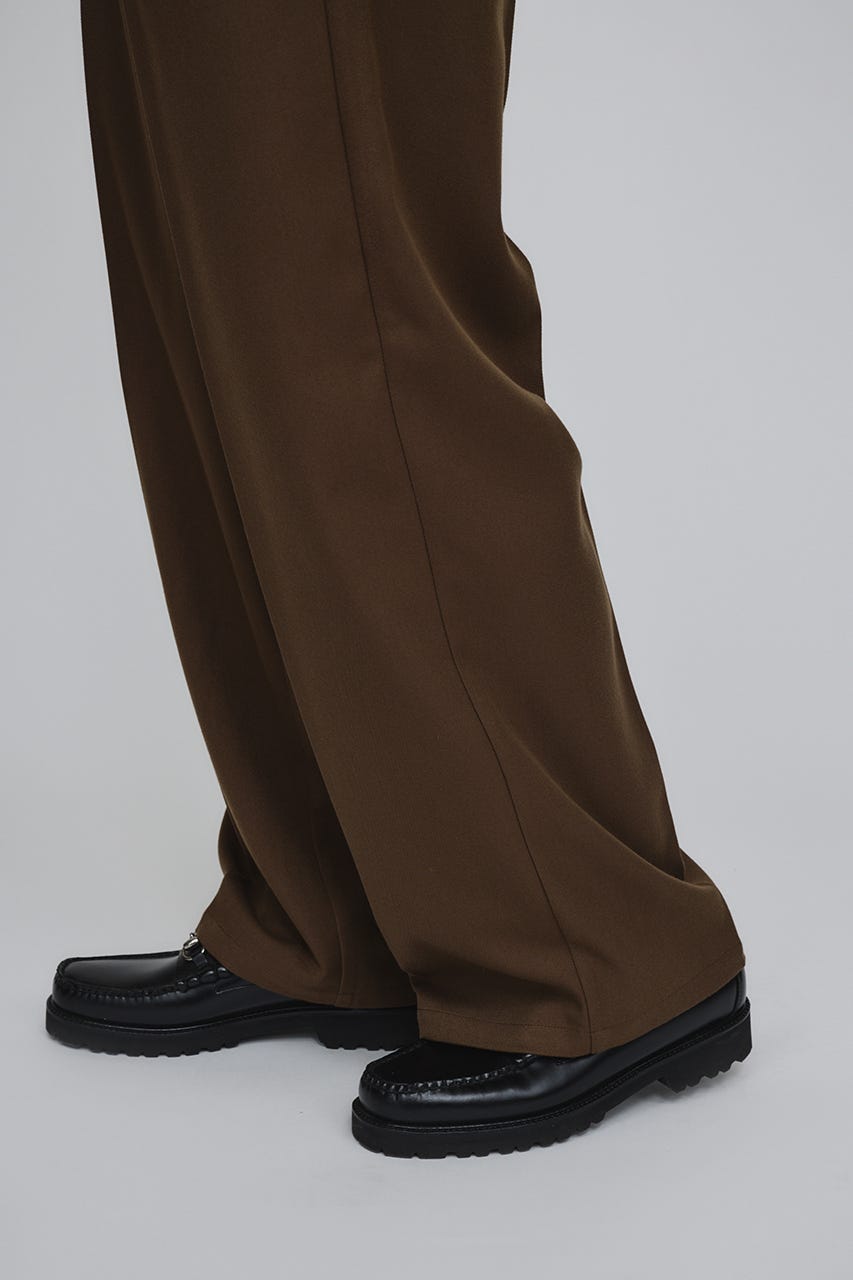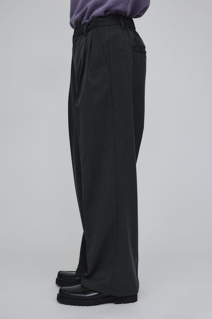 ウォーム感のあるTRツイルを使用したクリーンな表面感でしわになりにくく、落ち感のあるワイドトラウザー。