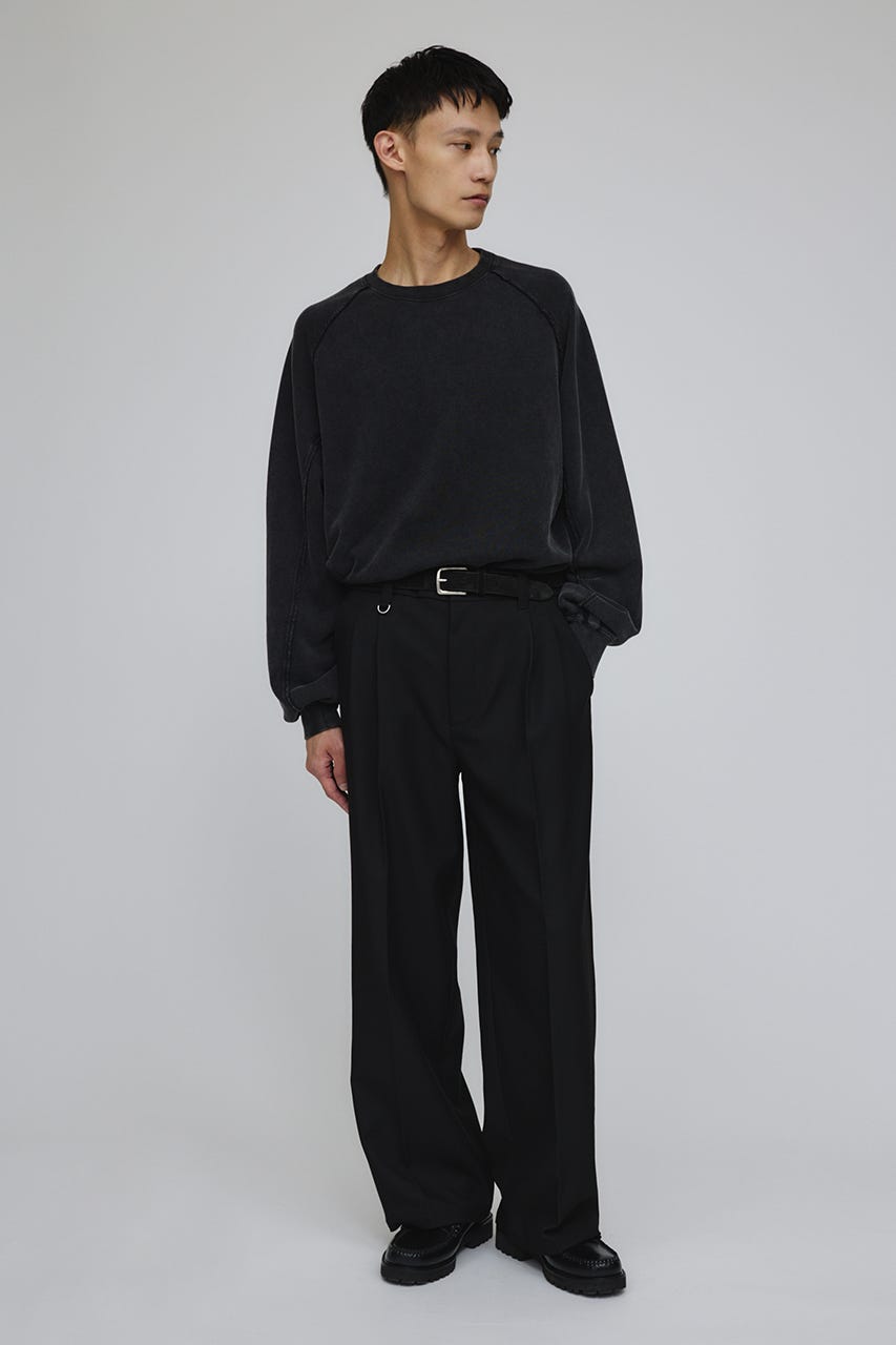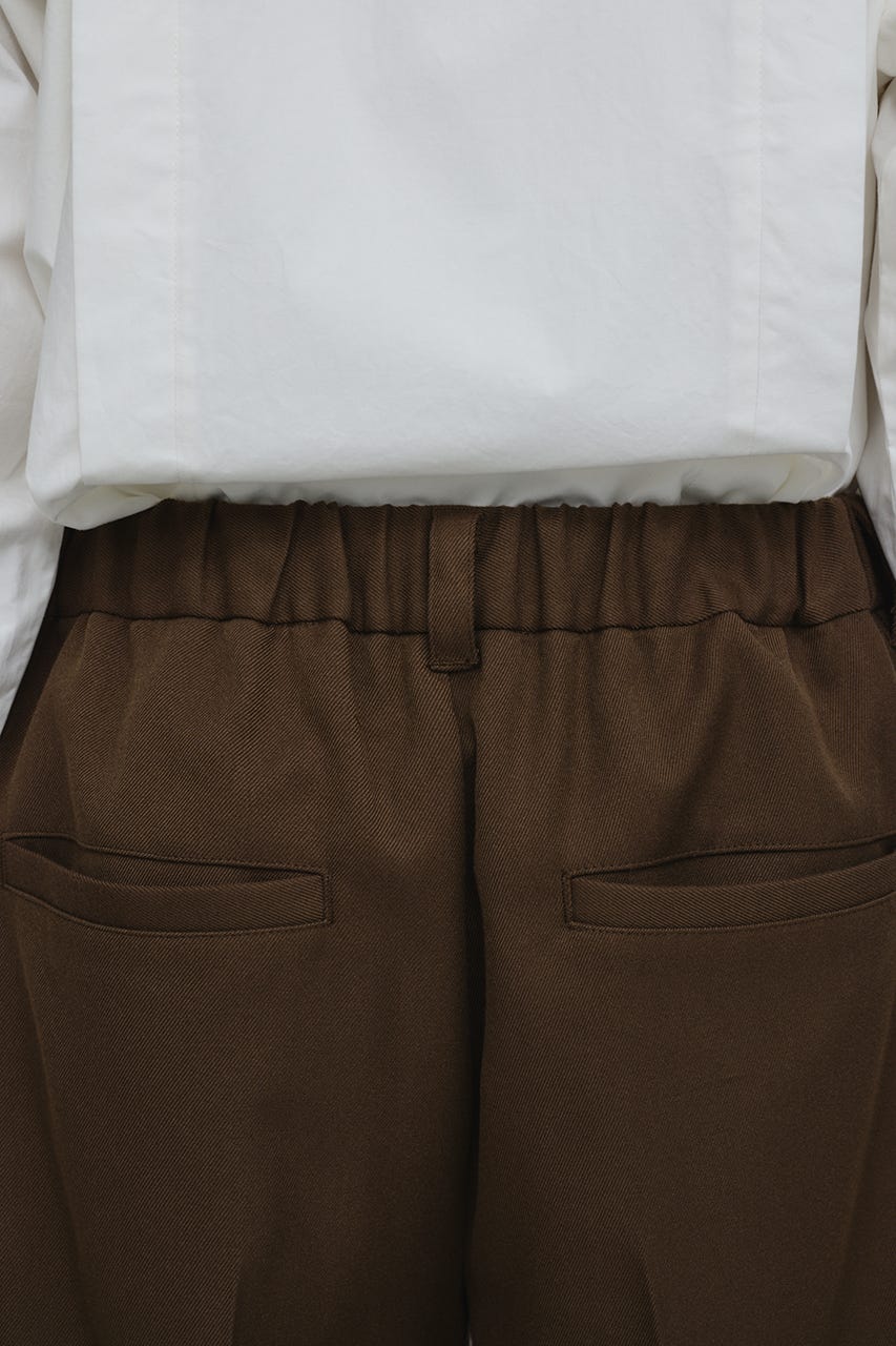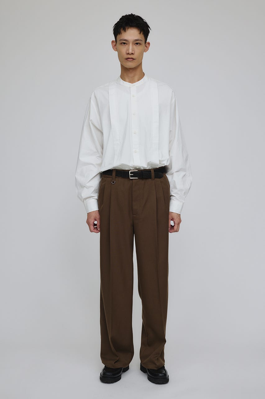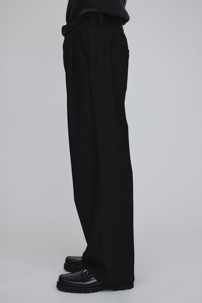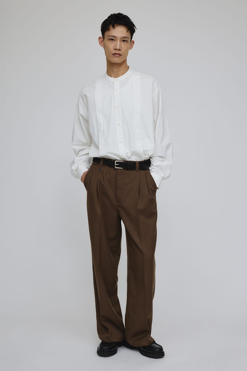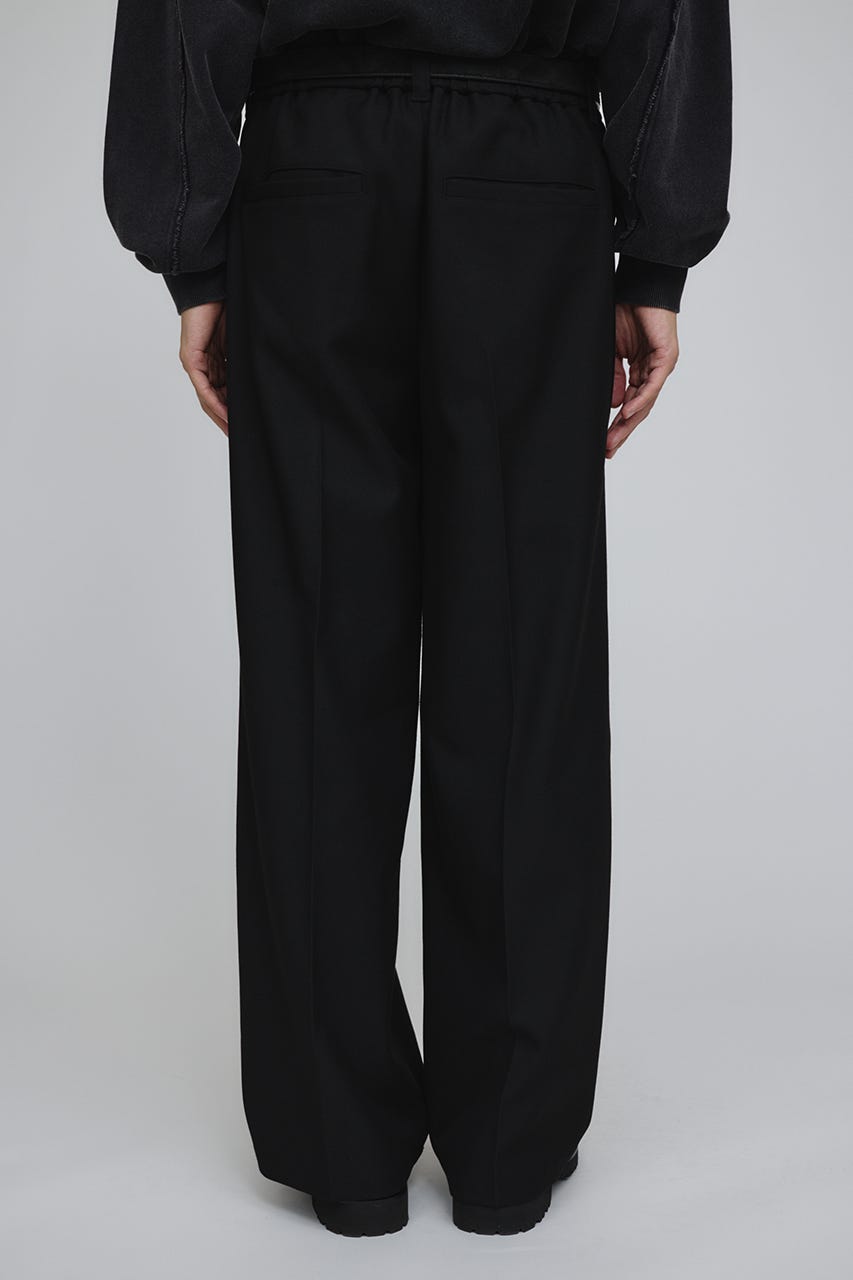 ウォーム感のあるTRツイルを使用したクリーンな表面感でしわになりにくく、落ち感のあるワイドトラウザー。