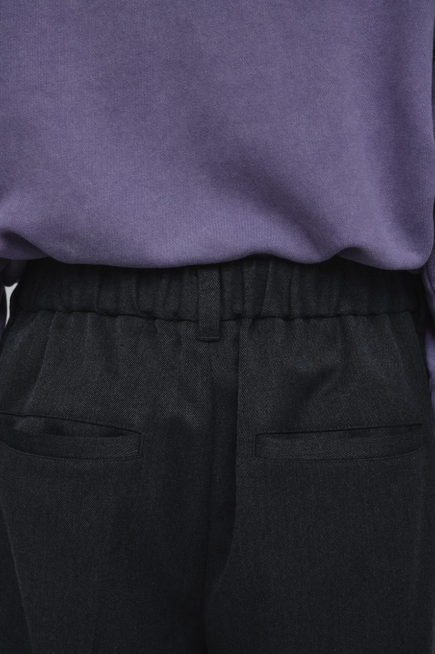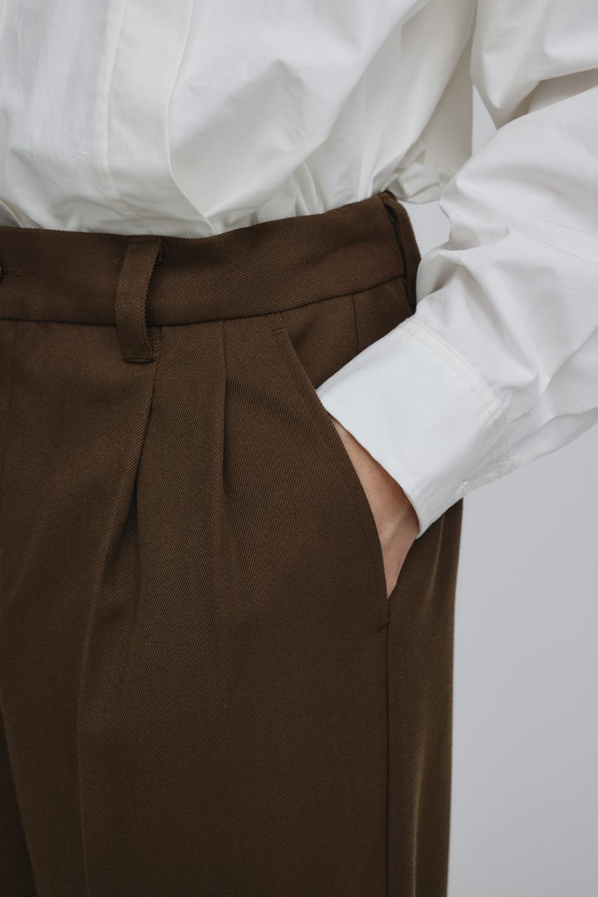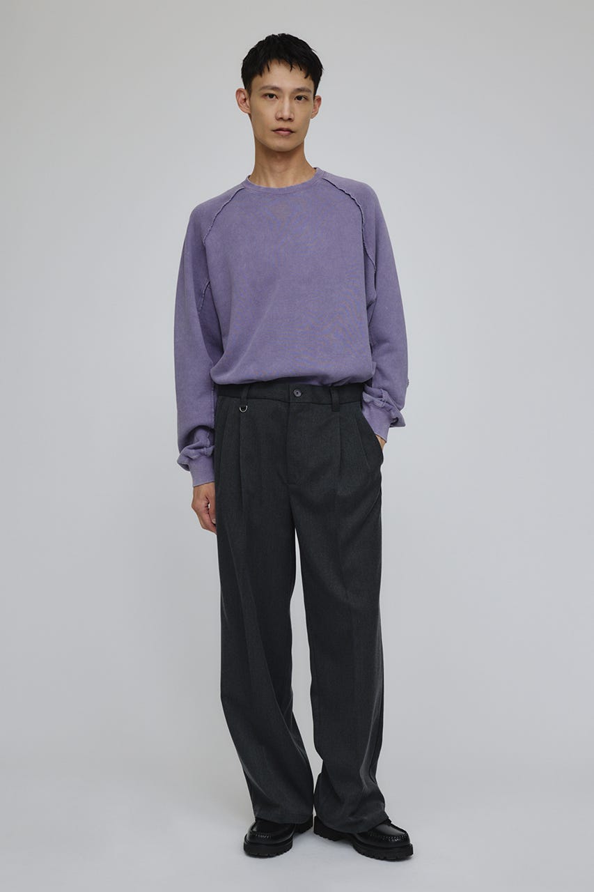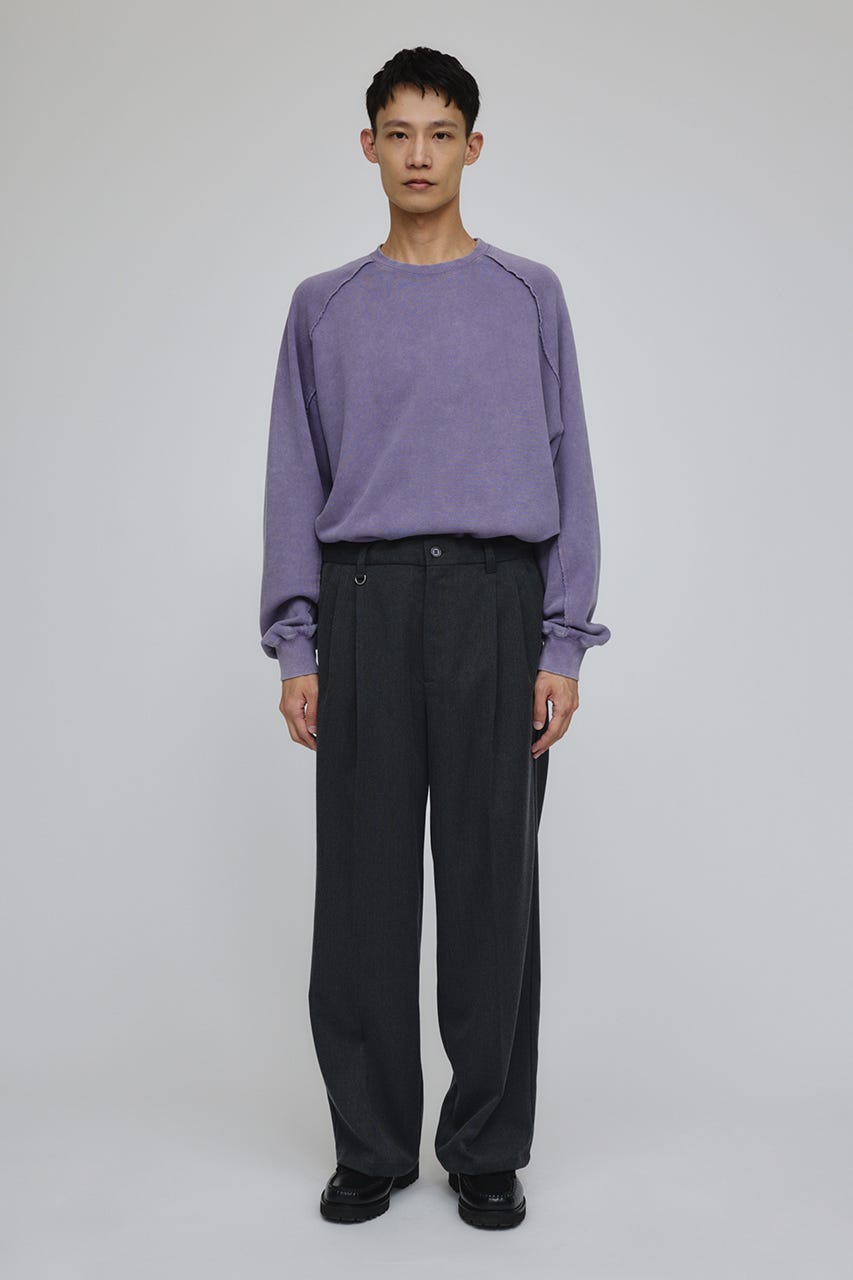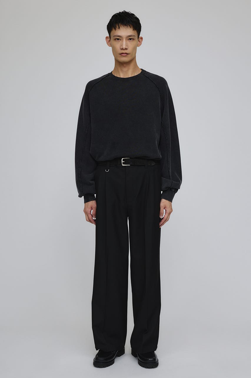 ウォーム感のあるTRツイルを使用したクリーンな表面感でしわになりにくく、落ち感のあるワイドトラウザー。