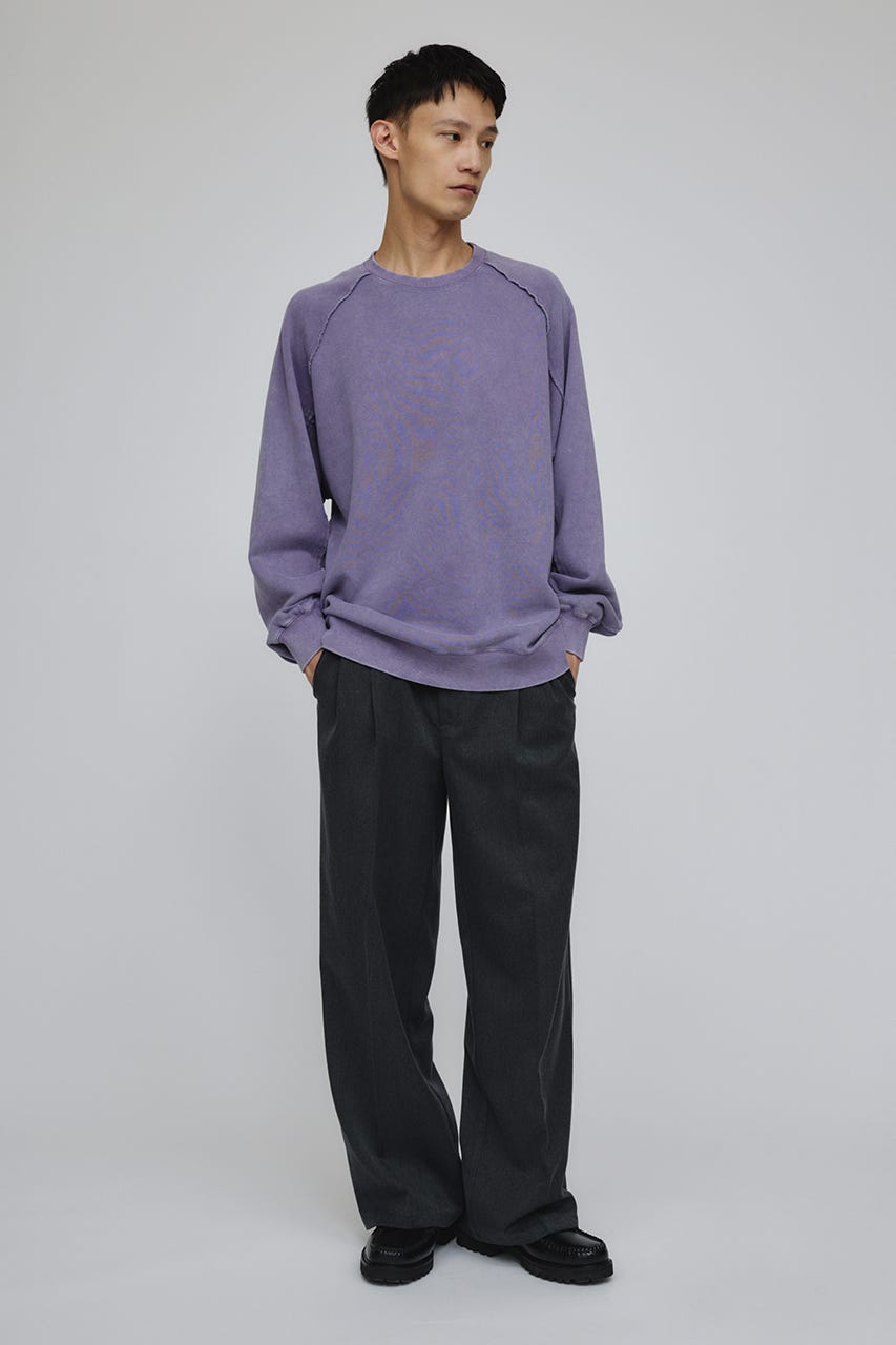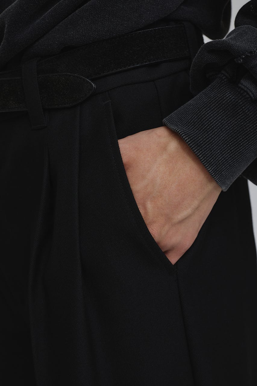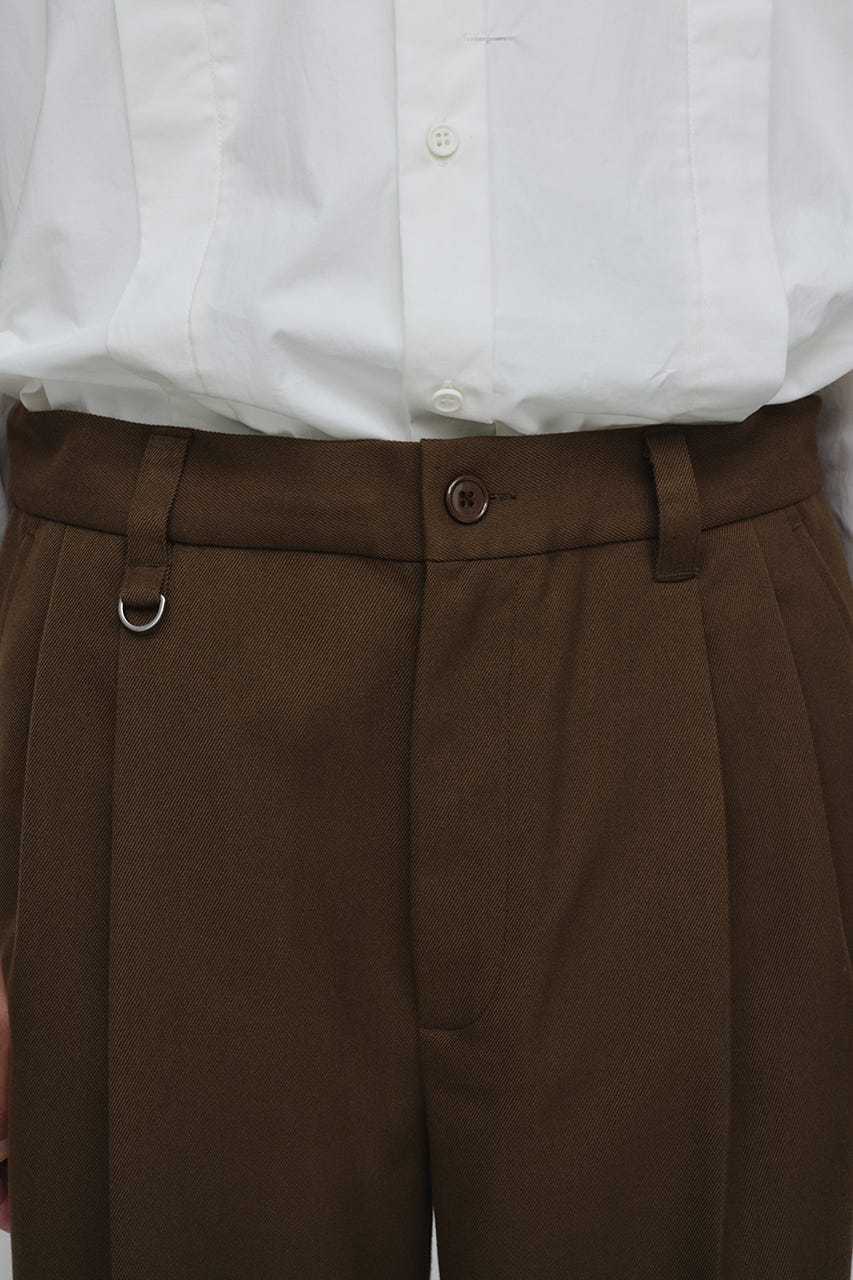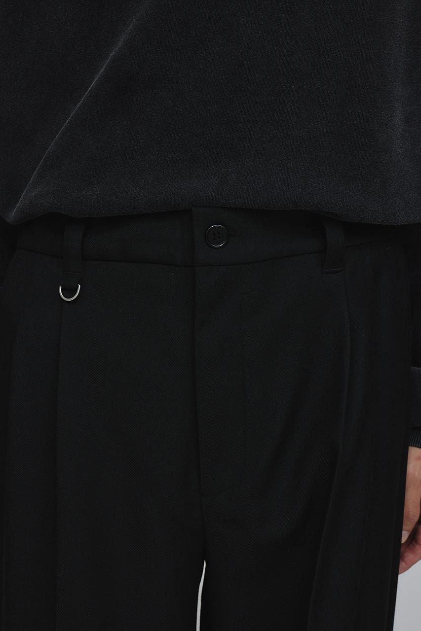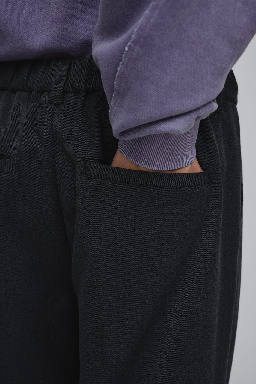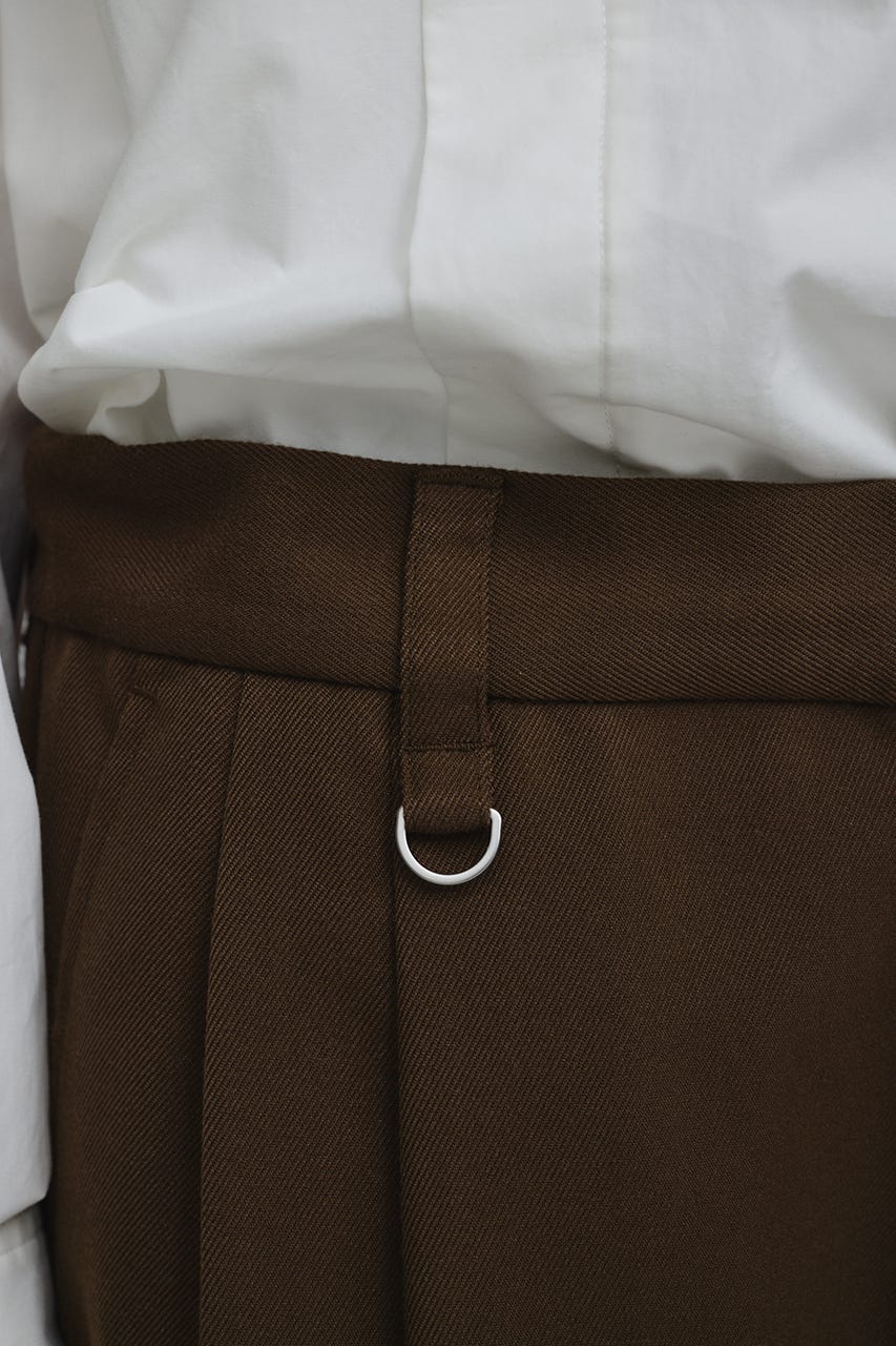 ウォーム感のあるTRツイルを使用したクリーンな表面感でしわになりにくく、落ち感のあるワイドトラウザー。