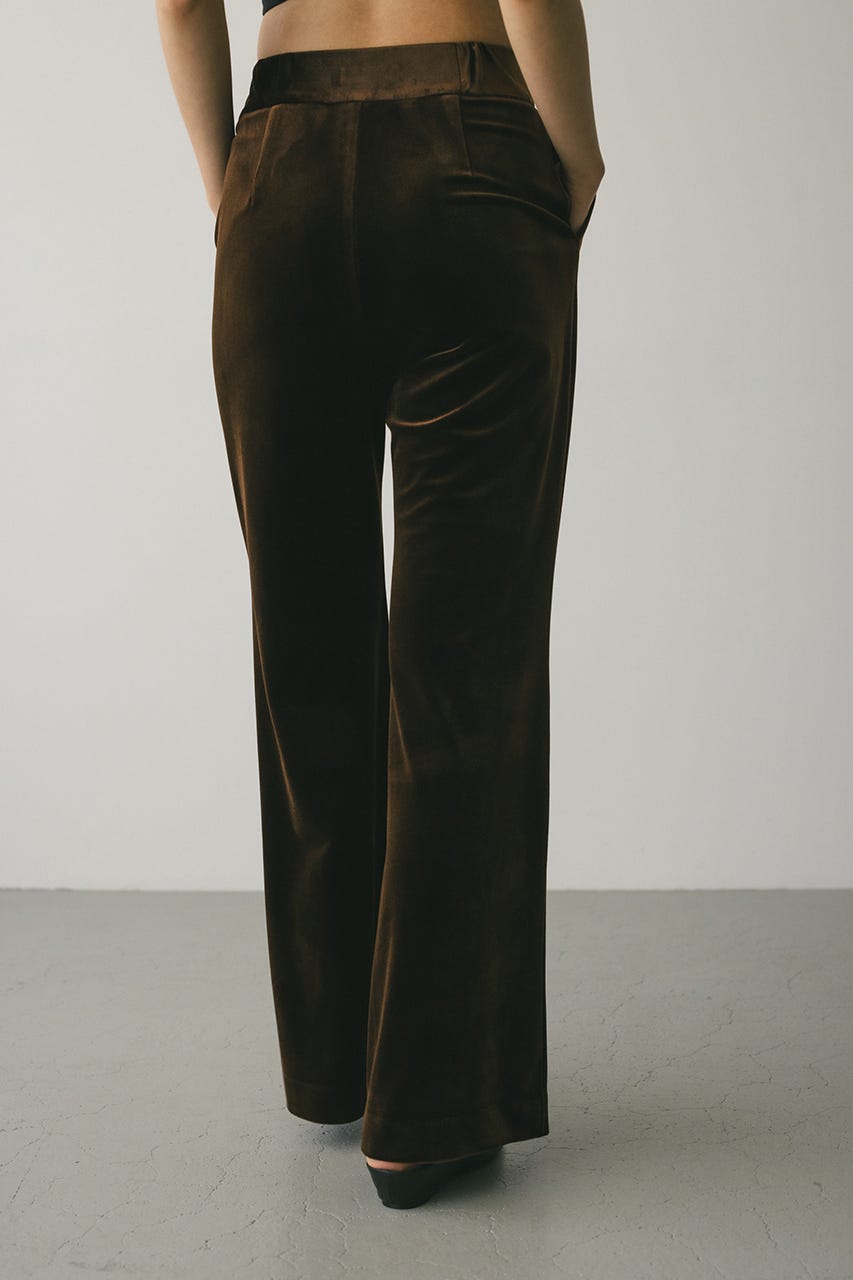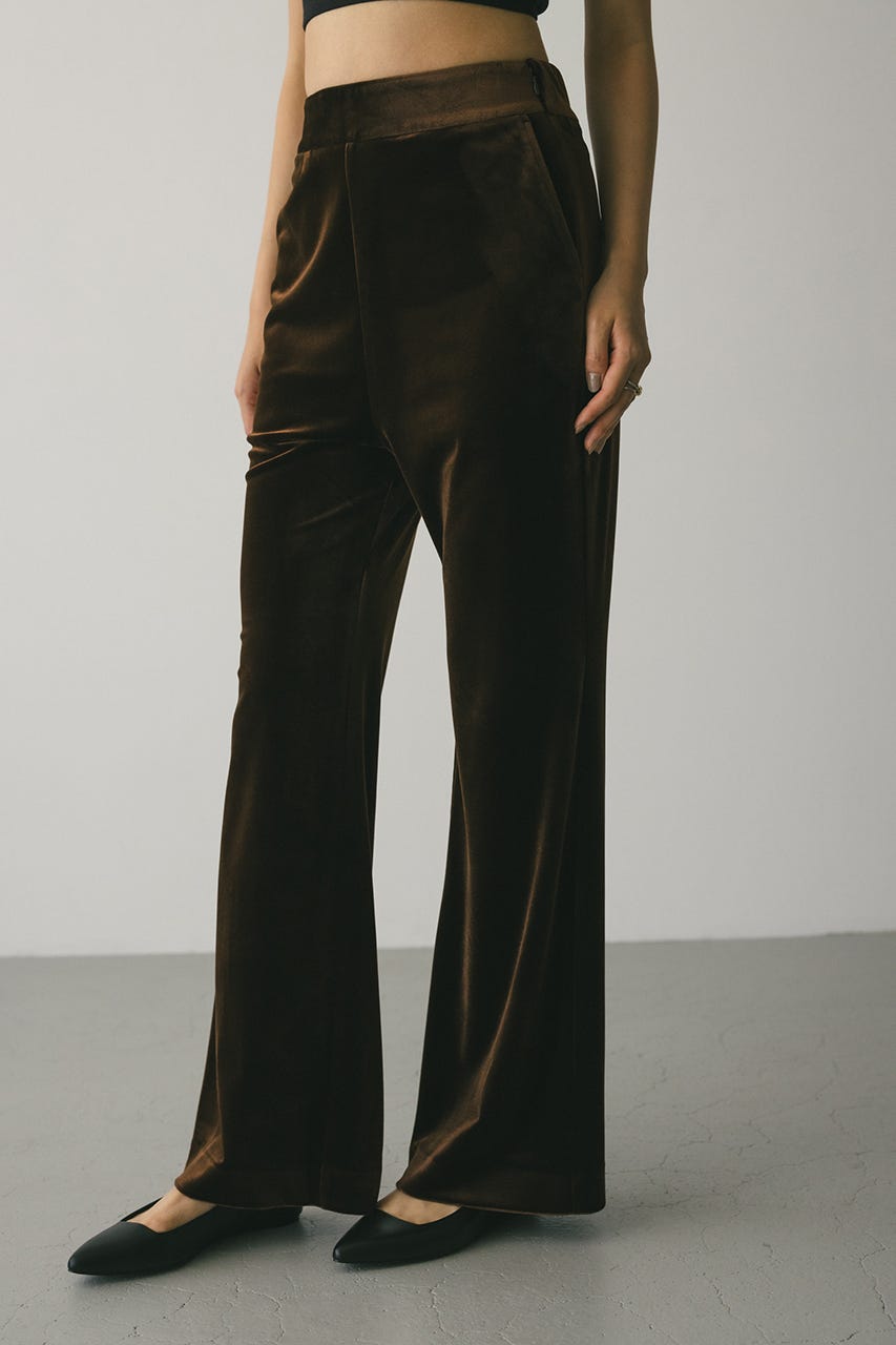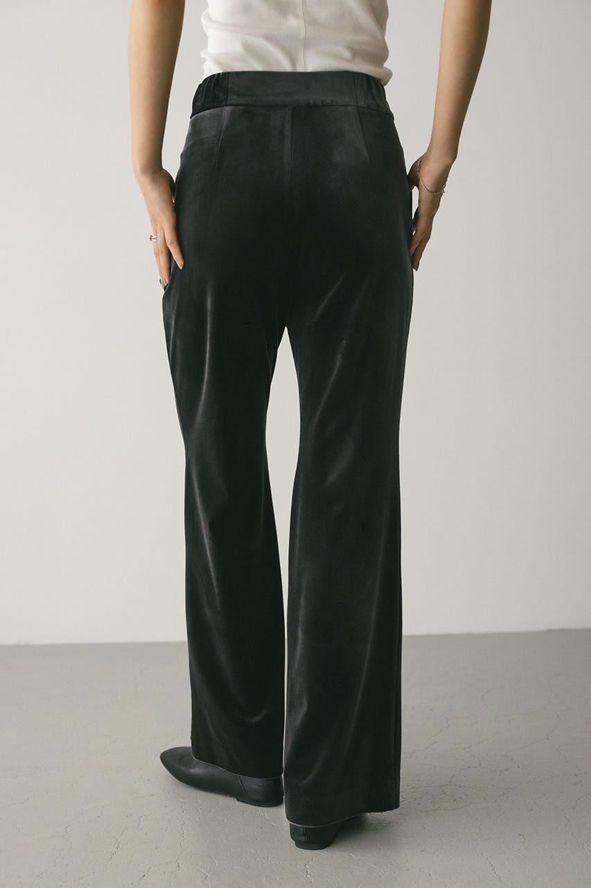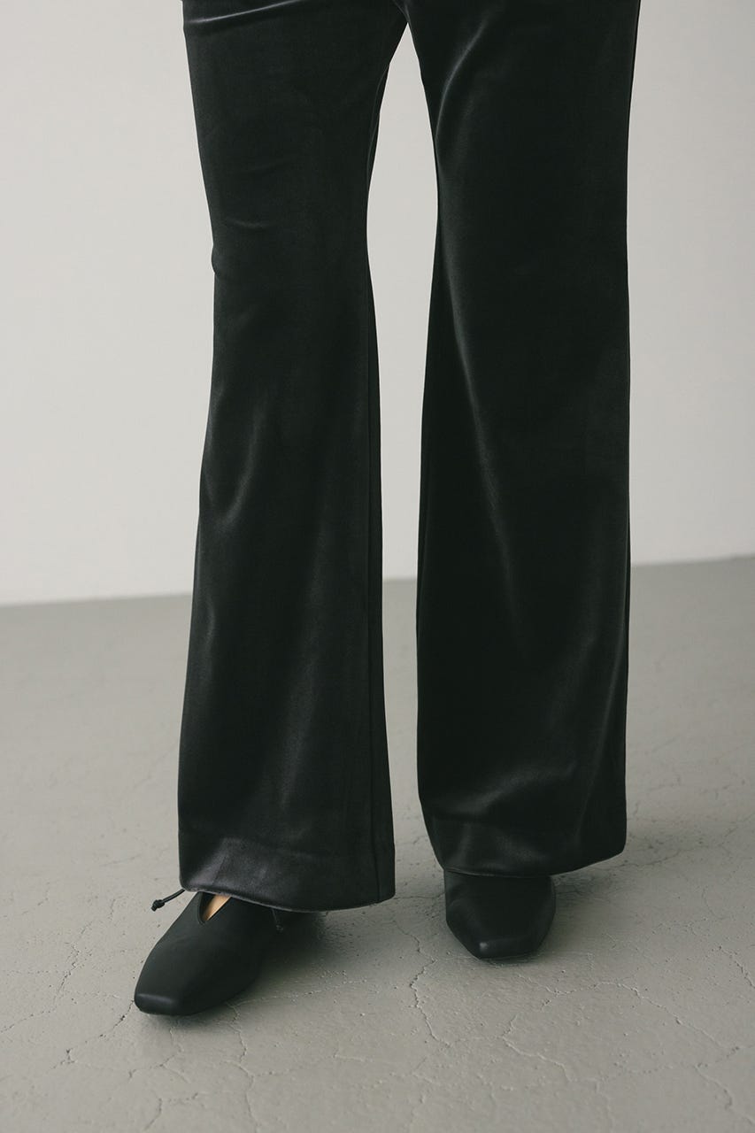 滑らかな肌触りのベロア生地を使用したフレアパンツ。