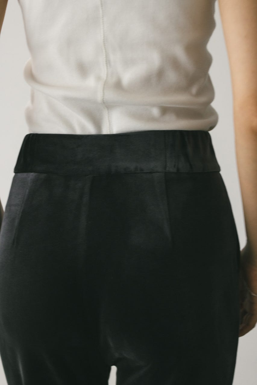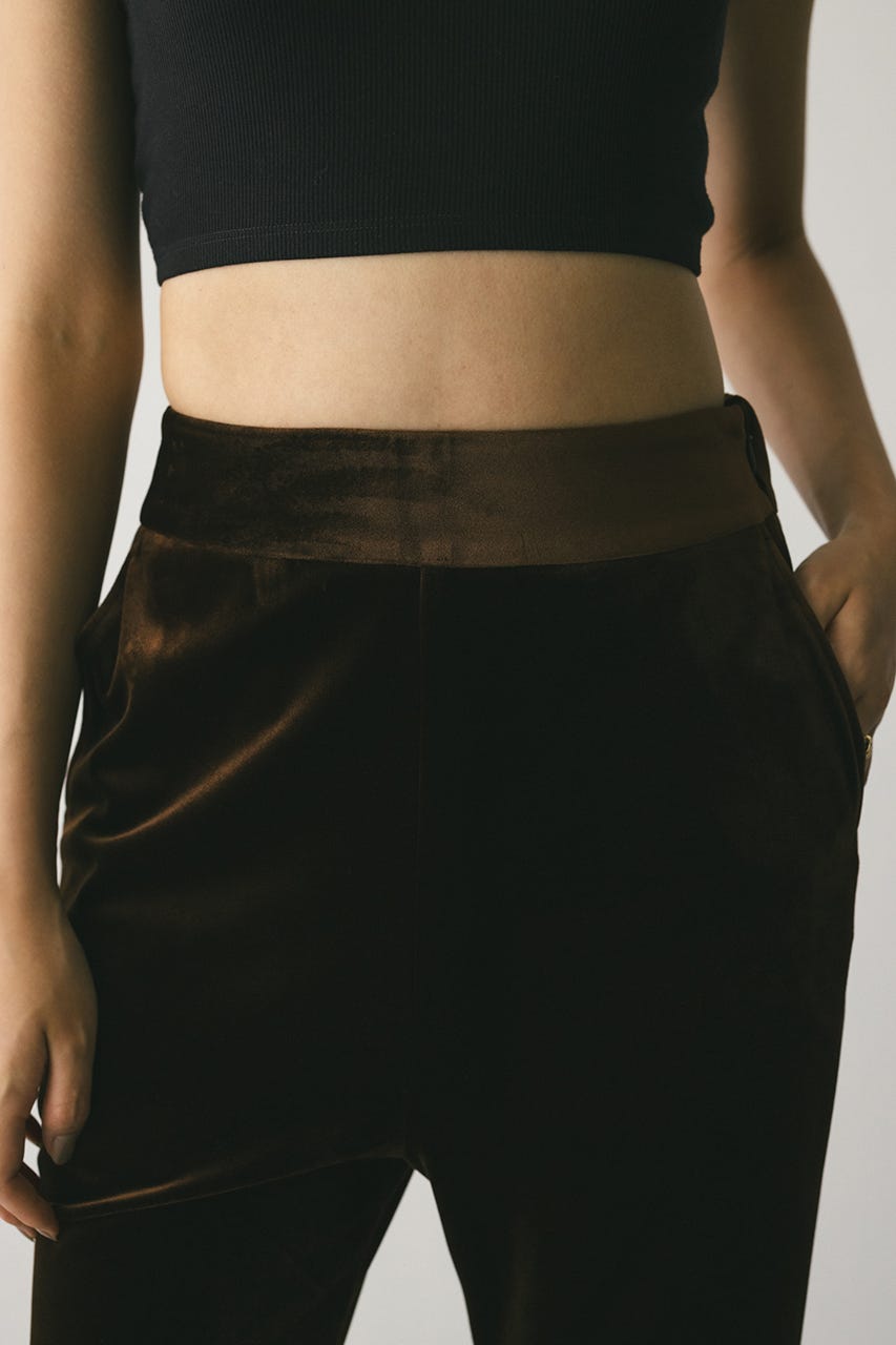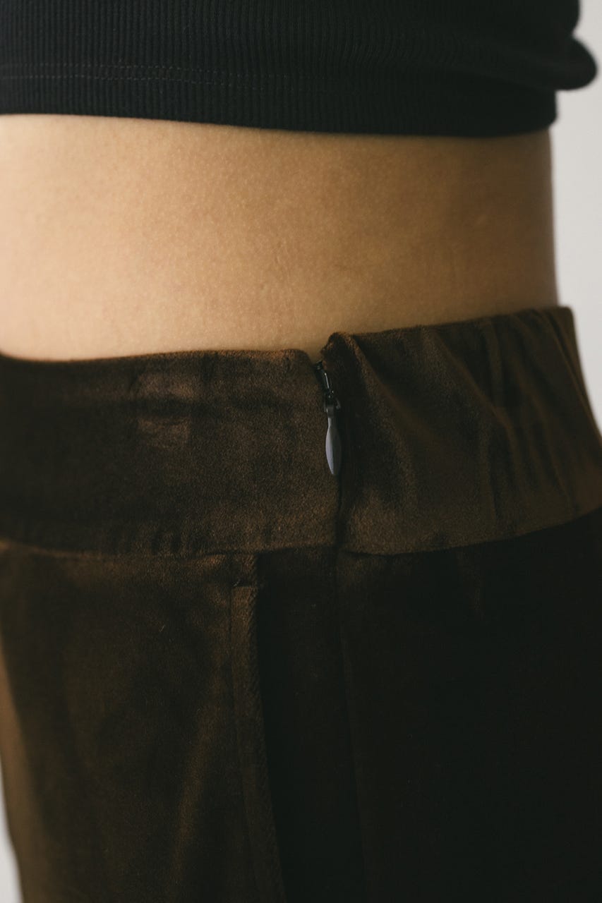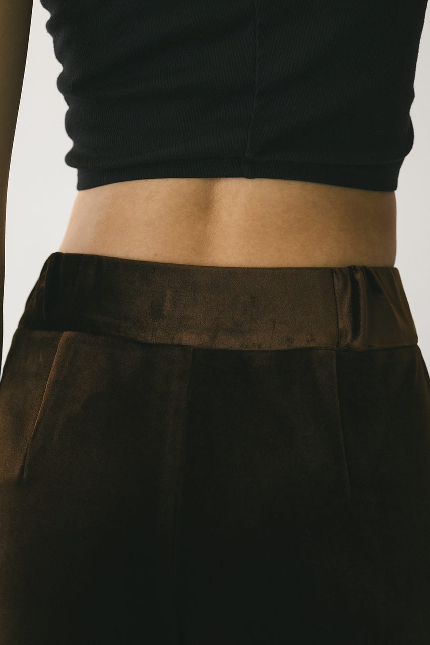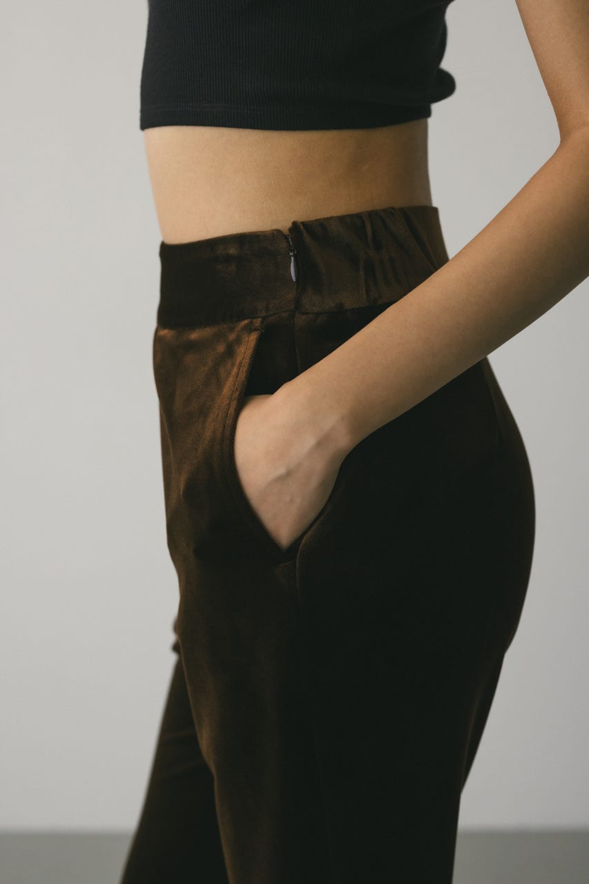 滑らかな肌触りのベロア生地を使用したフレアパンツ。