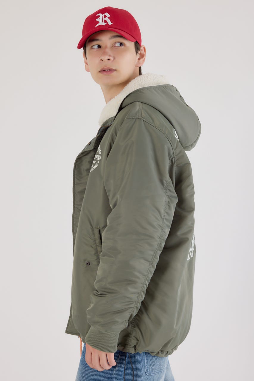 USフライトジャケットをベースにアレンジされたデザインのフーディージャケット。