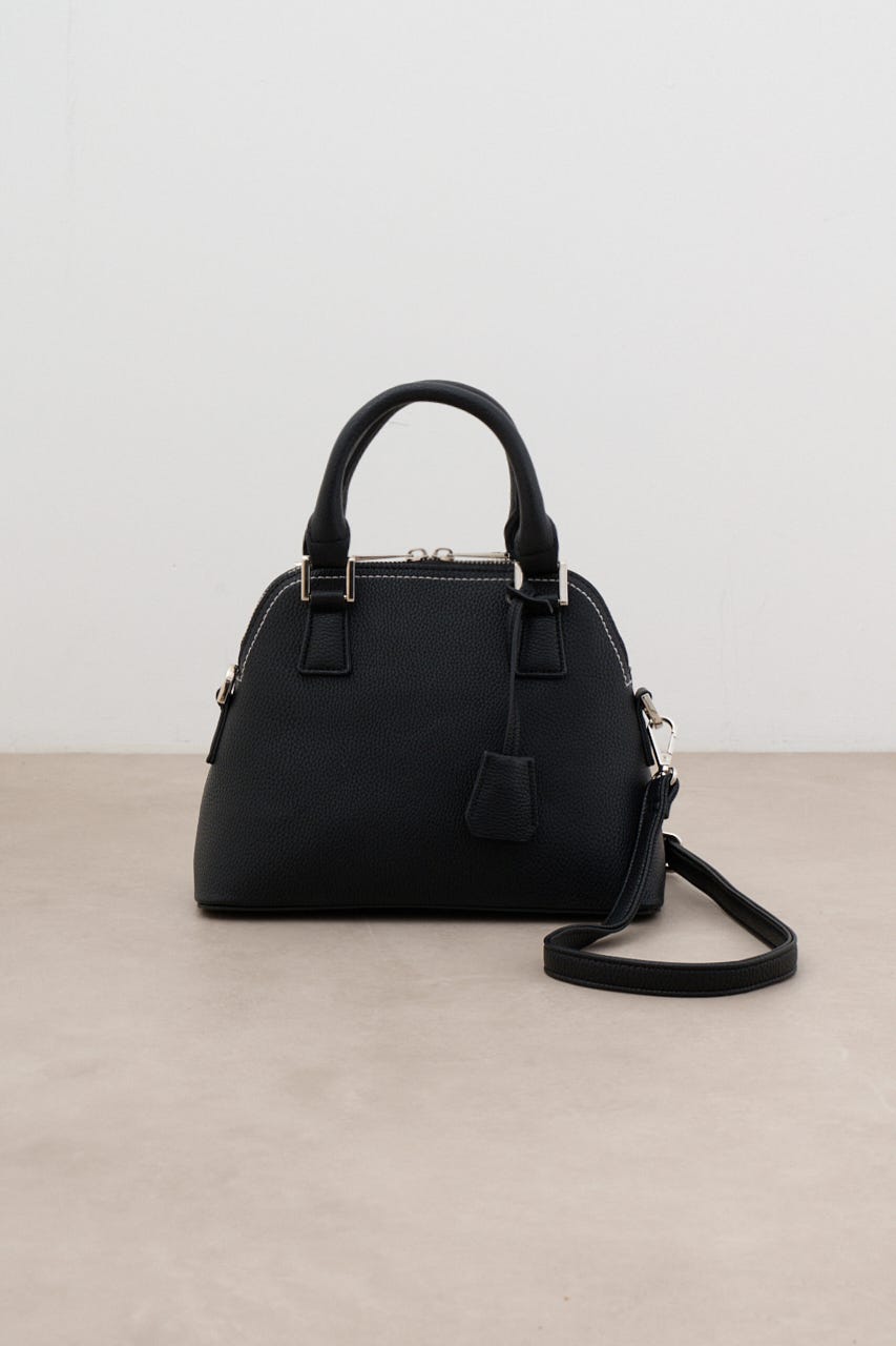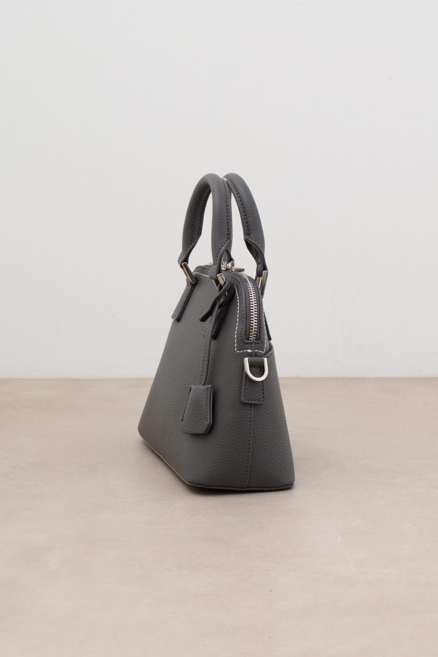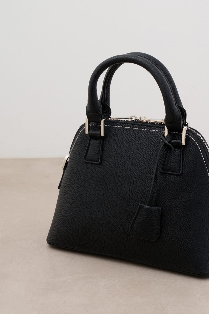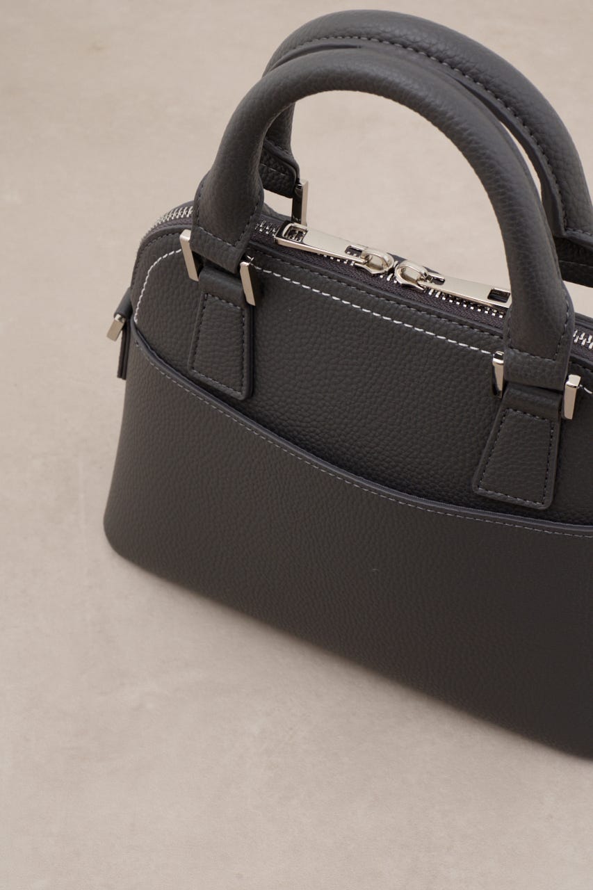 しぼ感のあるレザー調素材で高見えするハンドバッグ。