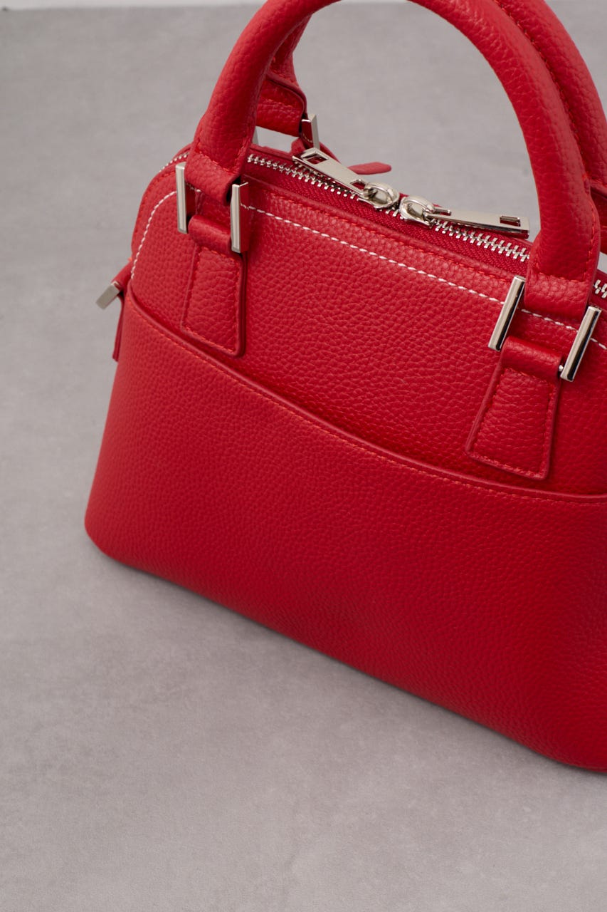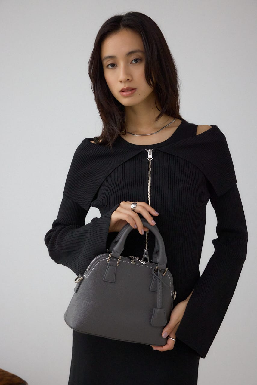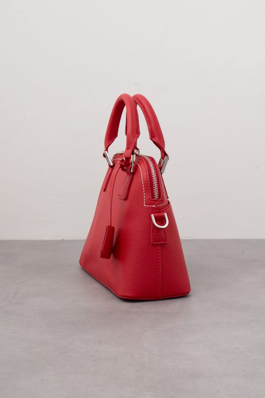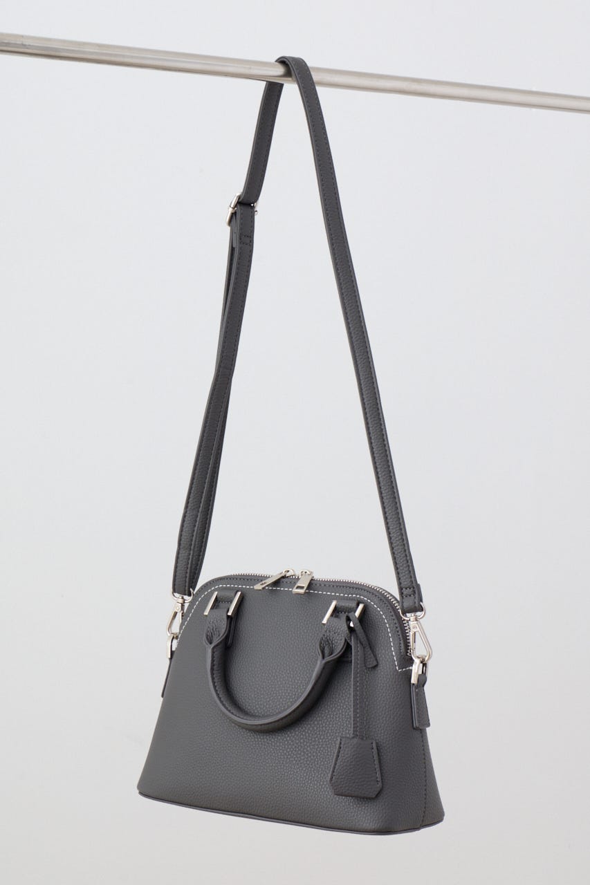 しぼ感のあるレザー調素材で高見えするハンドバッグ。