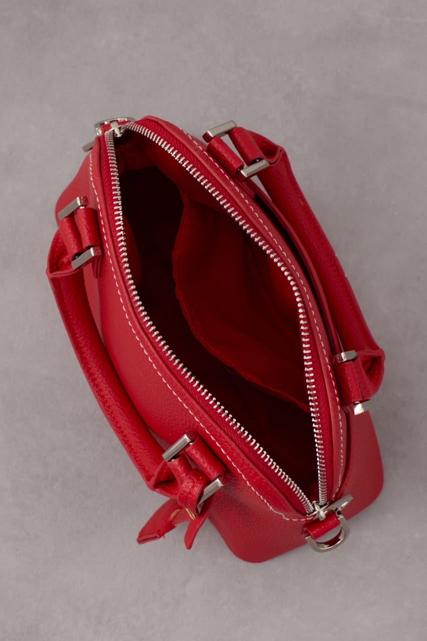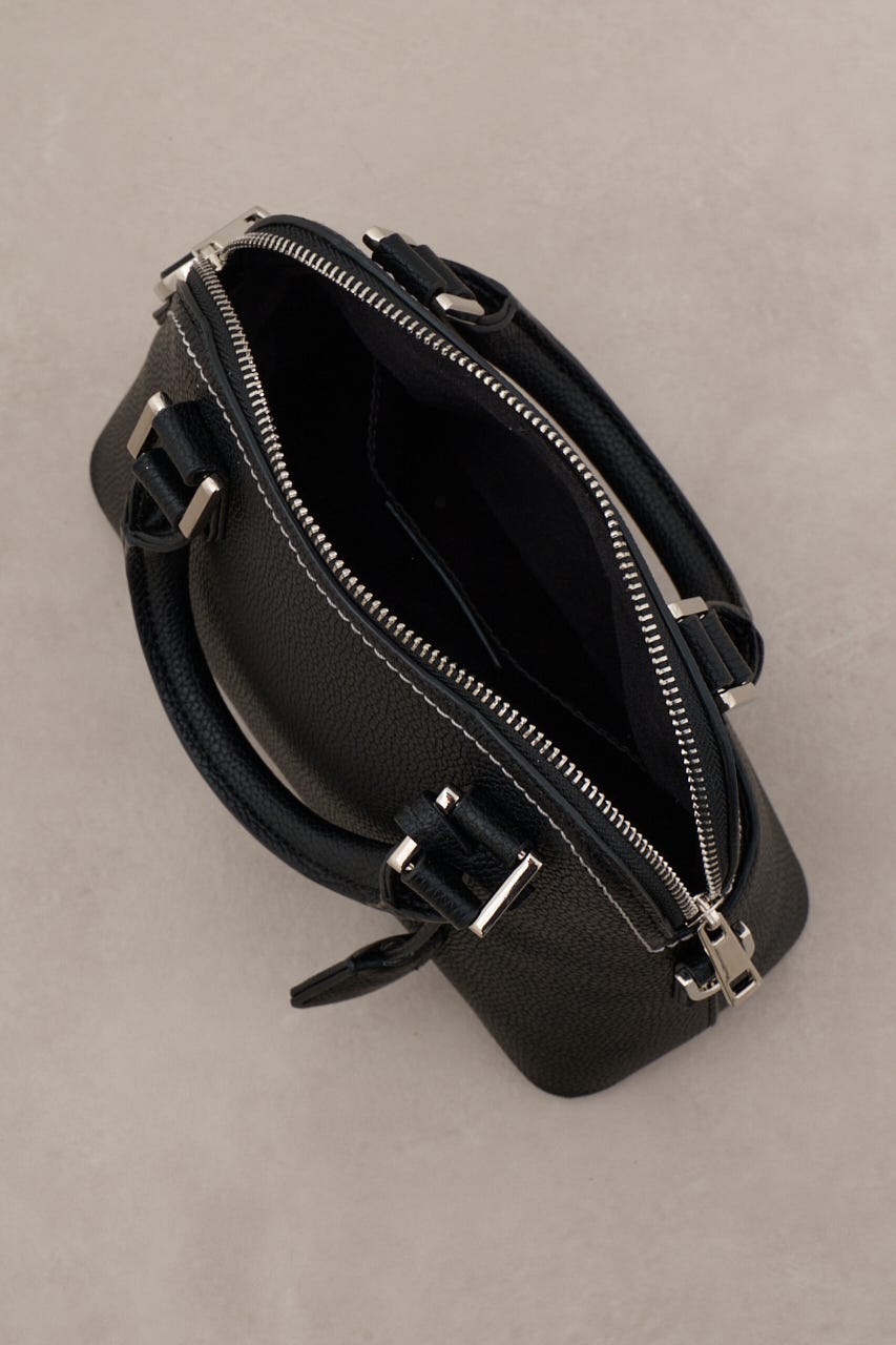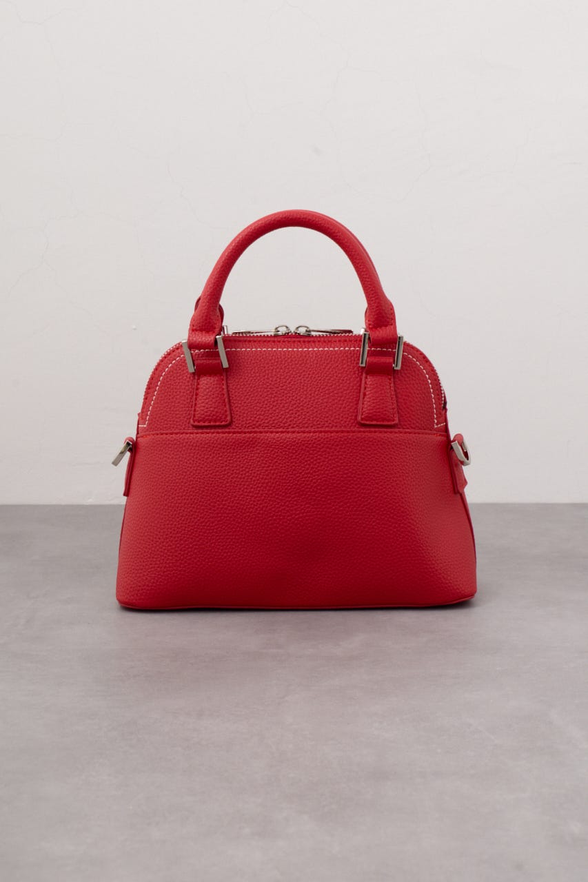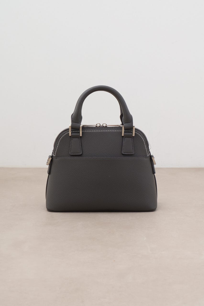 しぼ感のあるレザー調素材で高見えするハンドバッグ。
