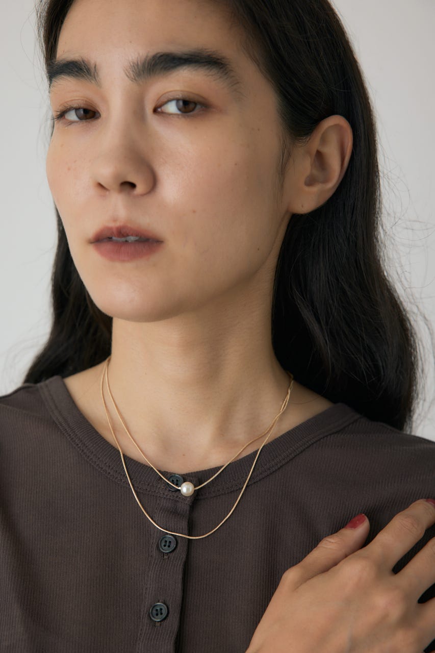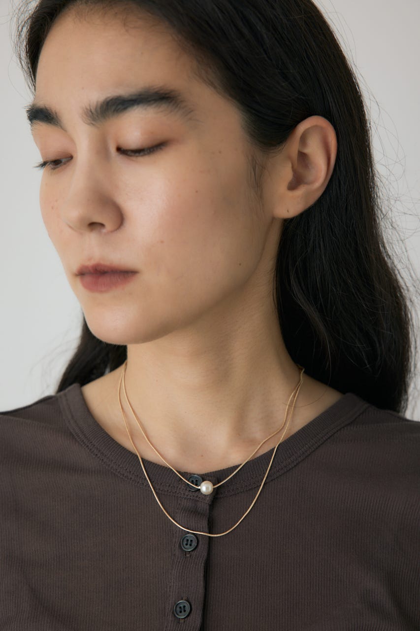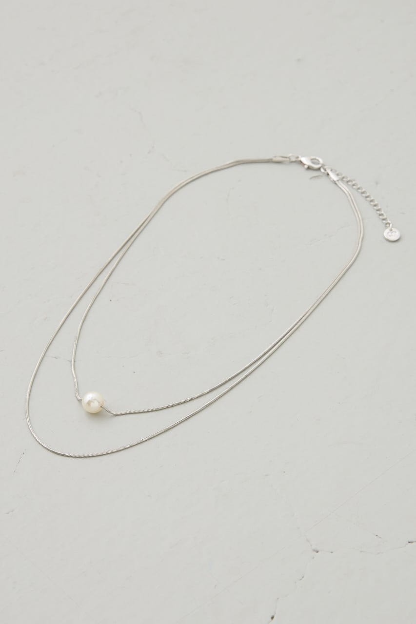 華奢な2連チェーンに1粒だけパールのついたネックレスになります。