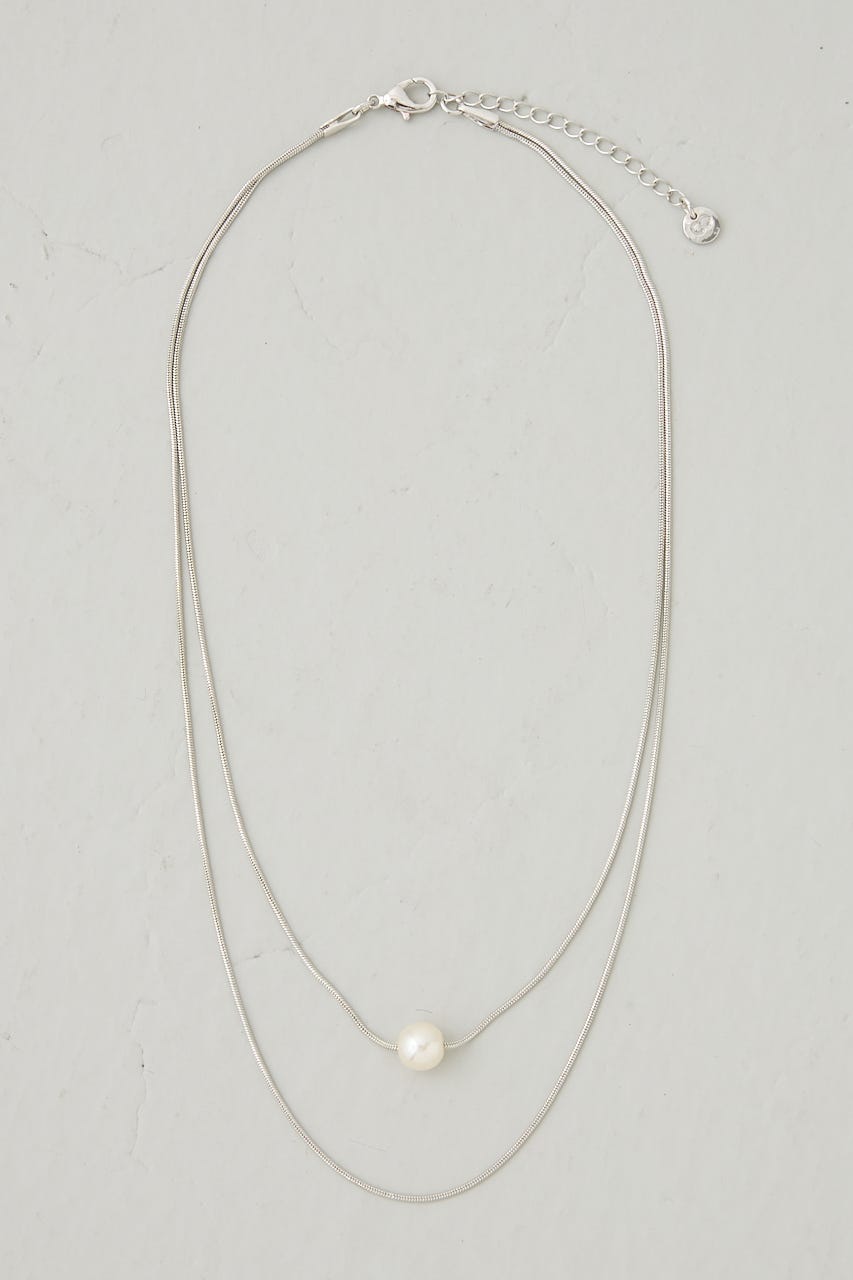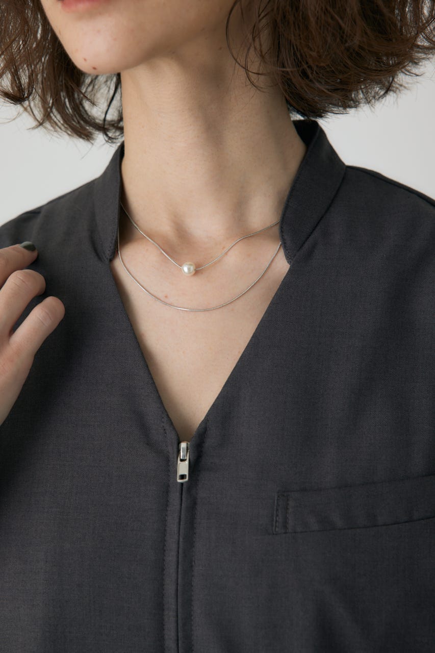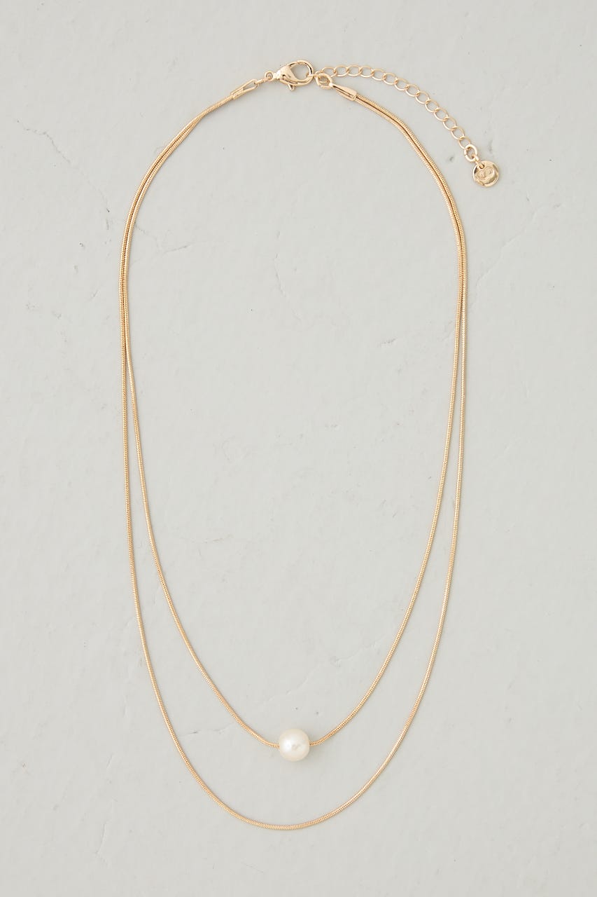 華奢な2連チェーンに1粒だけパールのついたネックレスになります。