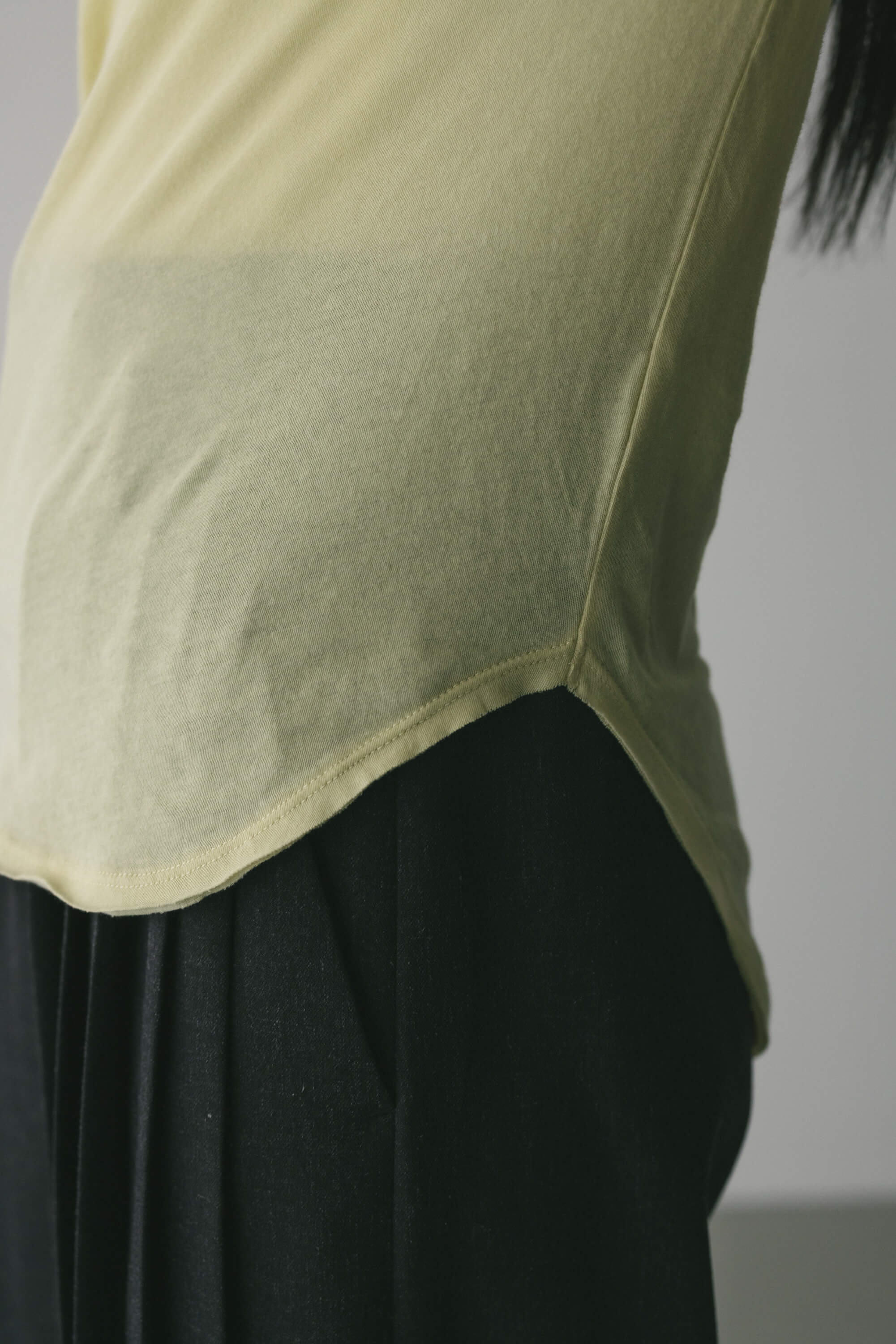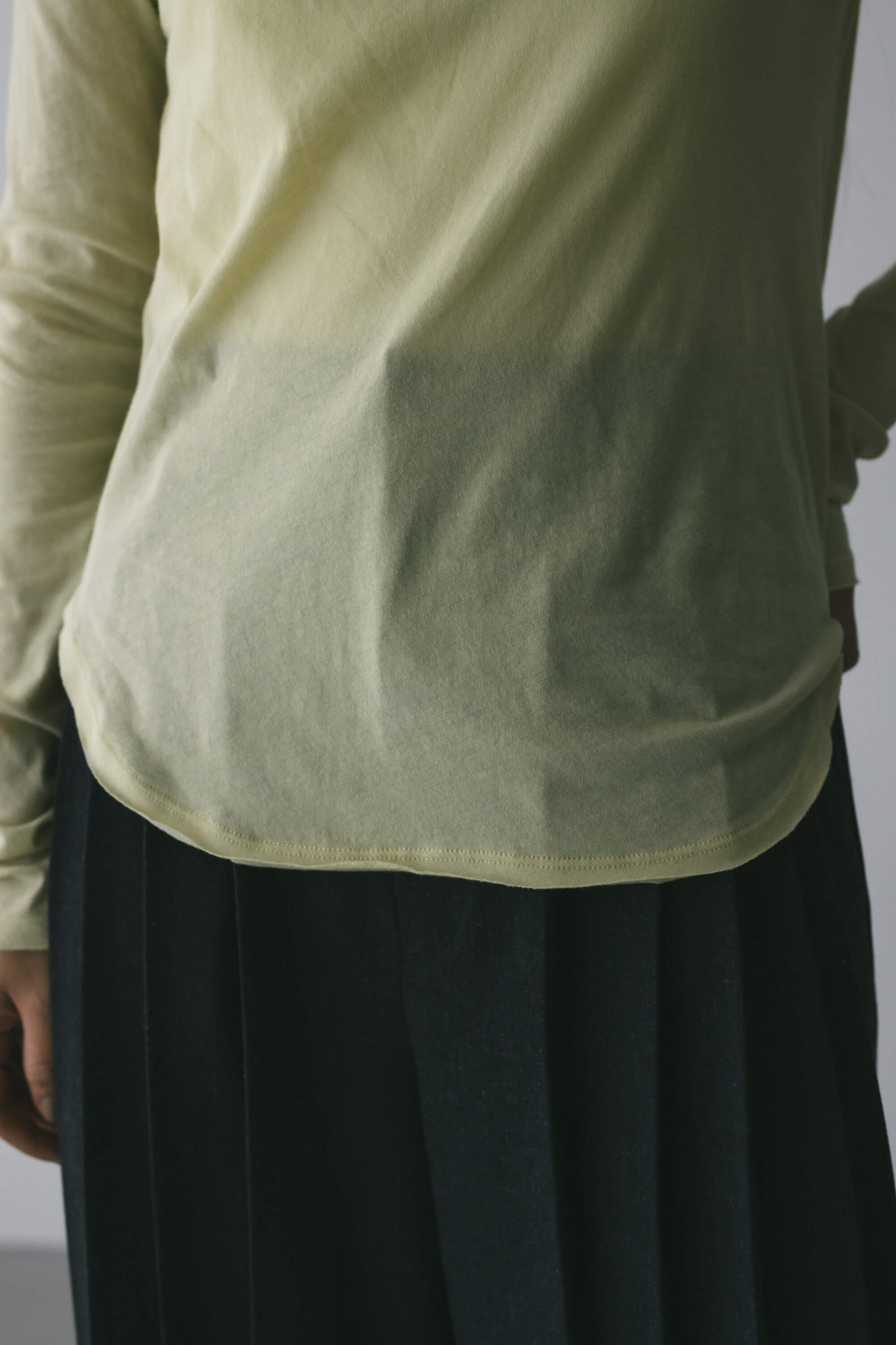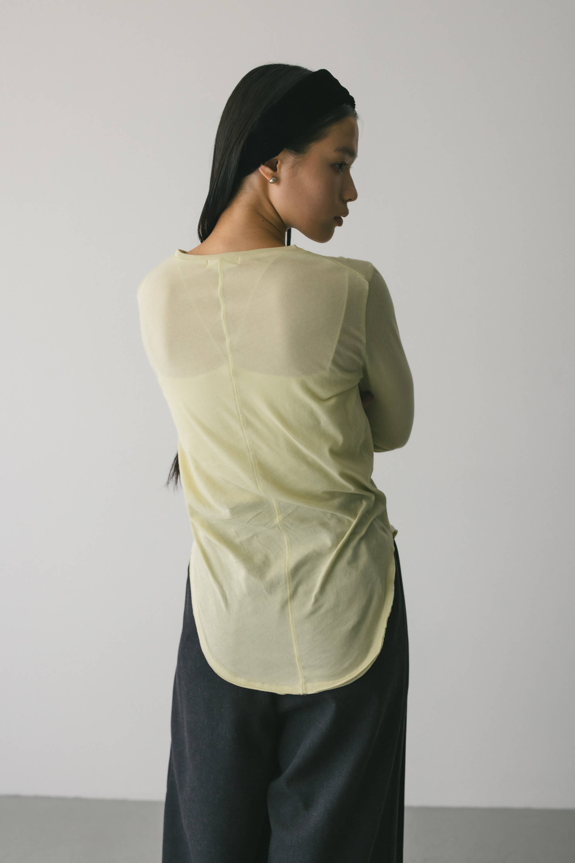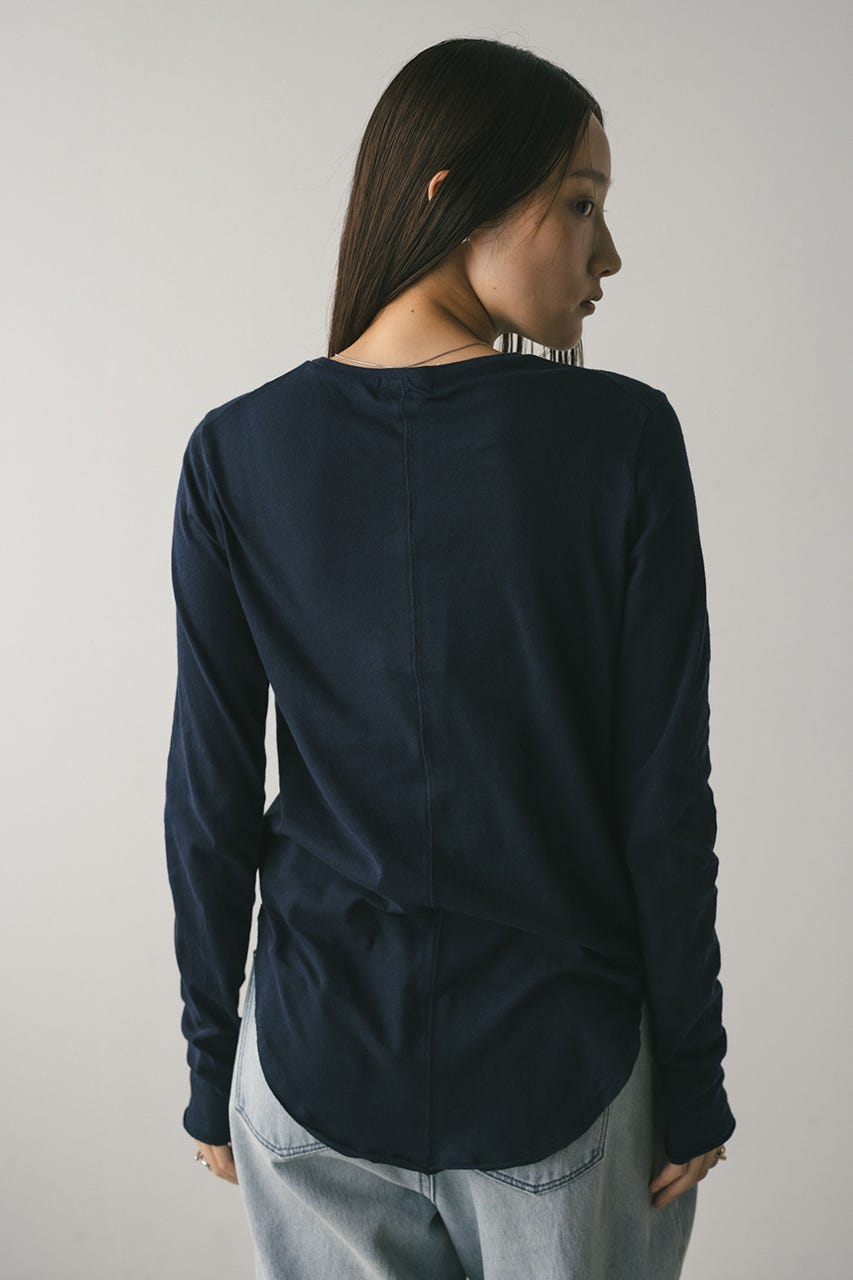 動きのあるヘムカーブラインとバックシームデザインがかわいいカットソー。