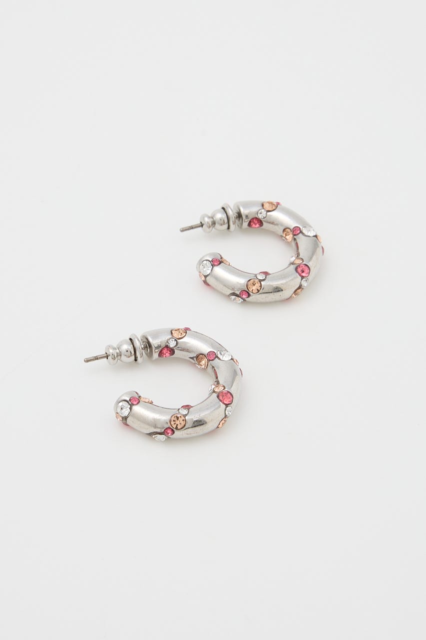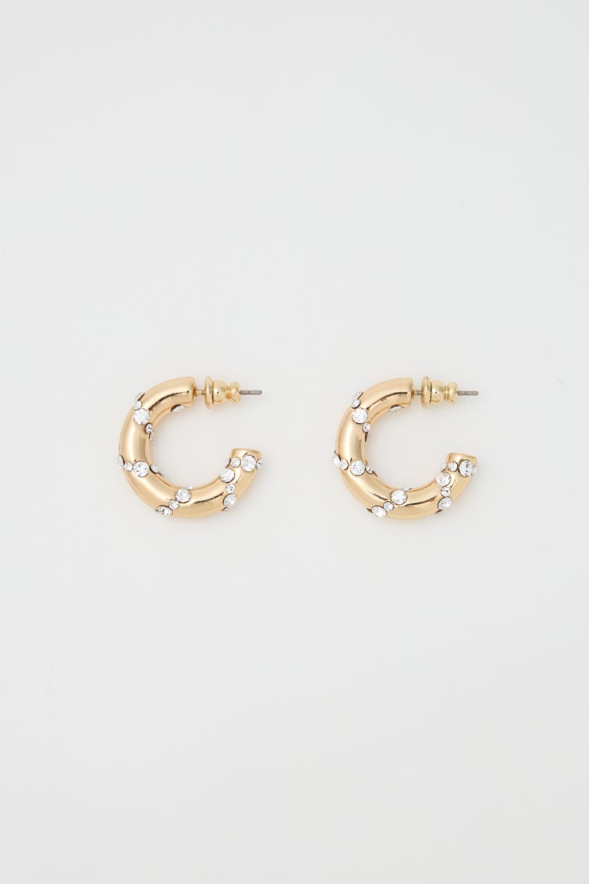 ■POINT/DETAIL:フープの周りに大小のビジューをあしらった、コーディネートのワンポイントになるピアス。