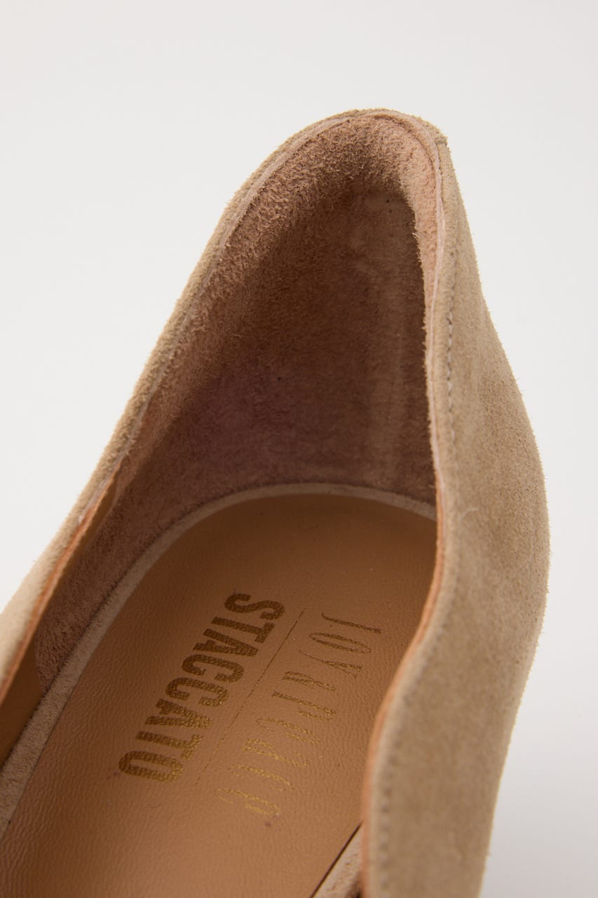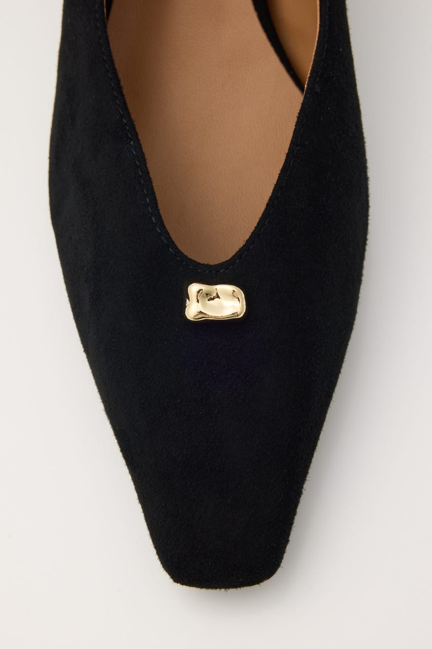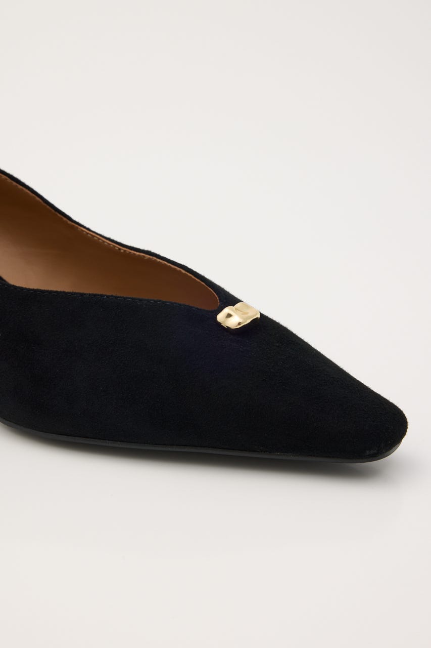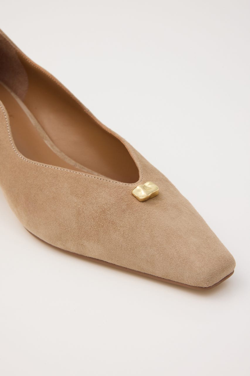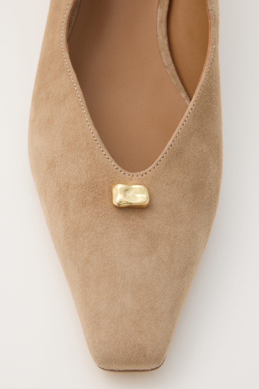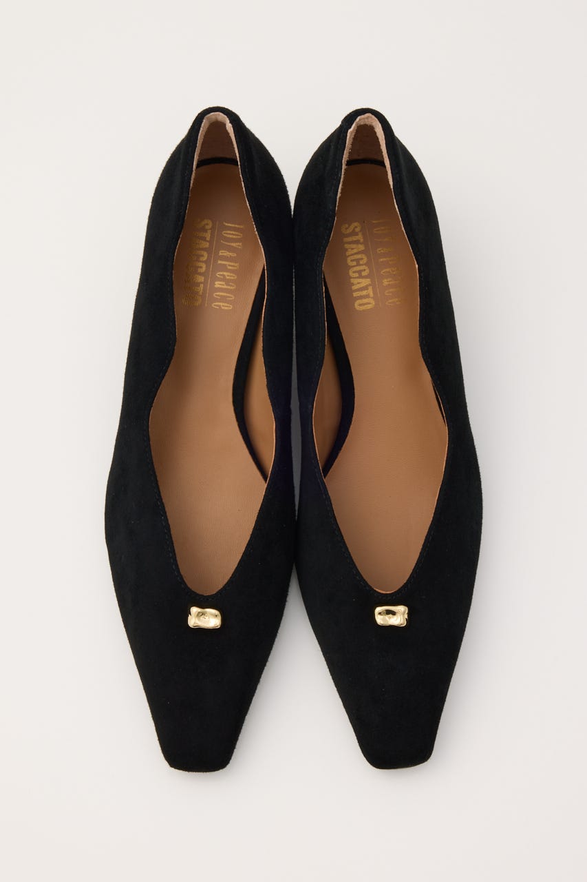 レトロムード漂う、感度高めなデザインがきいたシューティー。履き口部分は可憐な印象のスカラップデザインにゴールドのビーンズもポイント。バックスタイルにもぬかりないマーブル柄のブロックヒールが安定感とコーディネートのアクセントに。エレガンはもちろんのことカジュアルなスタイルでもおしゃれかつレディらしいスタイルに格上げしてくれます。