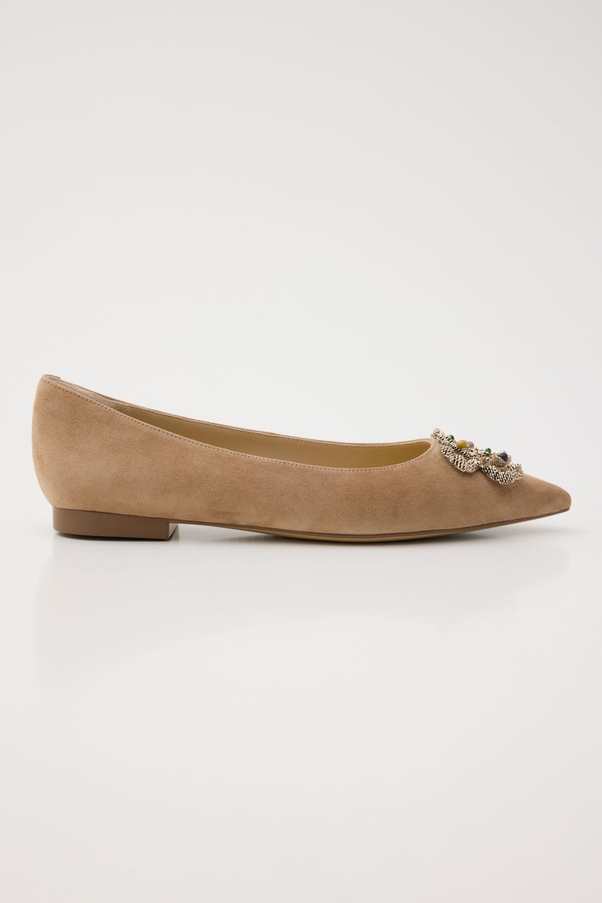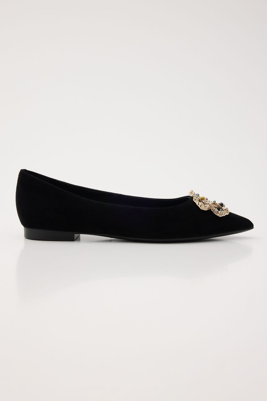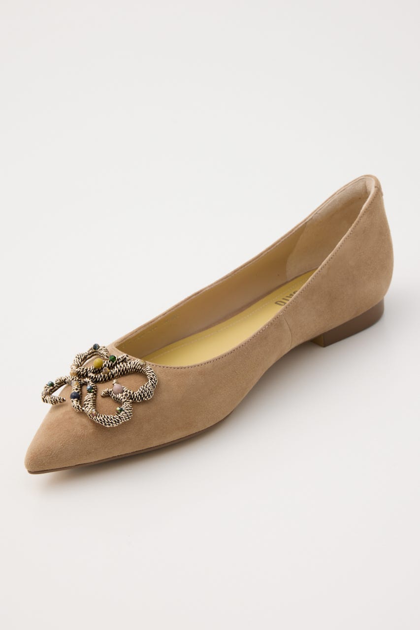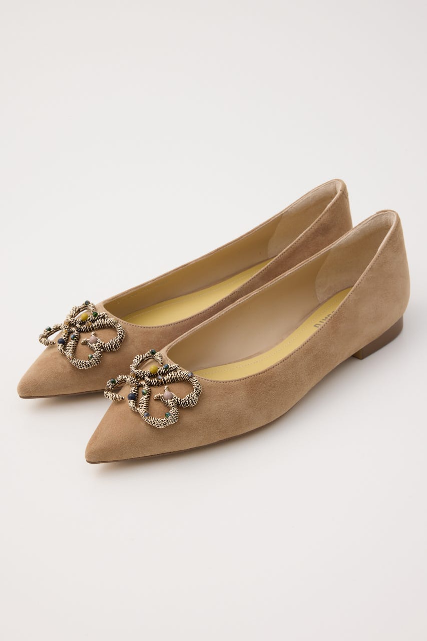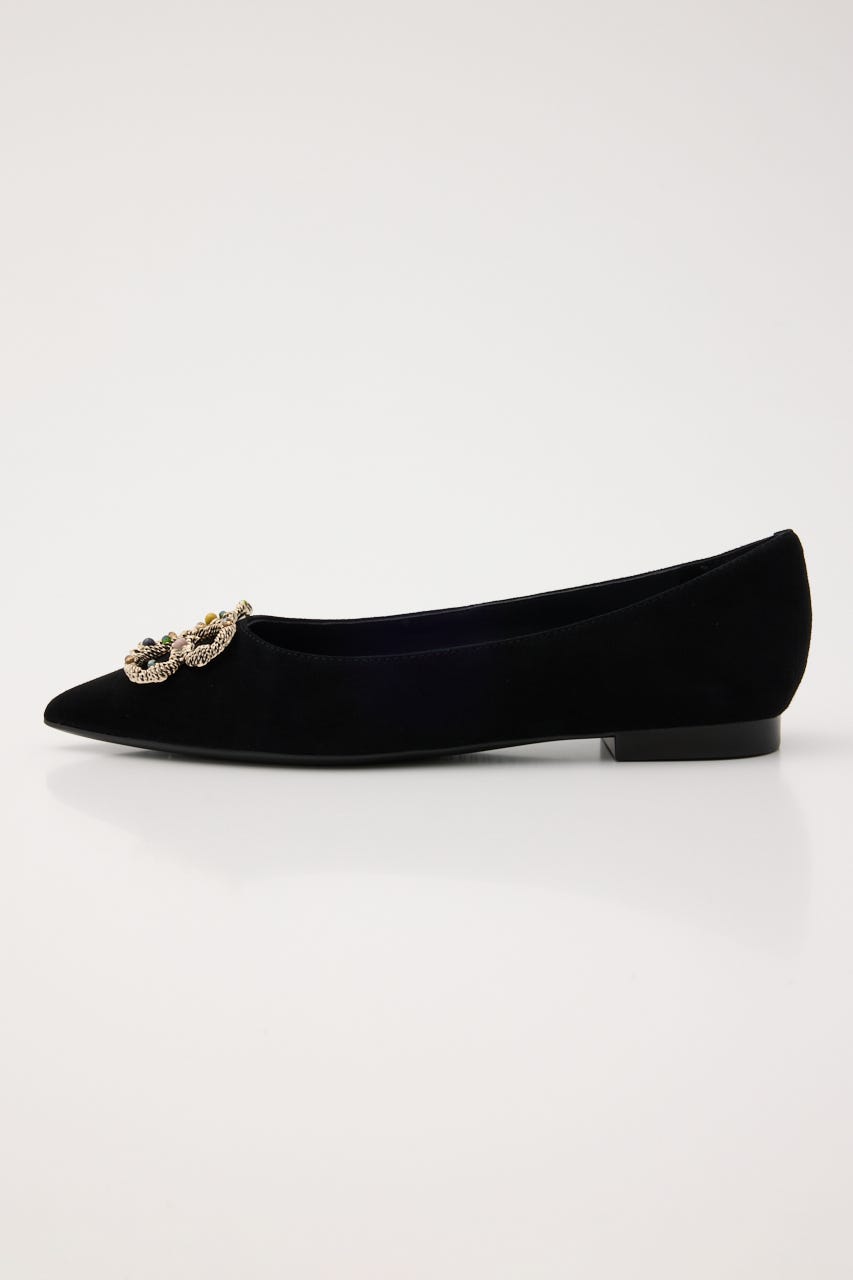 個性が光る、ブローチのようなアーティスティックなオリジナルバックルにカラフルなビーズを散りばめたカッターパンプス。綺麗目な装いにもカジュアルなスタイルにも合わせやすい、スタイリングの幅が広がる1足です。