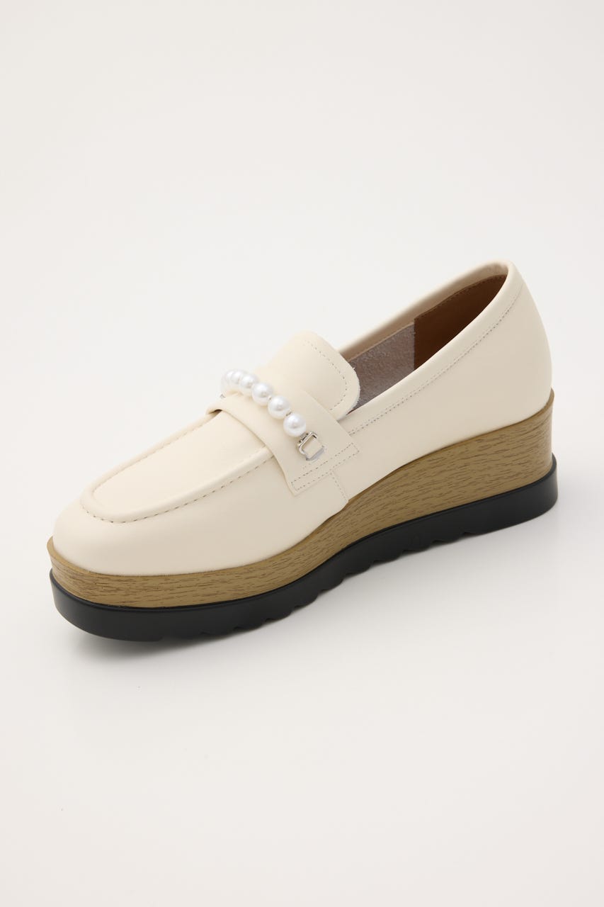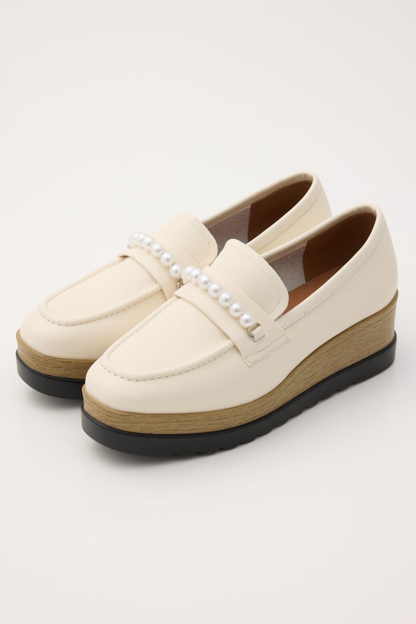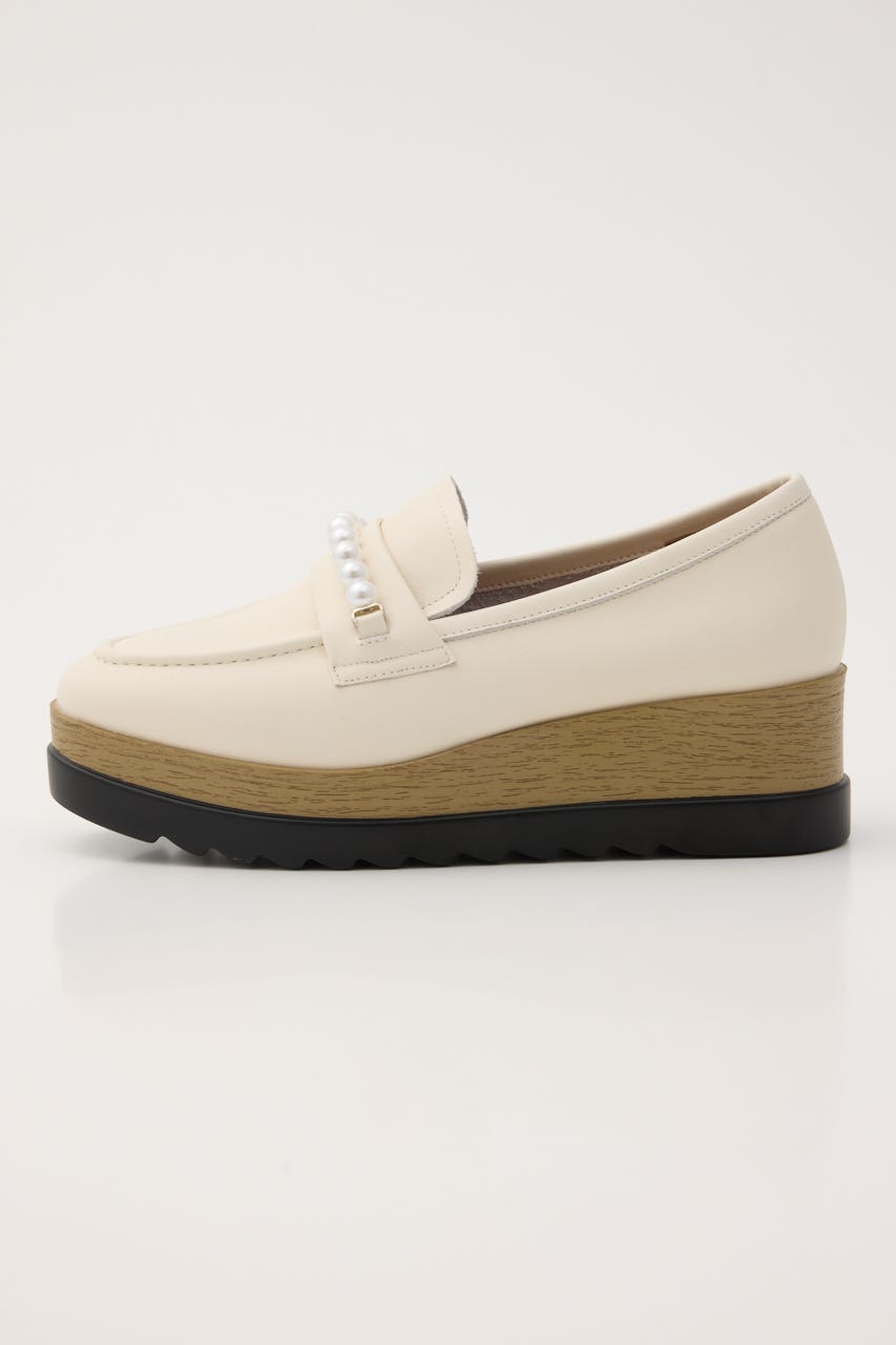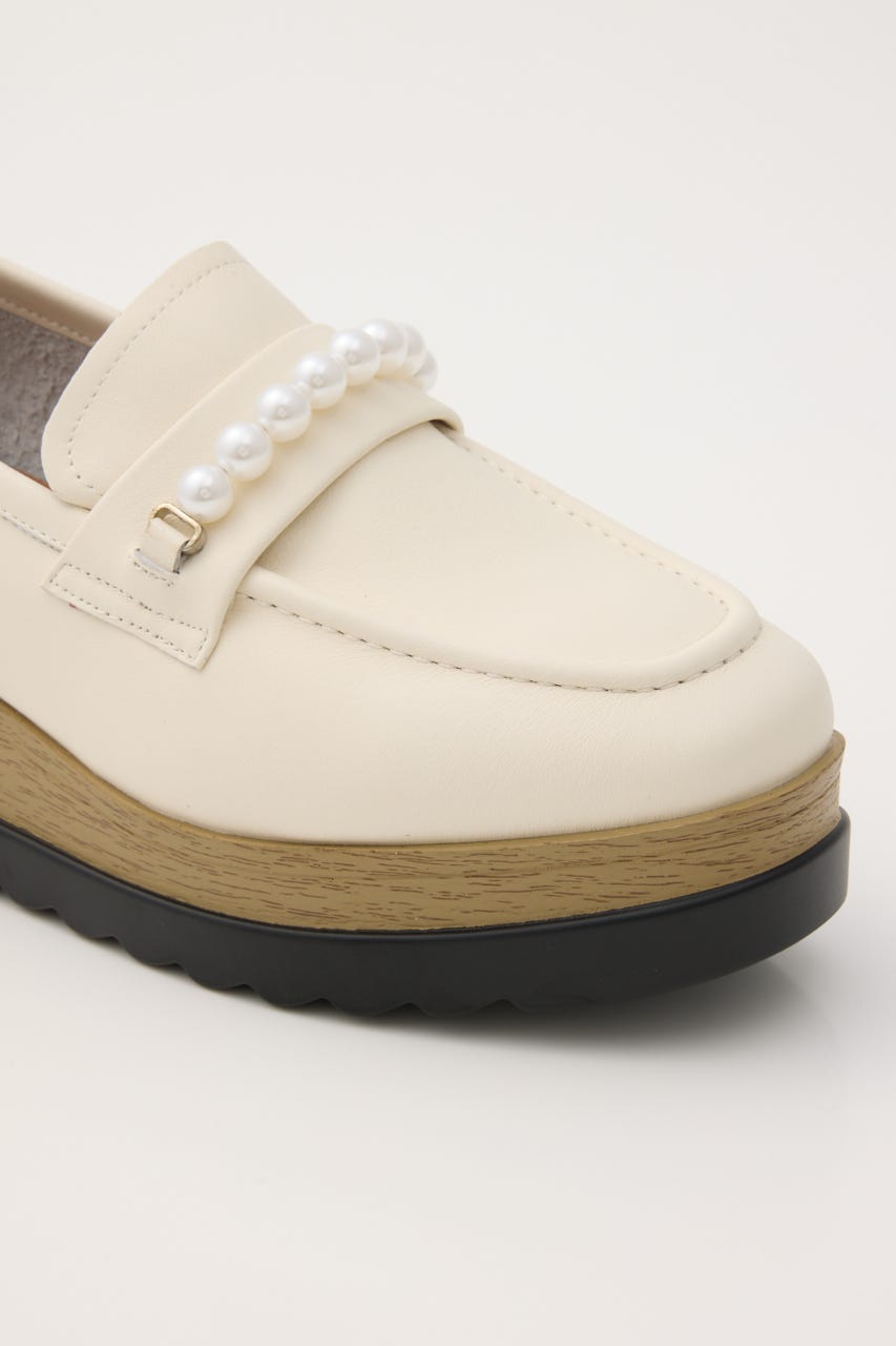 シーズンレスで大活躍してくれる、大人気の厚底シューズにお声の多かった待望の黒ソールが新登場。ウッド調ウェッジ×ブラックのシャークソールがモードで落ち着いた印象に。さらに新デザインのミニマルなパールベルトがカジュアルに見えがちなプラットフォームシューズでも足元をエレガント・上品に魅せてくれる。ローファーデザインなのでスリッポンタイプで履けるのもうれしいポイントです。