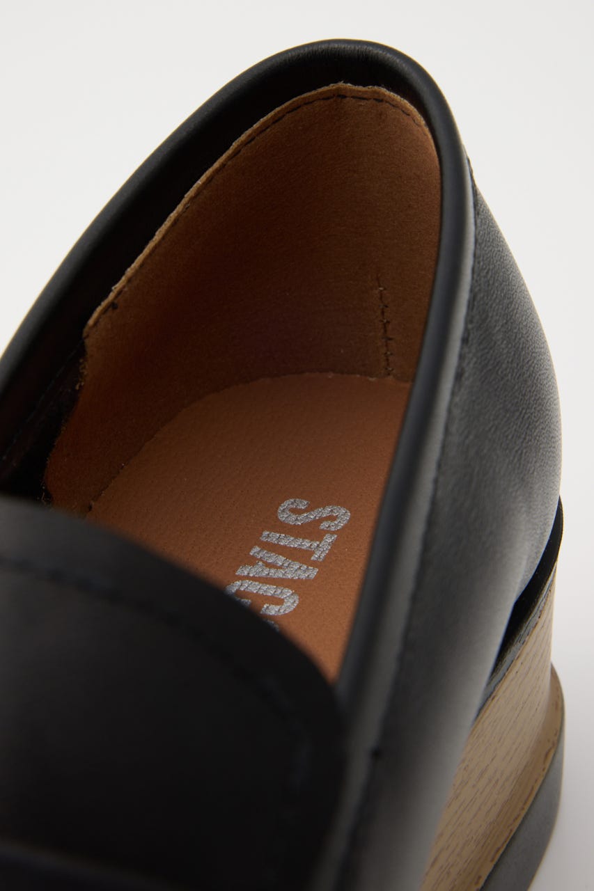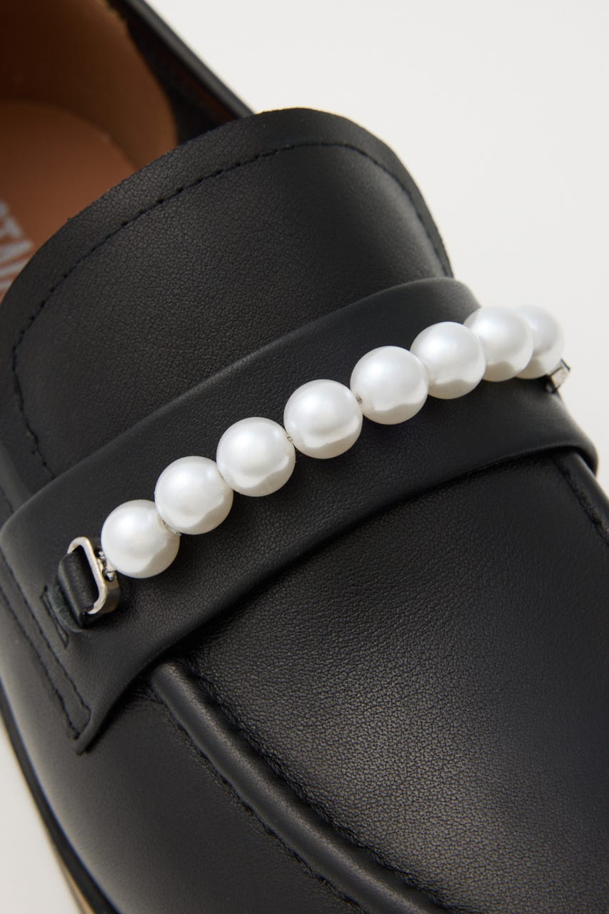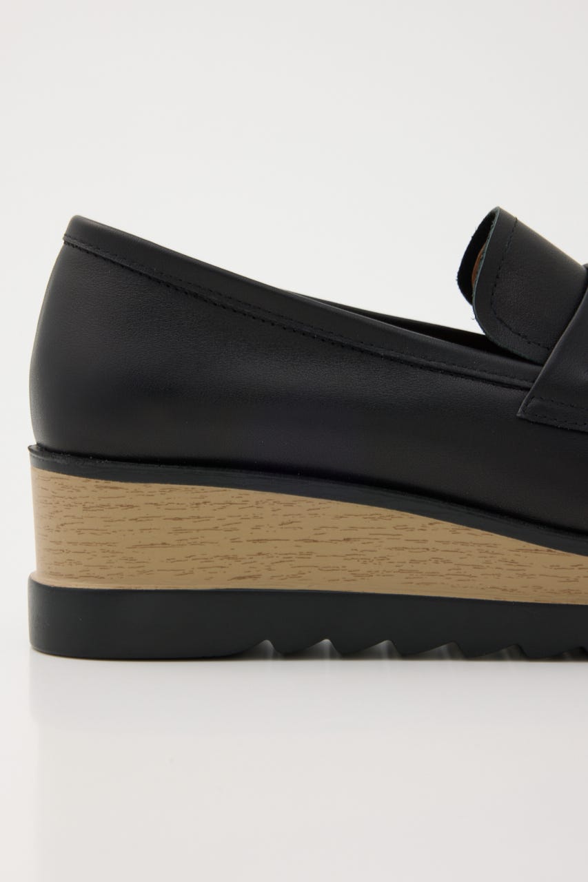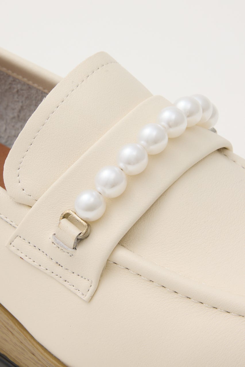 シーズンレスで大活躍してくれる、大人気の厚底シューズにお声の多かった待望の黒ソールが新登場。ウッド調ウェッジ×ブラックのシャークソールがモードで落ち着いた印象に。さらに新デザインのミニマルなパールベルトがカジュアルに見えがちなプラットフォームシューズでも足元をエレガント・上品に魅せてくれる。ローファーデザインなのでスリッポンタイプで履けるのもうれしいポイントです。