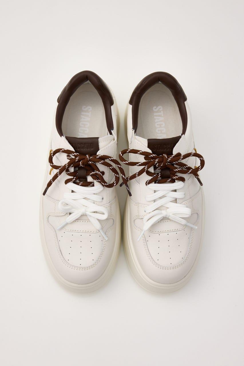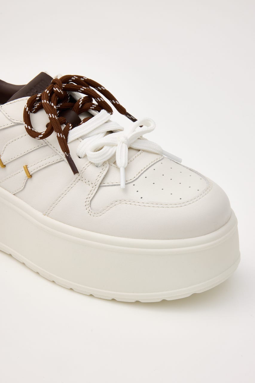 トレンドライクな足元盛れるプラットフォームスニーカー。サイド部分にはさり気なくゴールドピンも小技がきいている、デザイン違いのダブルのシューレースも個性が引き立つデザインです。厚底ながら軽量・スニーカー見えながらサイドゴム仕様なのでスリッポンタイプでも着用いただけます。(シューレースはは付け替えも可能です)