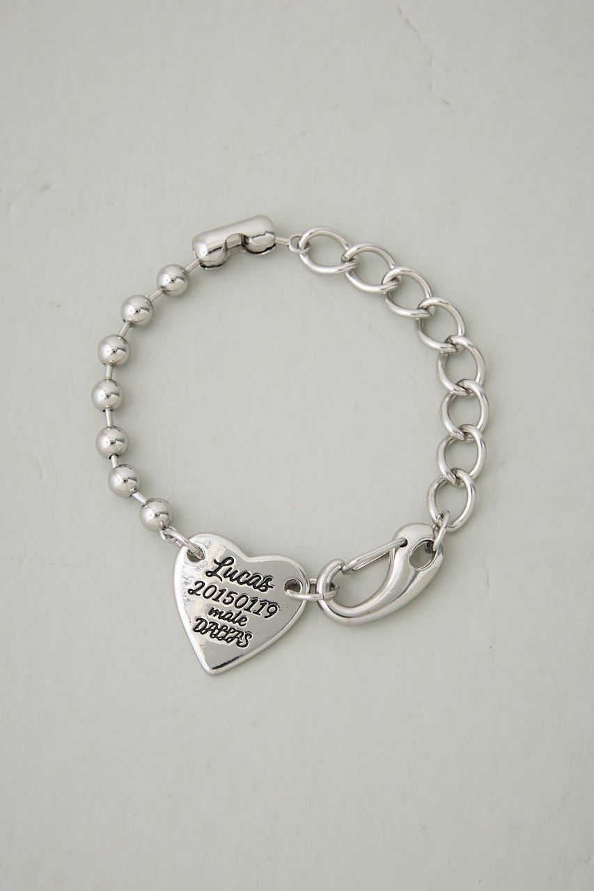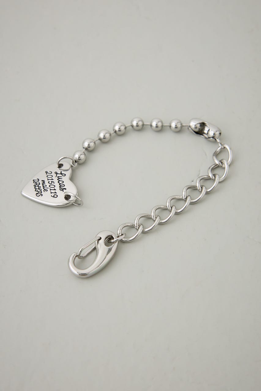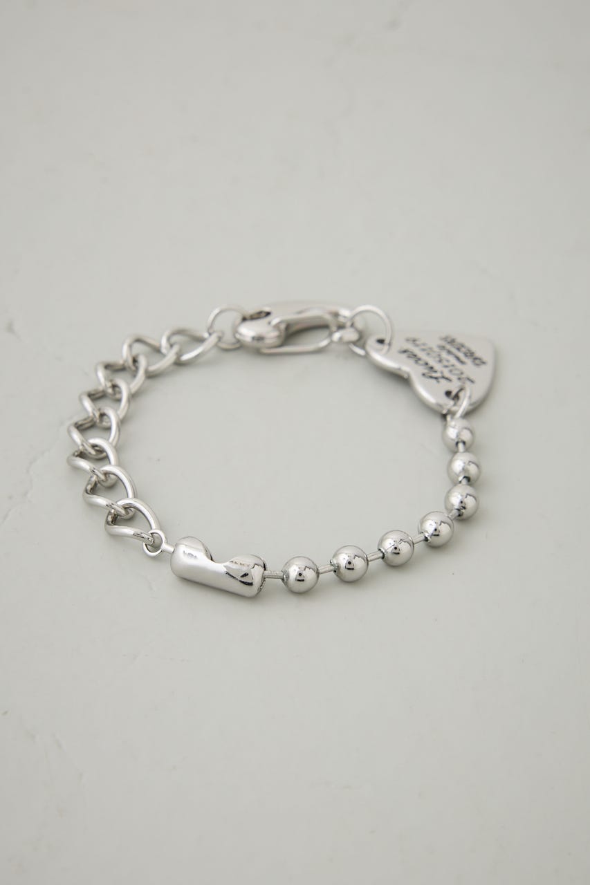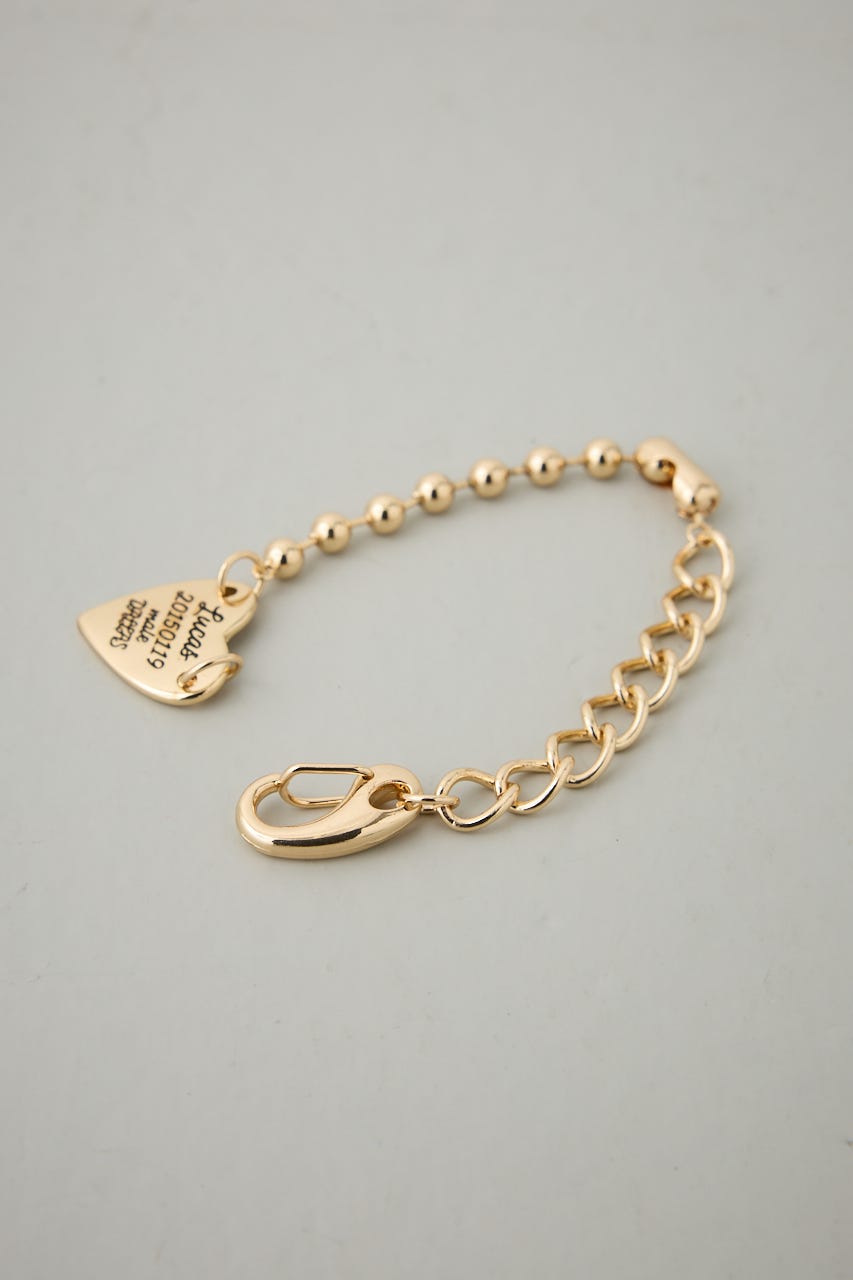 存在感のあるハートプレートが主役の、キャッチーなボールチェーンブレスレット。