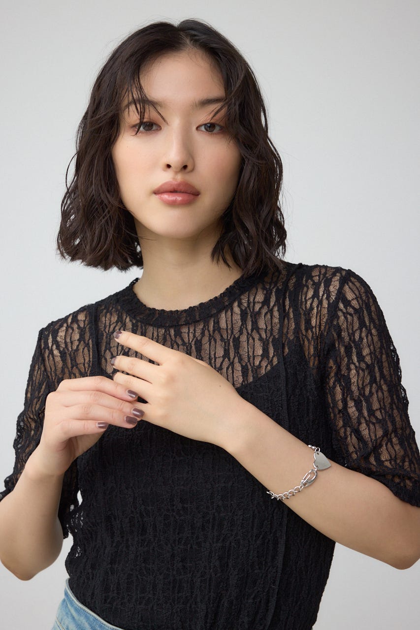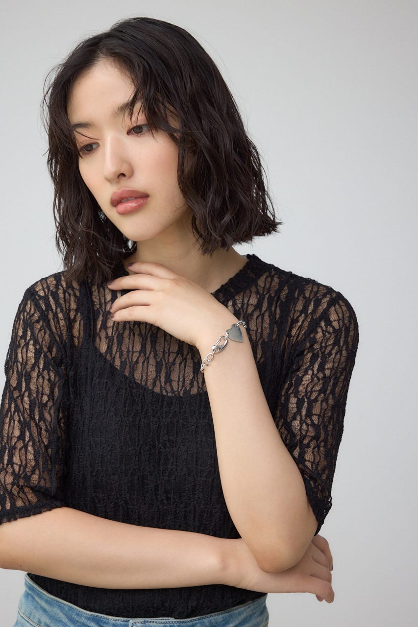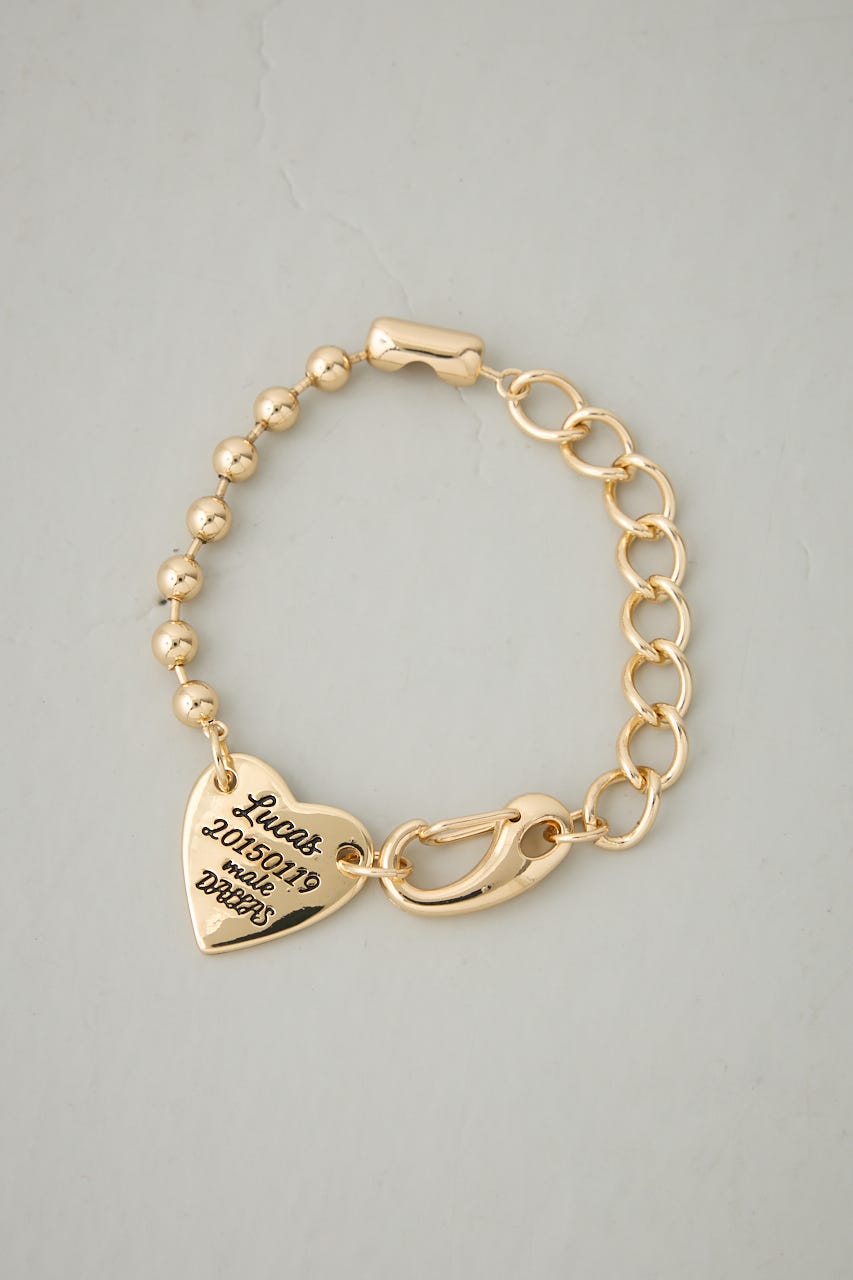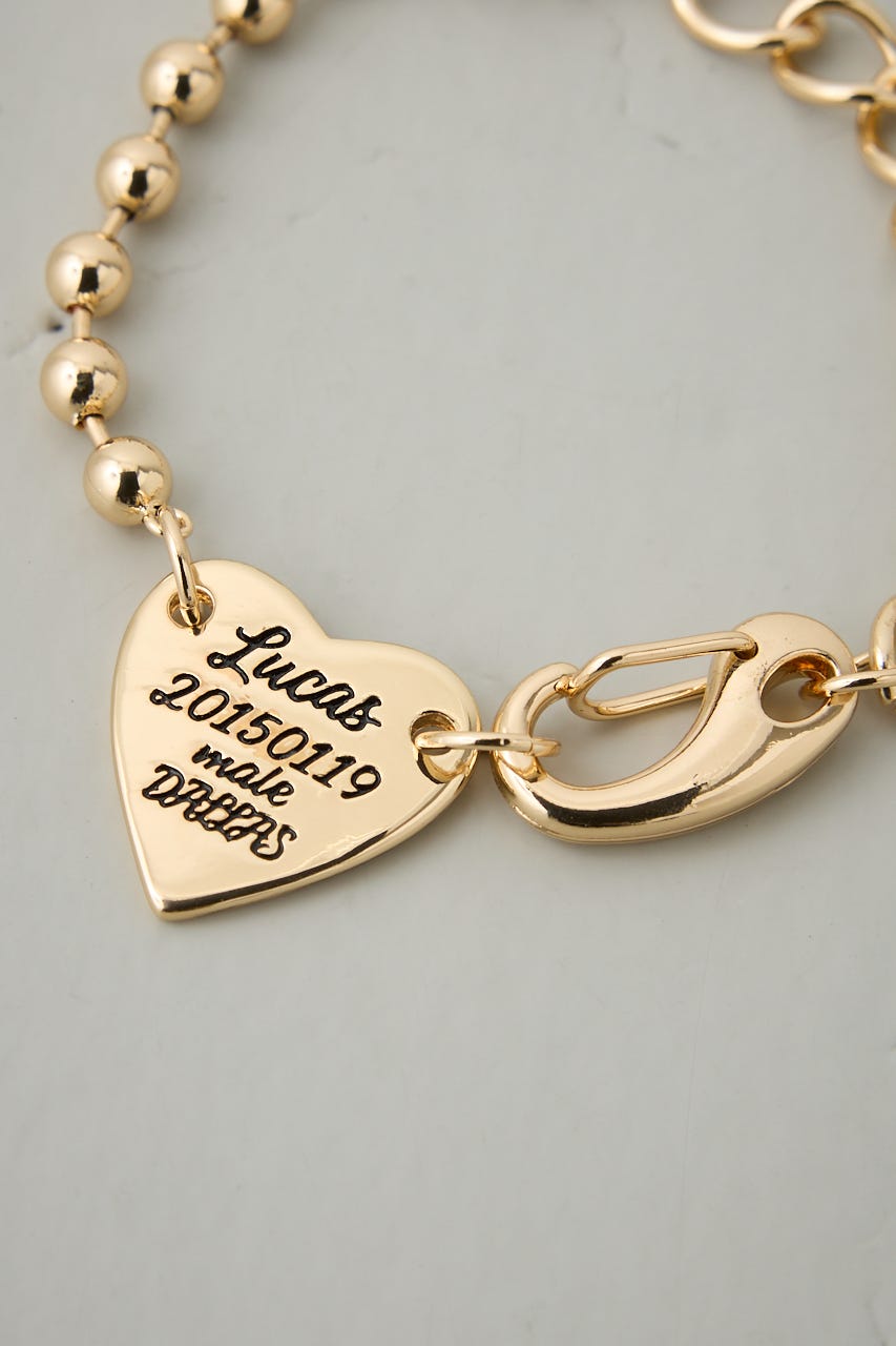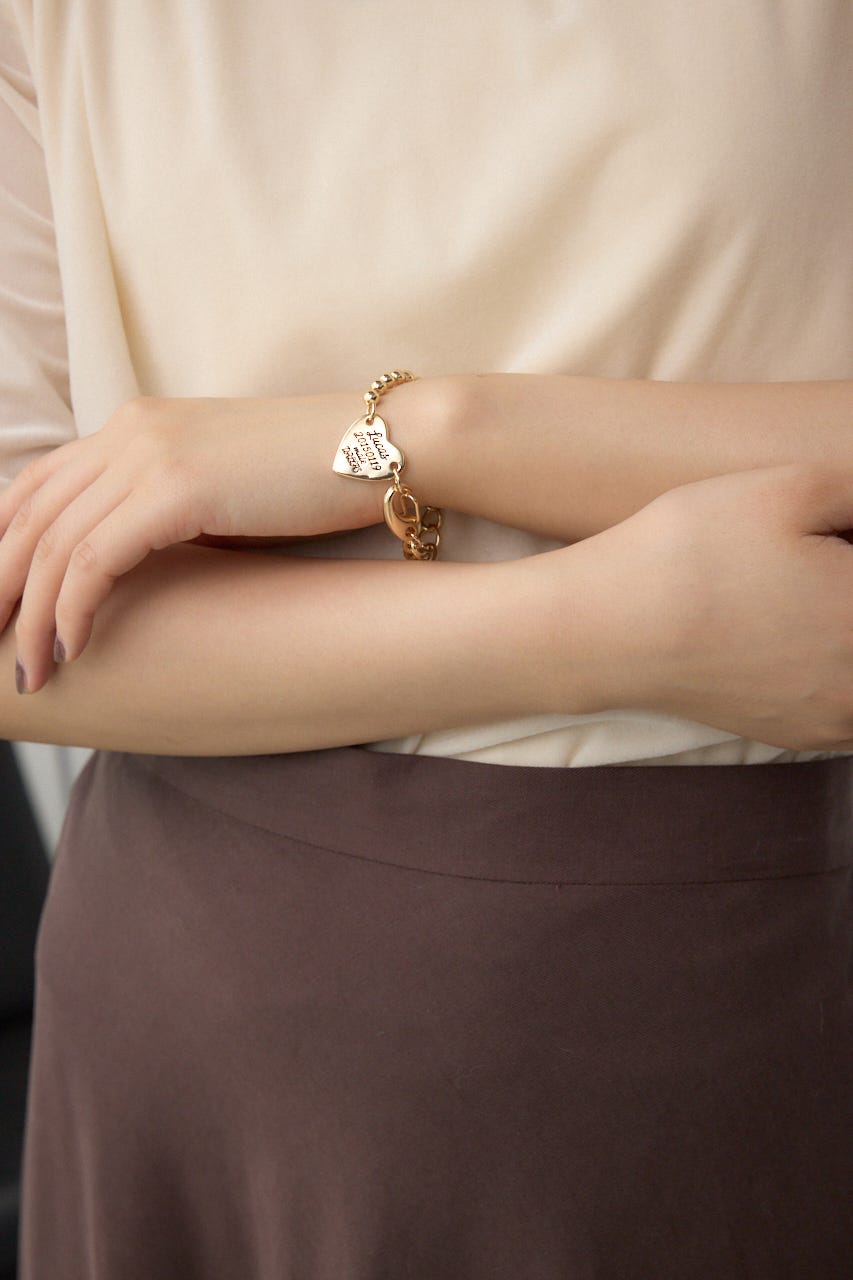 存在感のあるハートプレートが主役の、キャッチーなボールチェーンブレスレット。