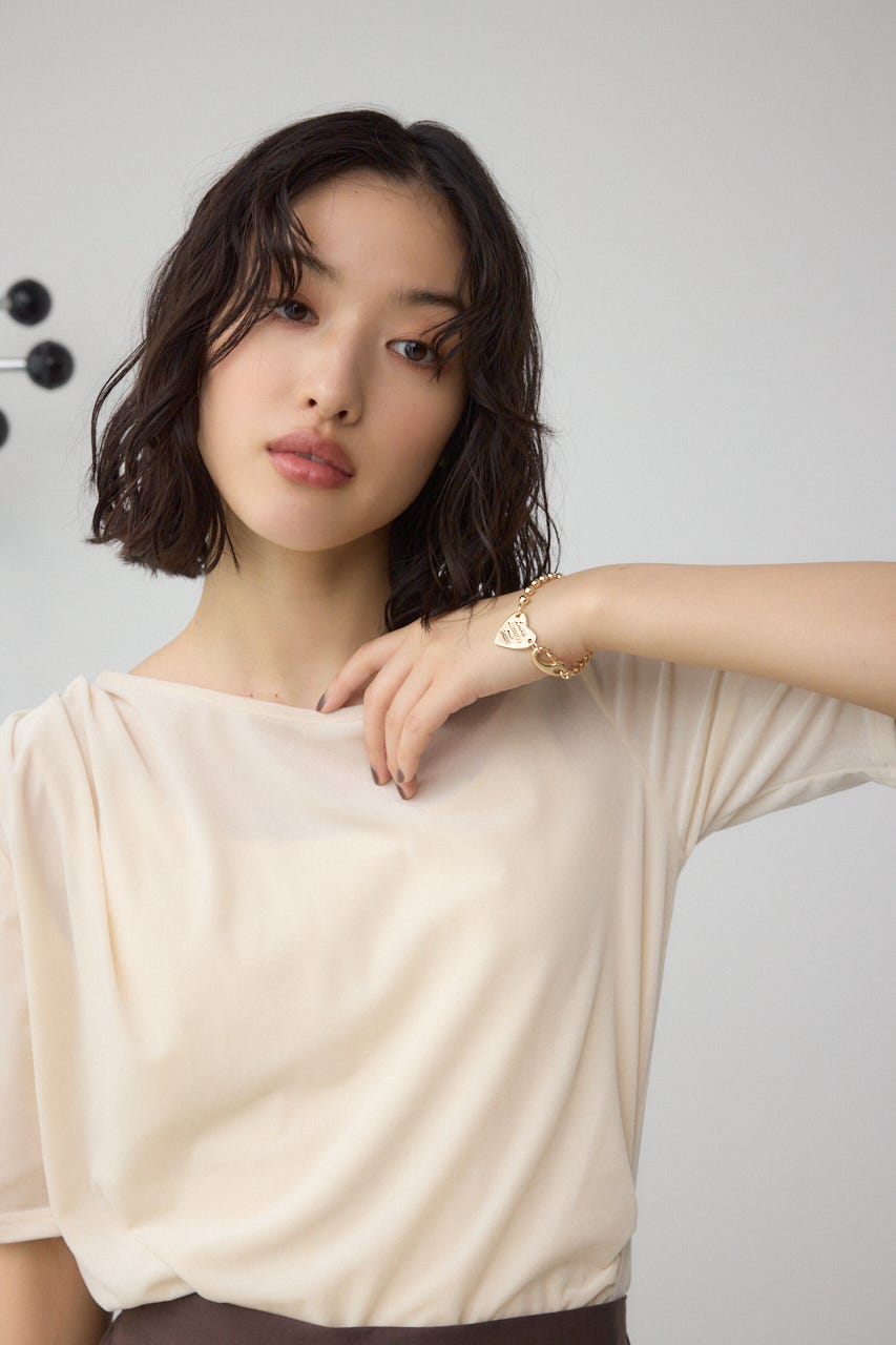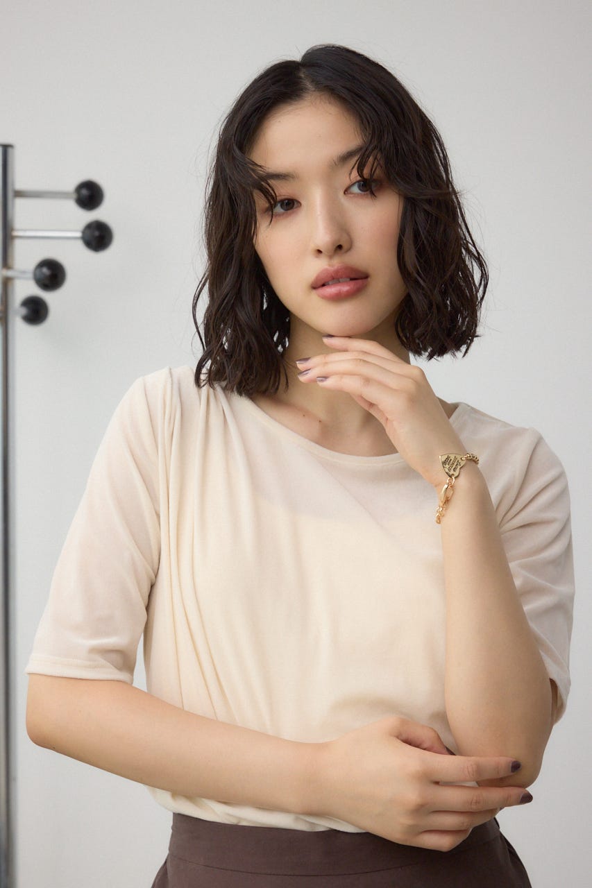 丸みのあるモチーフとチェーンのコントラストで、手元に遊び心のあるアクセントをプラスします。