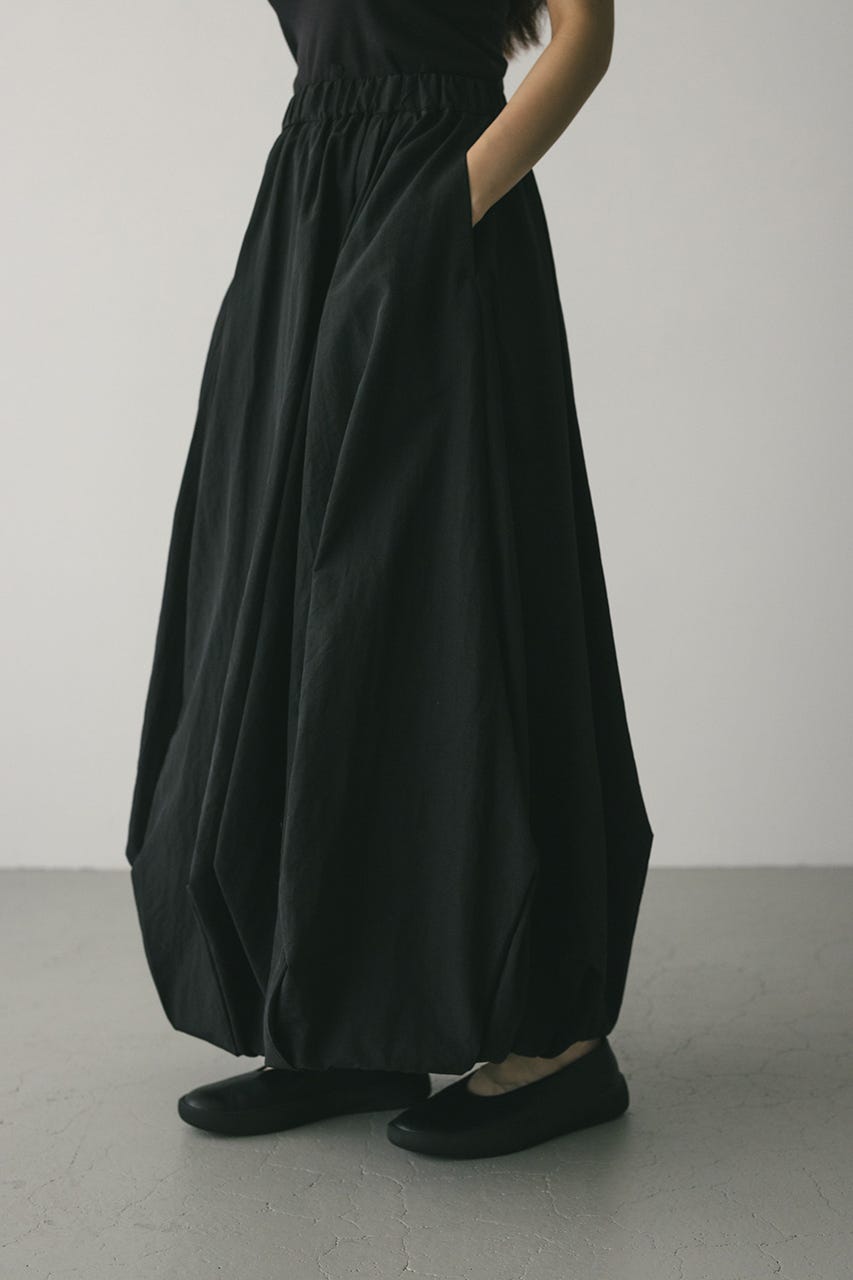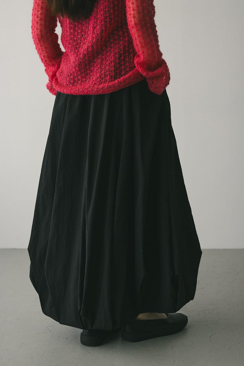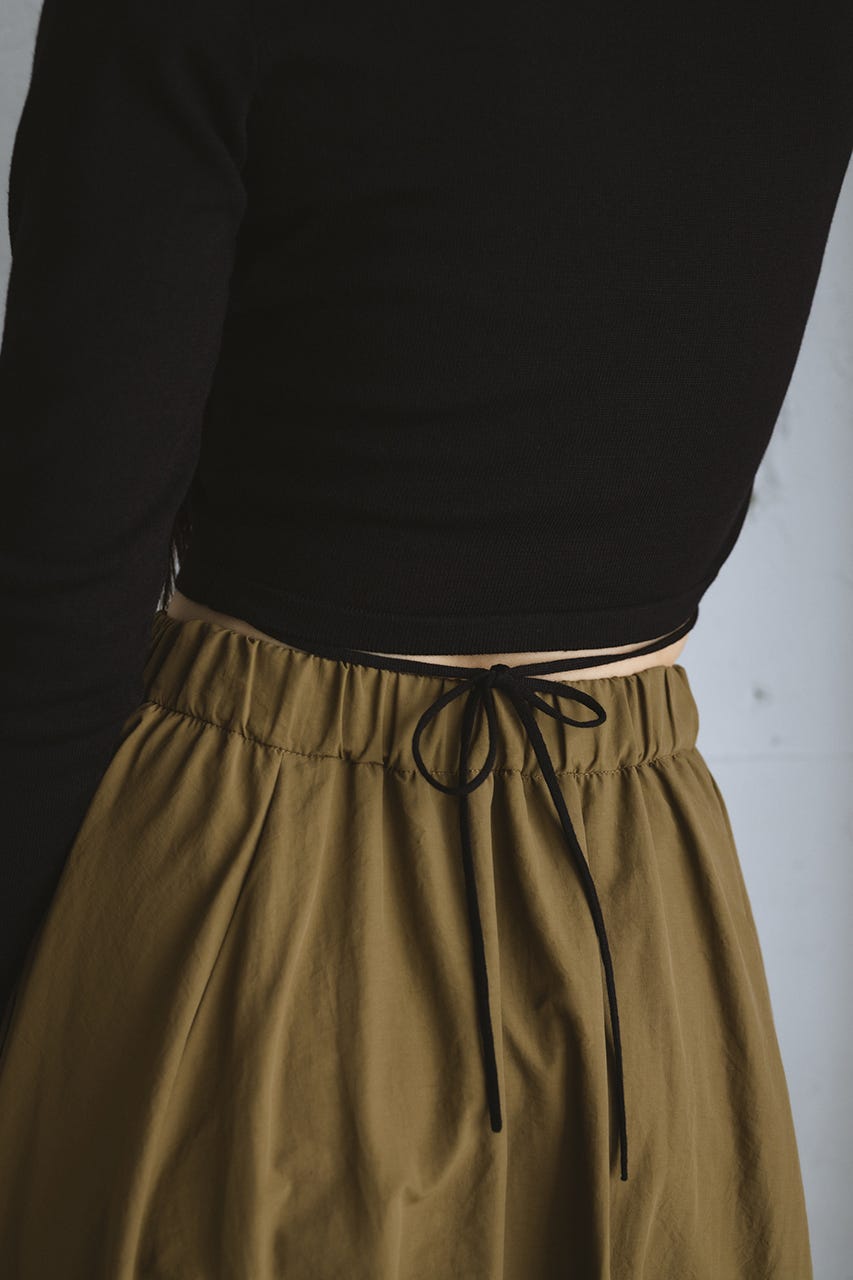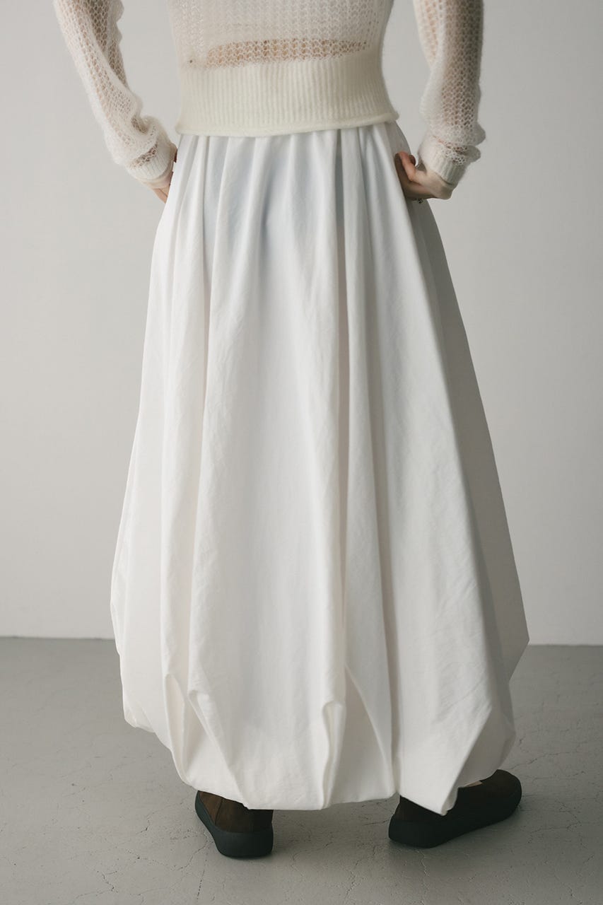 ドライでマットなナイロンタッチ素材でふんわり仕上げた華やかなバルーンギャザースカート。