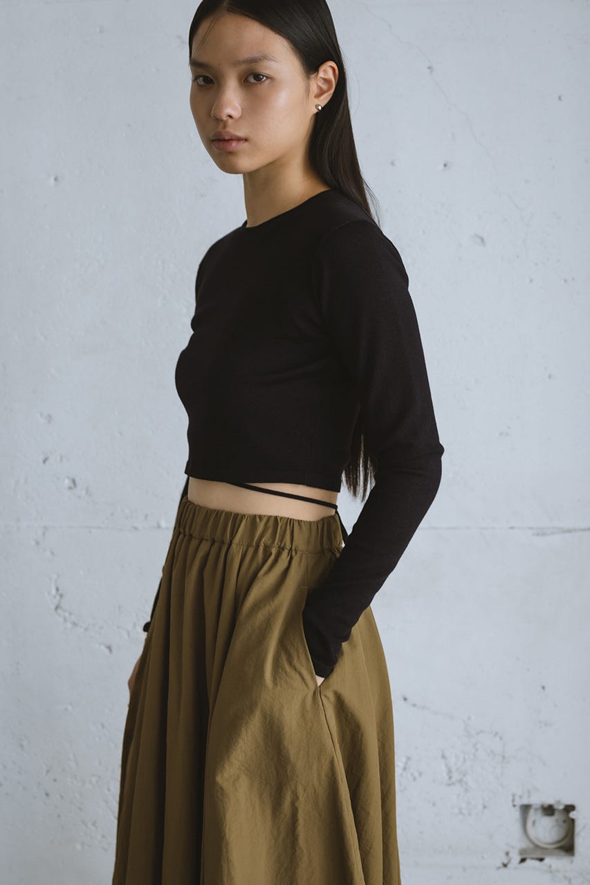 裾にタックを入れ、モードなボリュームにこだわった一枚です。