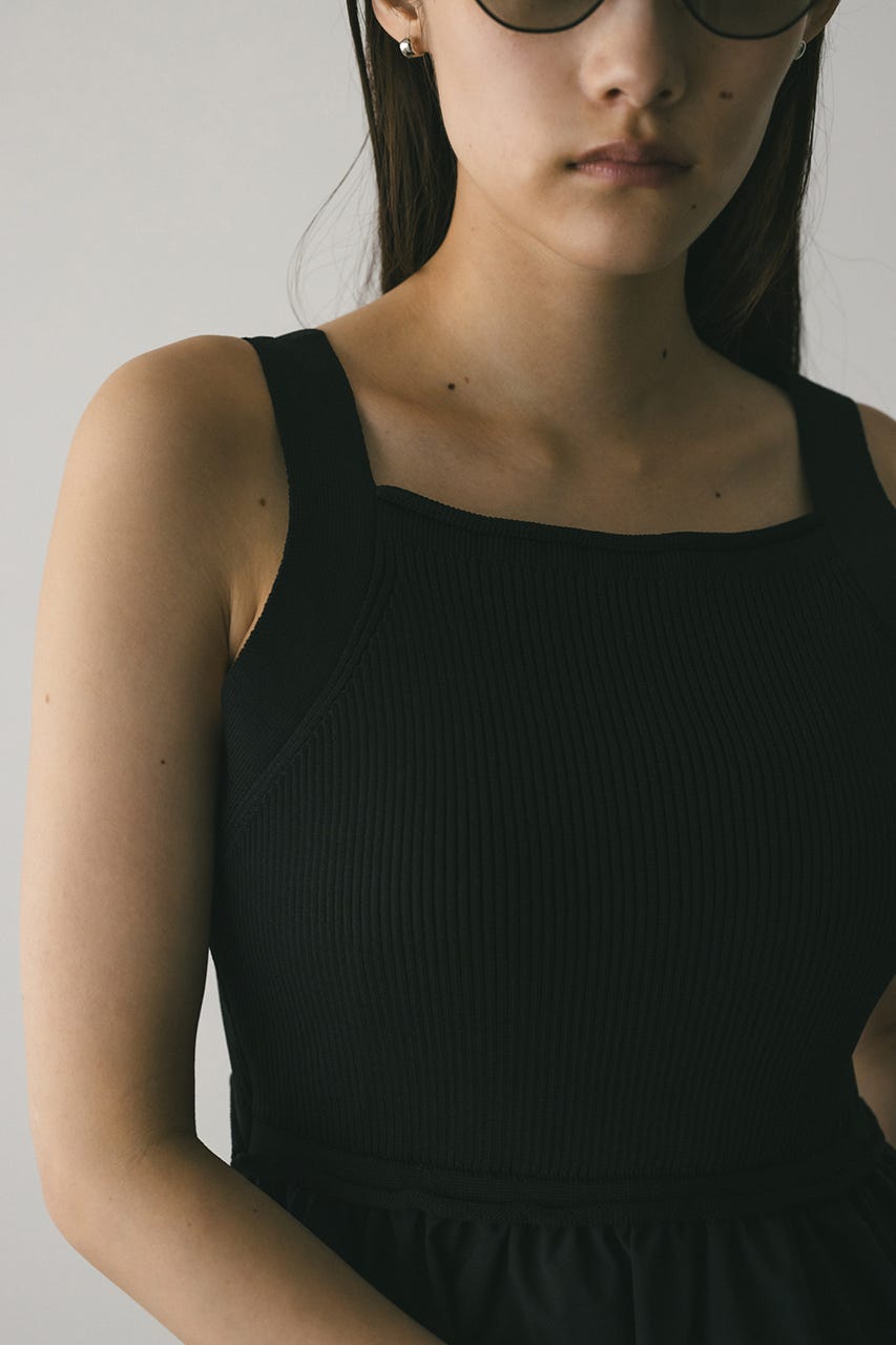 ノースリーブのスクエアネックデザインがデコルテを綺麗に見せてくれる一枚。
